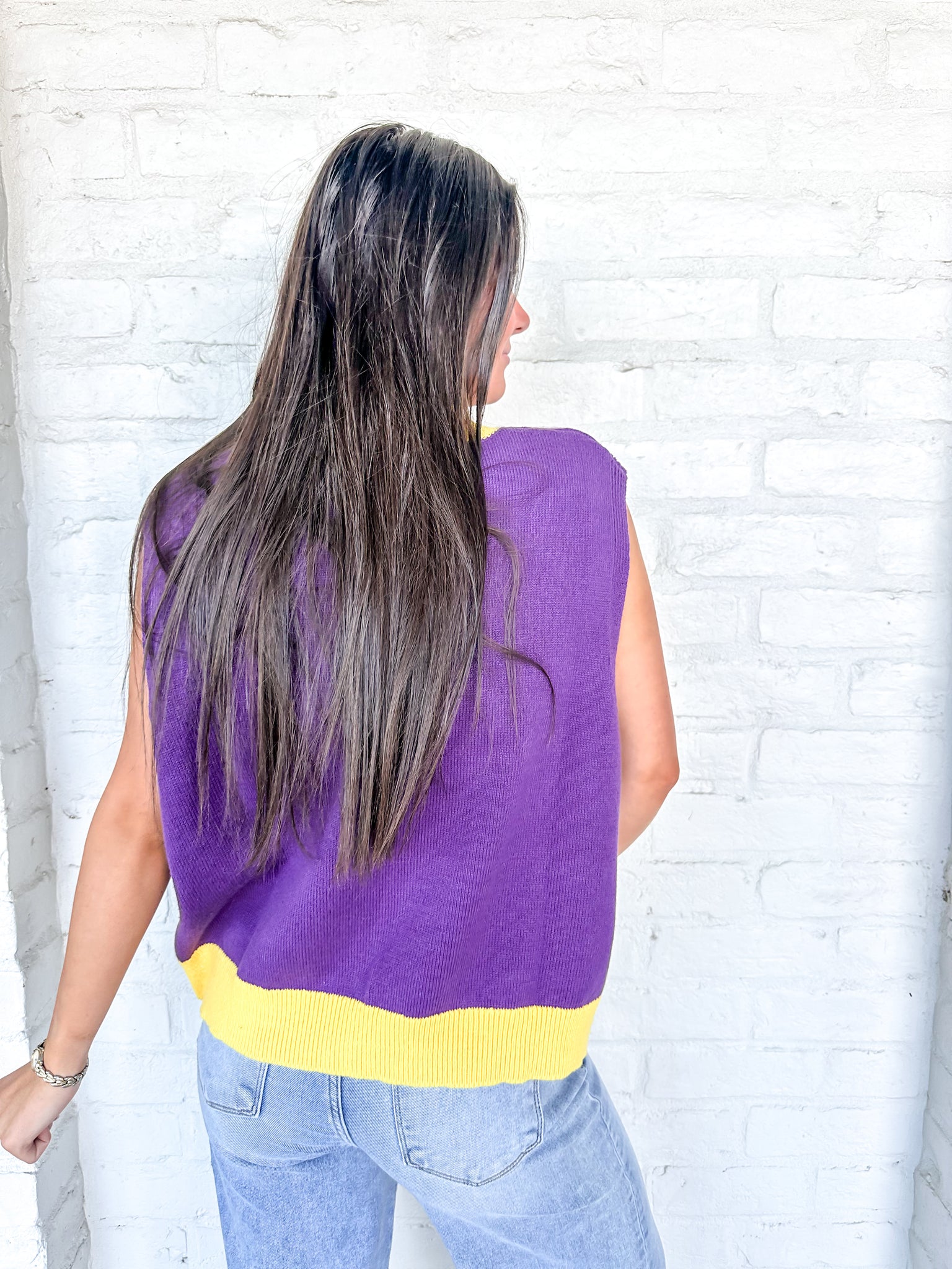 Show off your school spirit with our Queen Of Sparkles LSU Pennant Sweater Tank. This tank features the bold and confident Queen design, perfect for any true fan. With its soft and comfortable material, you'll be sure to stand out and shine. Geaux Tigers!