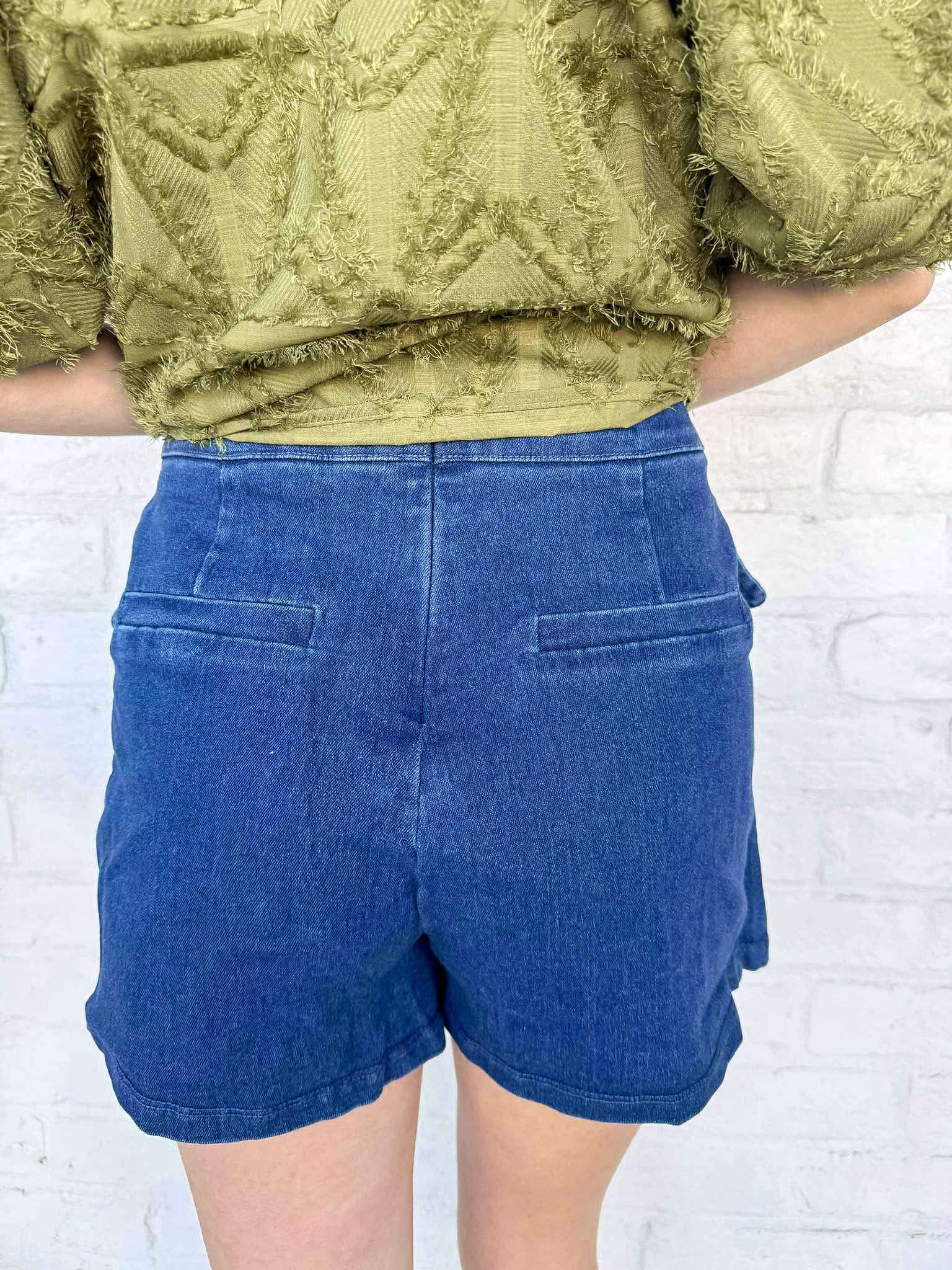 Elevate your style with the Fast Forward Dark Denim Skort, featuring chic gold buttons and a flattering high waist. This versatile piece combines comfort with fashion, offering pockets for practicality while ensuring you feel confident and effortlessly stylish wherever you go! Experience the perfect blend of casual and classy!
