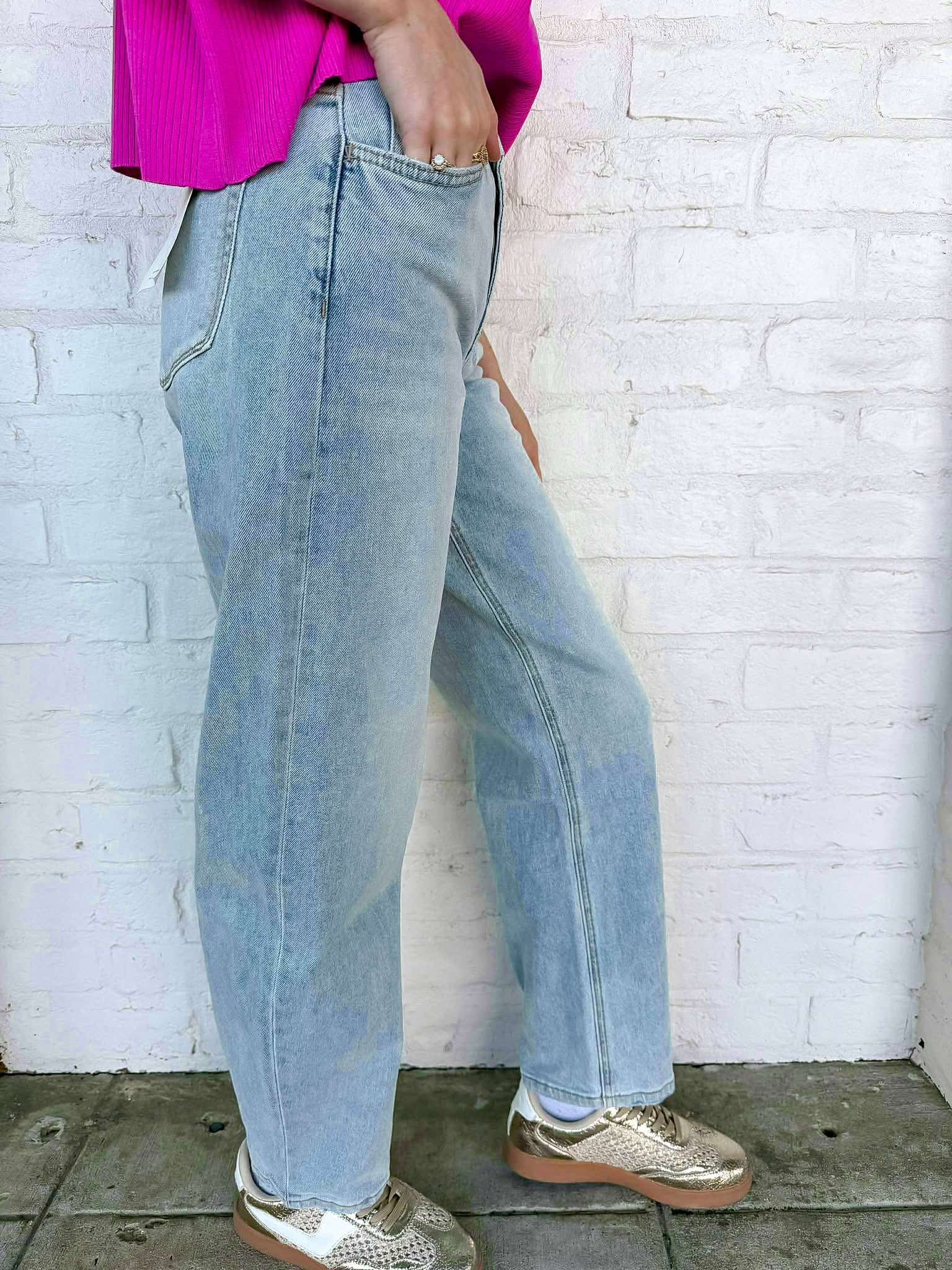 Step into style with the For My Liking High Rise Long Barrel Jean! Crafted from premium barrel denim, these jeans offer an effortless blend of comfort and chic. Experience the freedom of movement and embrace the flattering high-rise design that elevates your look. Make every outfit a statement!