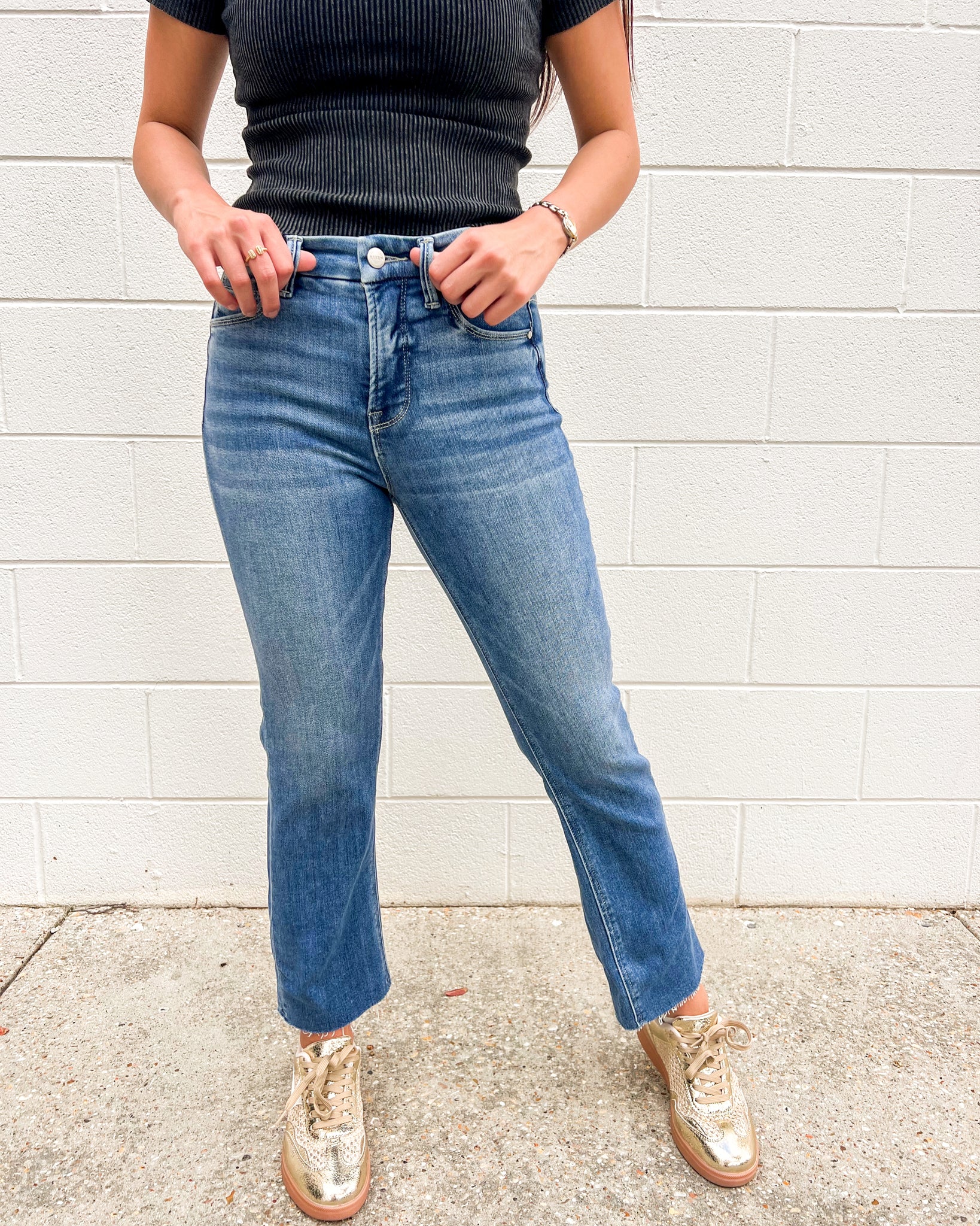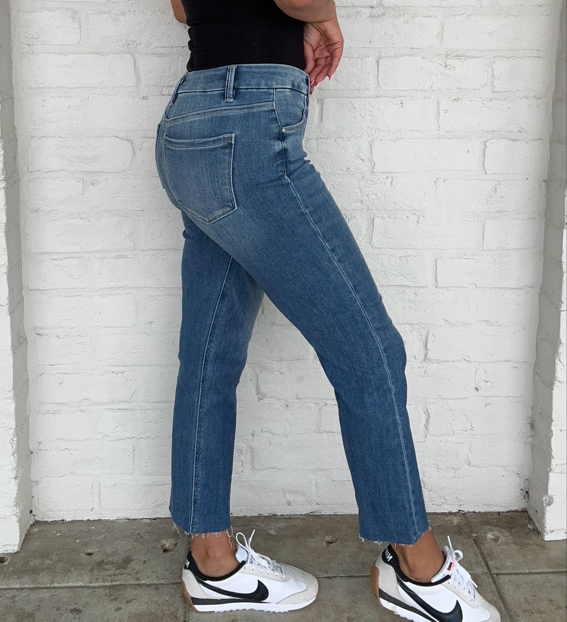 Experience comfort and style with our For The Good Medium High Rise Crop Straight Jean. Featuring tummy control and a high rise fit, these jeans provide a flattering silhouette while also keeping you feeling confident and supported. Say goodbye to discomfort and hello to a sleek and stylish look!