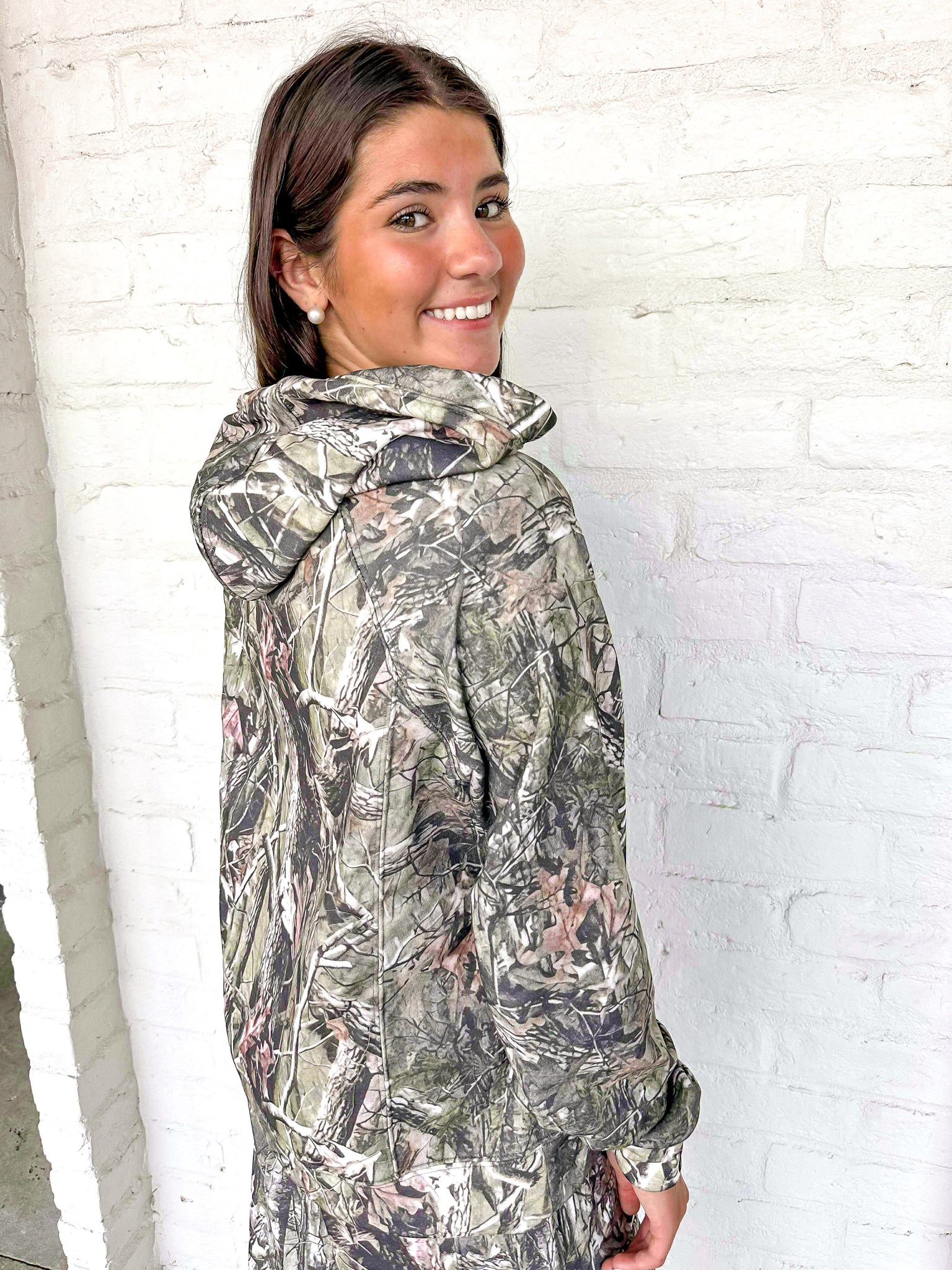 Unleash your inner rebel with our Hiding Behind The Camo Hoodie. Made from high quality camo fabric, this hoodie top is perfect for any outdoor adventure. Stay comfortable and stylish while blending in with your surroundings. Upgrade your wardrobe today with our must-have Camo Hoodie!