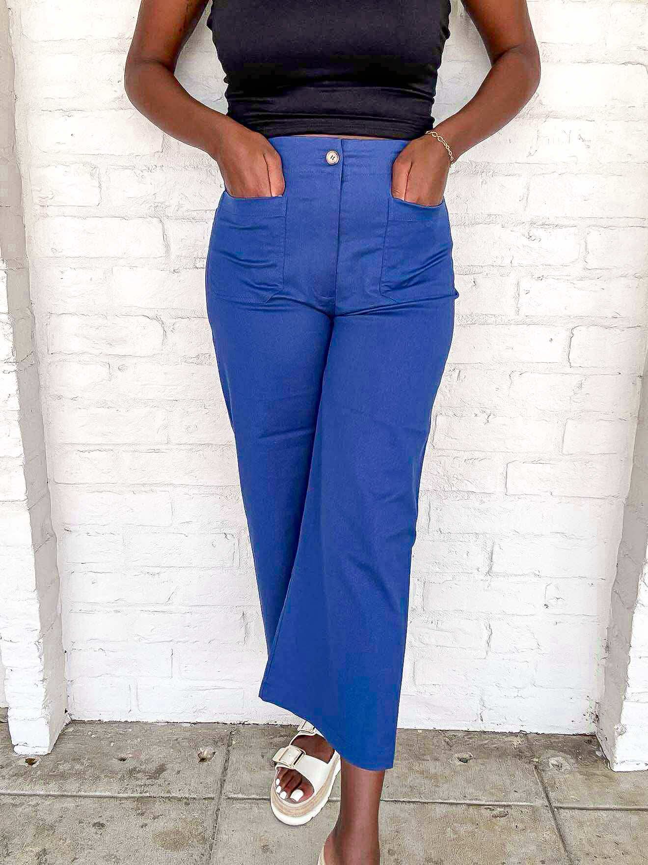 Introducing On The Way Royal Blue Pants, the ultimate combination of style and convenience. These front pocket pants offer easy access to your essentials, while keeping you on-trend. Say goodbye to bulky bags and hello to perfect pockets!