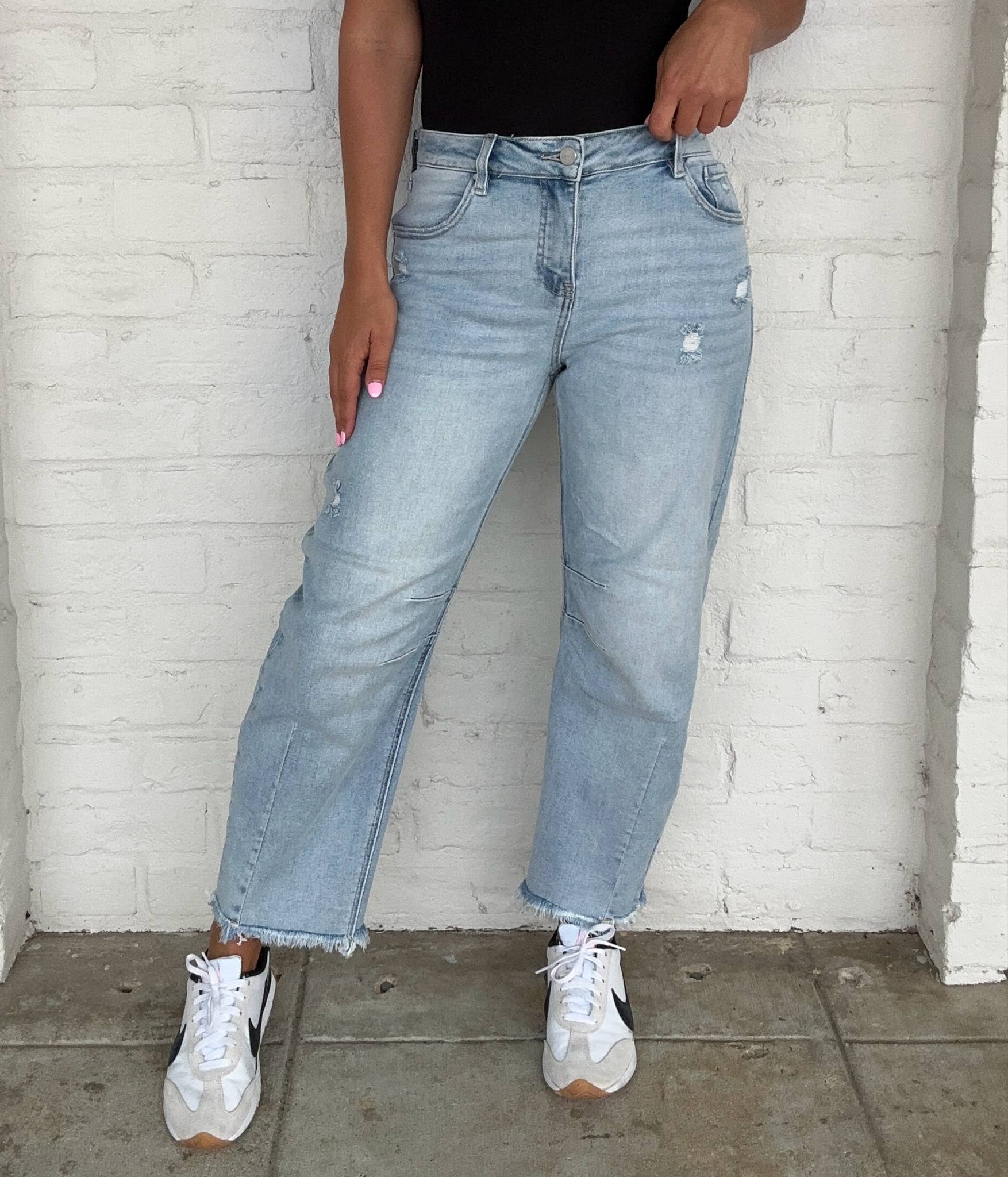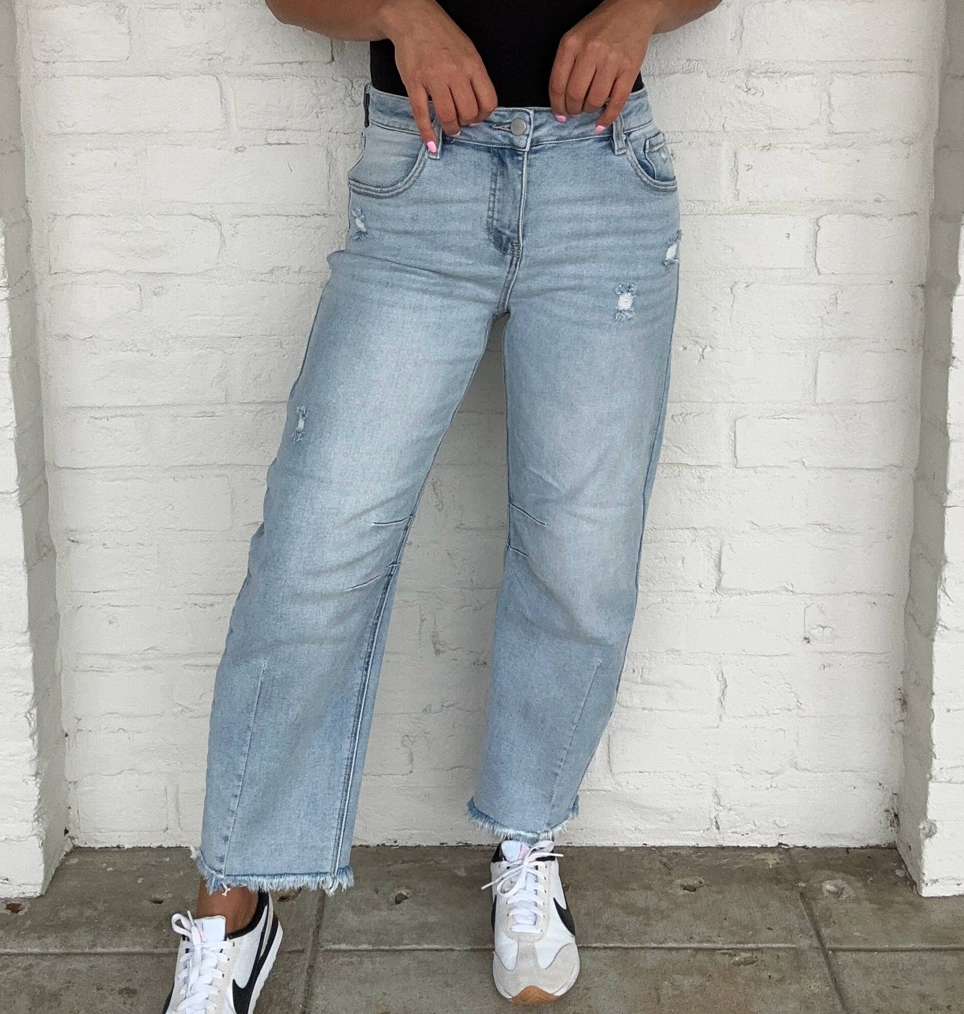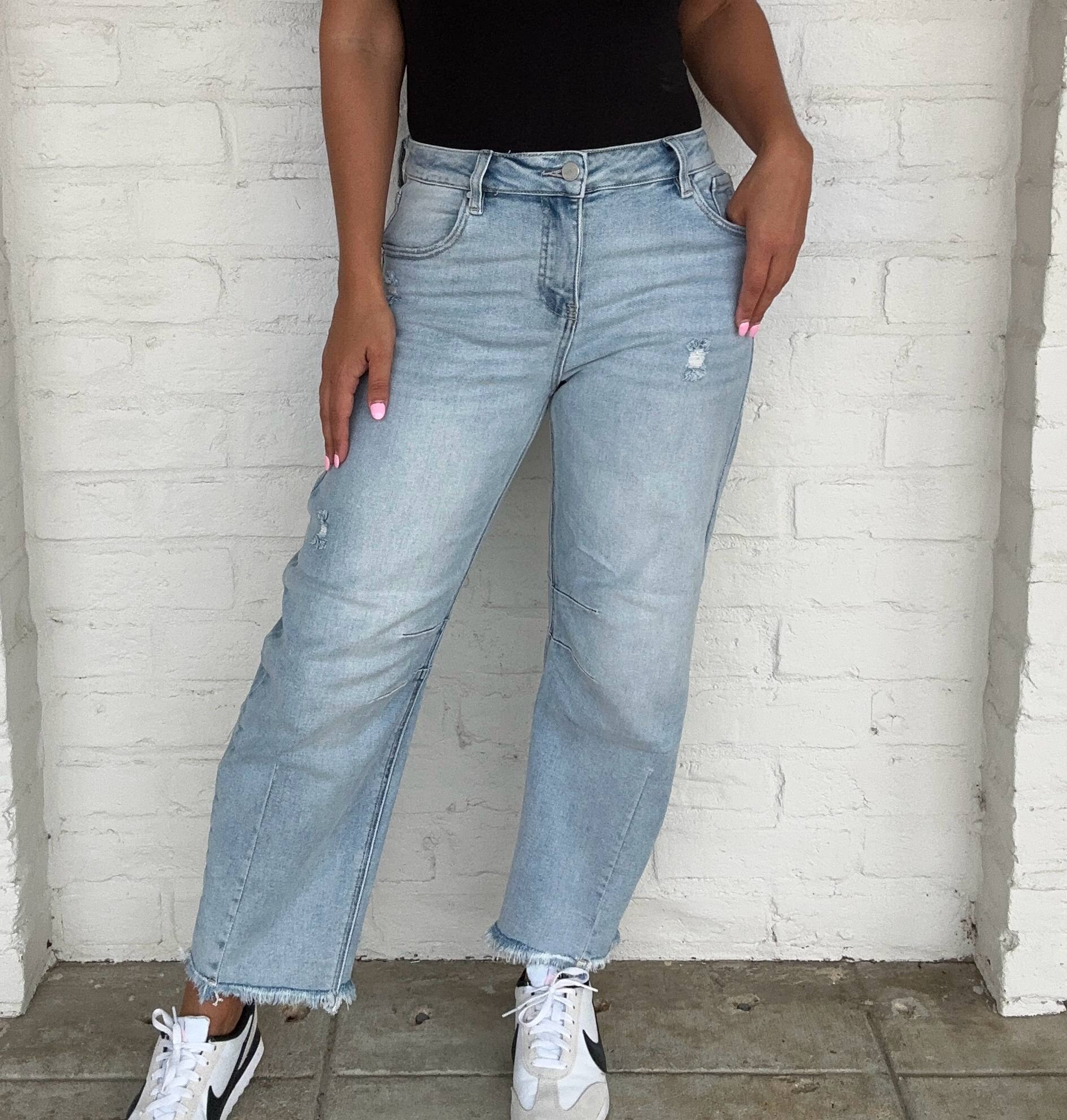 Transform your style with the Quest For Success Light Mid Rise Crop Barrel Jean! These fitted crop jeans not only provide a flattering fit, but also add a touch of chic sophistication to your wardrobe. Elevate your everyday look and feel confident in these must-have jeans.