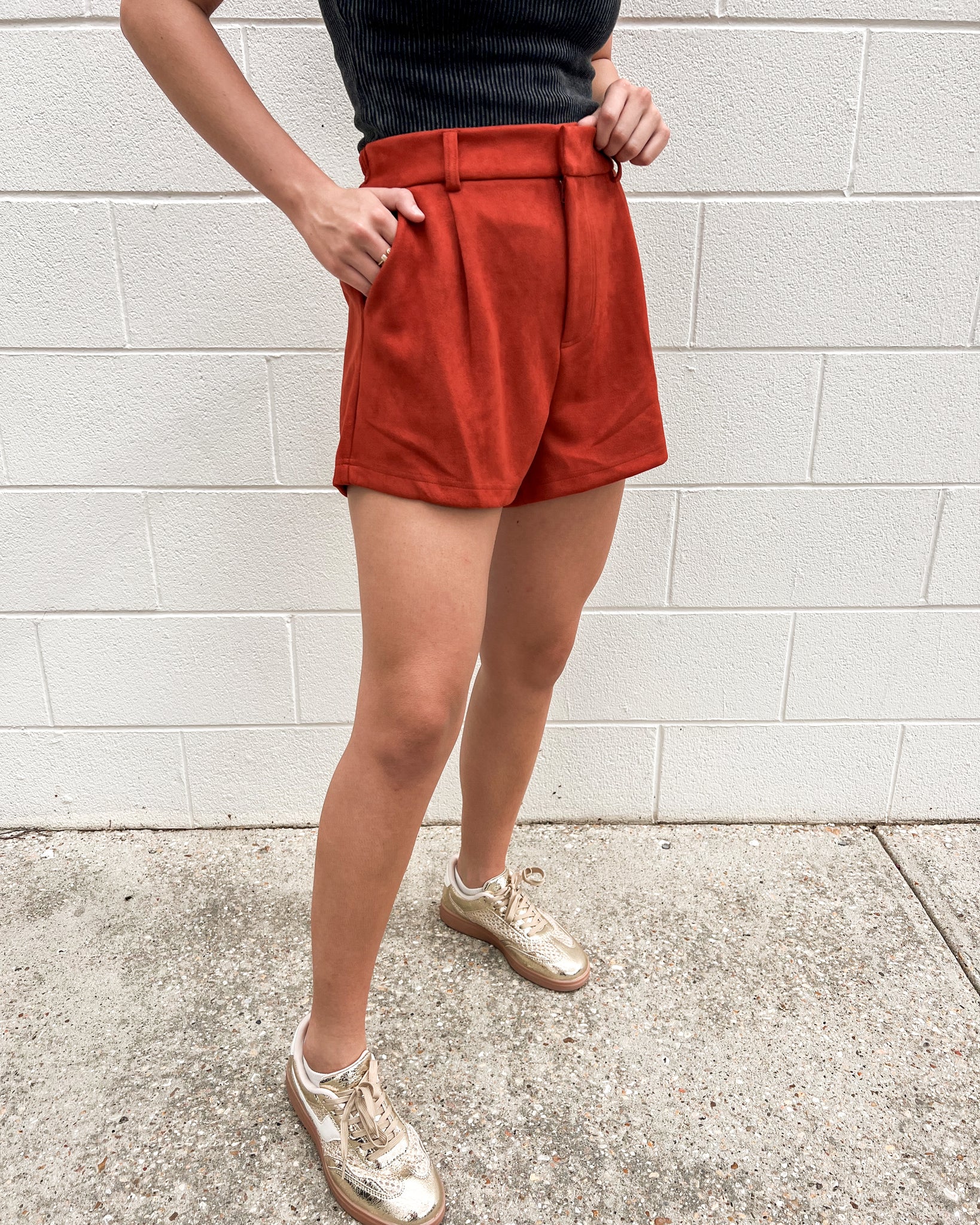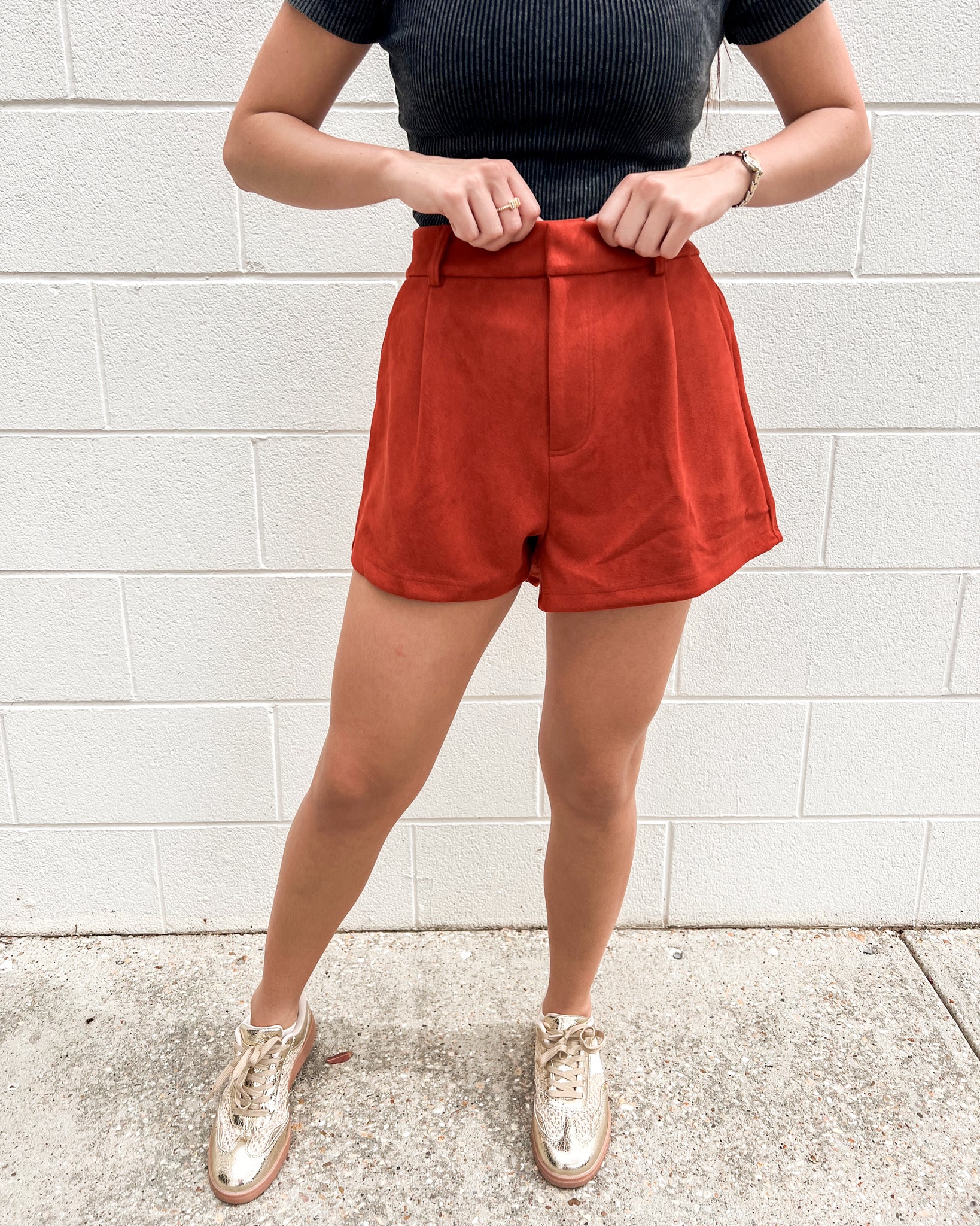 Upgrade your fall wardrobe with these stylish high waist suede shorts! Perfect for any occasion, these shorts offer a flattering fit and versatile style. Stay on-trend and comfortable this season with these must-have shorts.