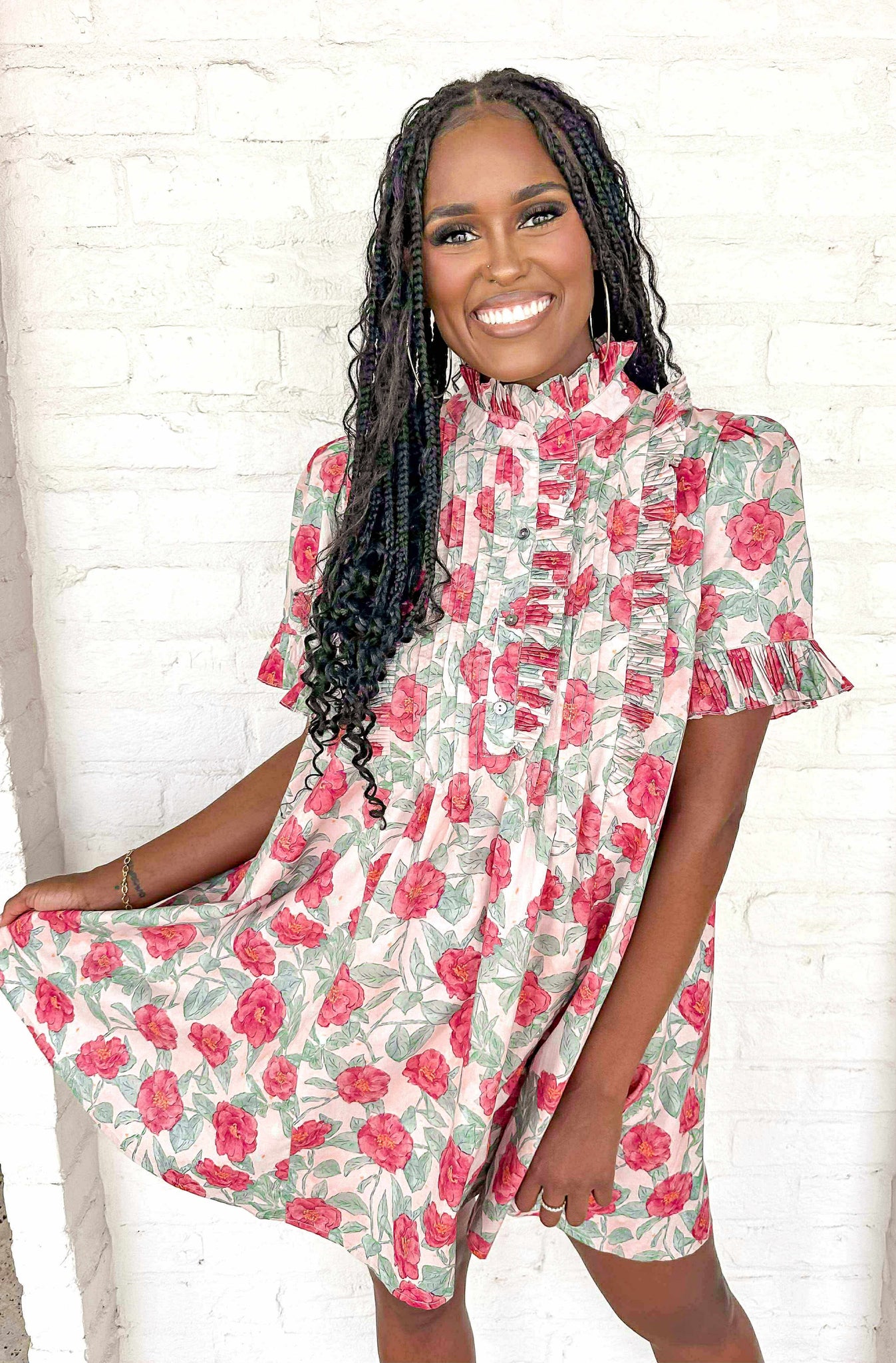 Experience timeless beauty in our Every Where Vintage Rose Dress. This stunning dress features a delicate rose floral print, adding a touch of elegance and charm to any occasion. Embrace the romantic and feminine vibes as you turn heads and make a lasting impression.