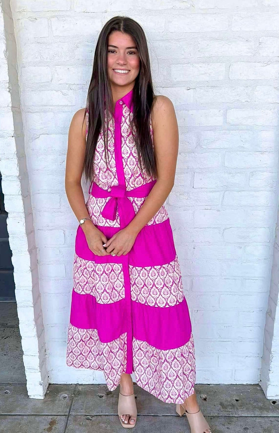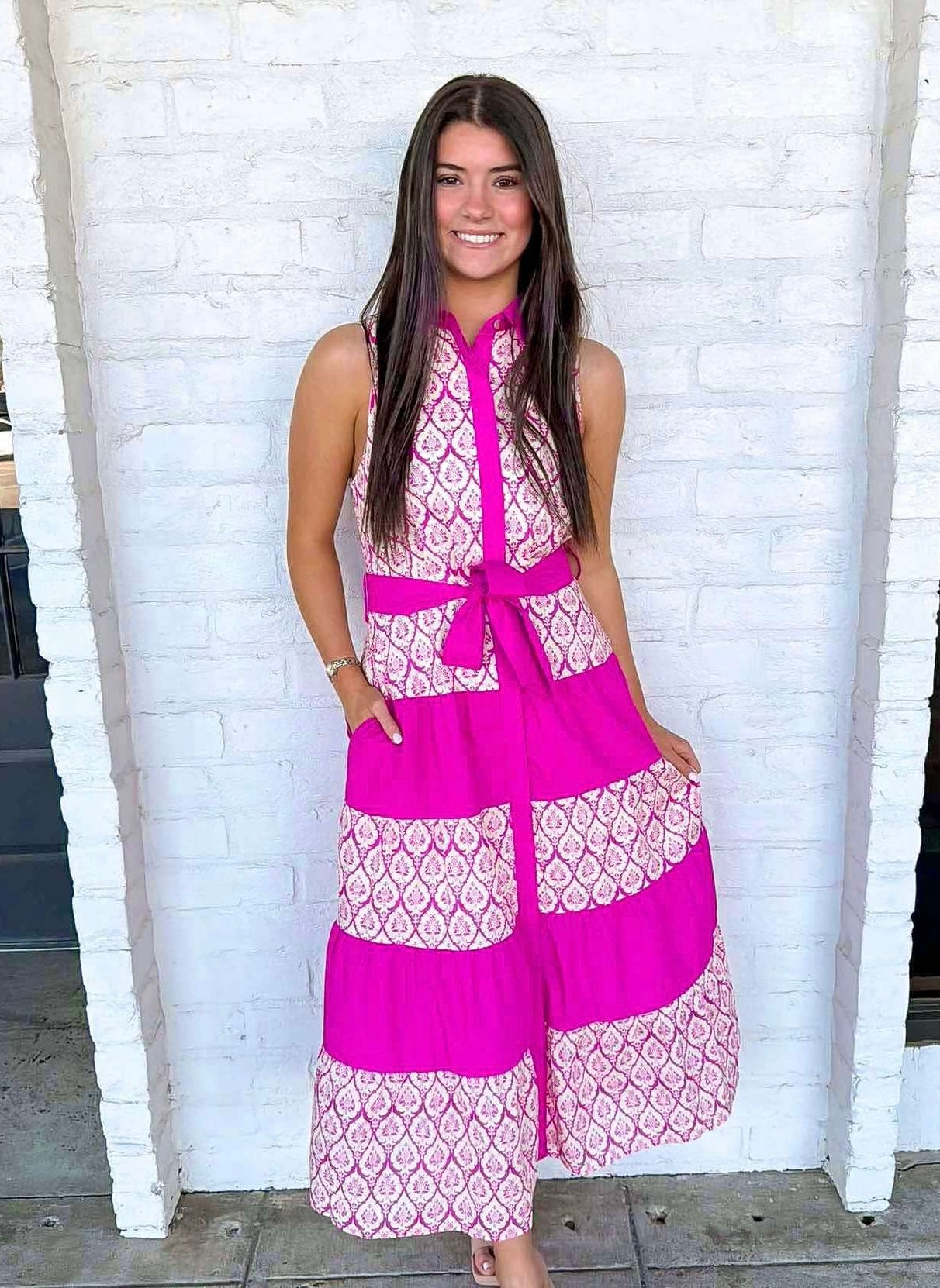 Embrace the joy of spring with the Lovely Spring Day Pink Dress! This delightful maxi dress wraps you in effortless elegance, ideal for picnics or strolls in the park. Its flowing design allows you to move freely while radiating beauty and charm. Experience the season's warmth and vibrancy in style!