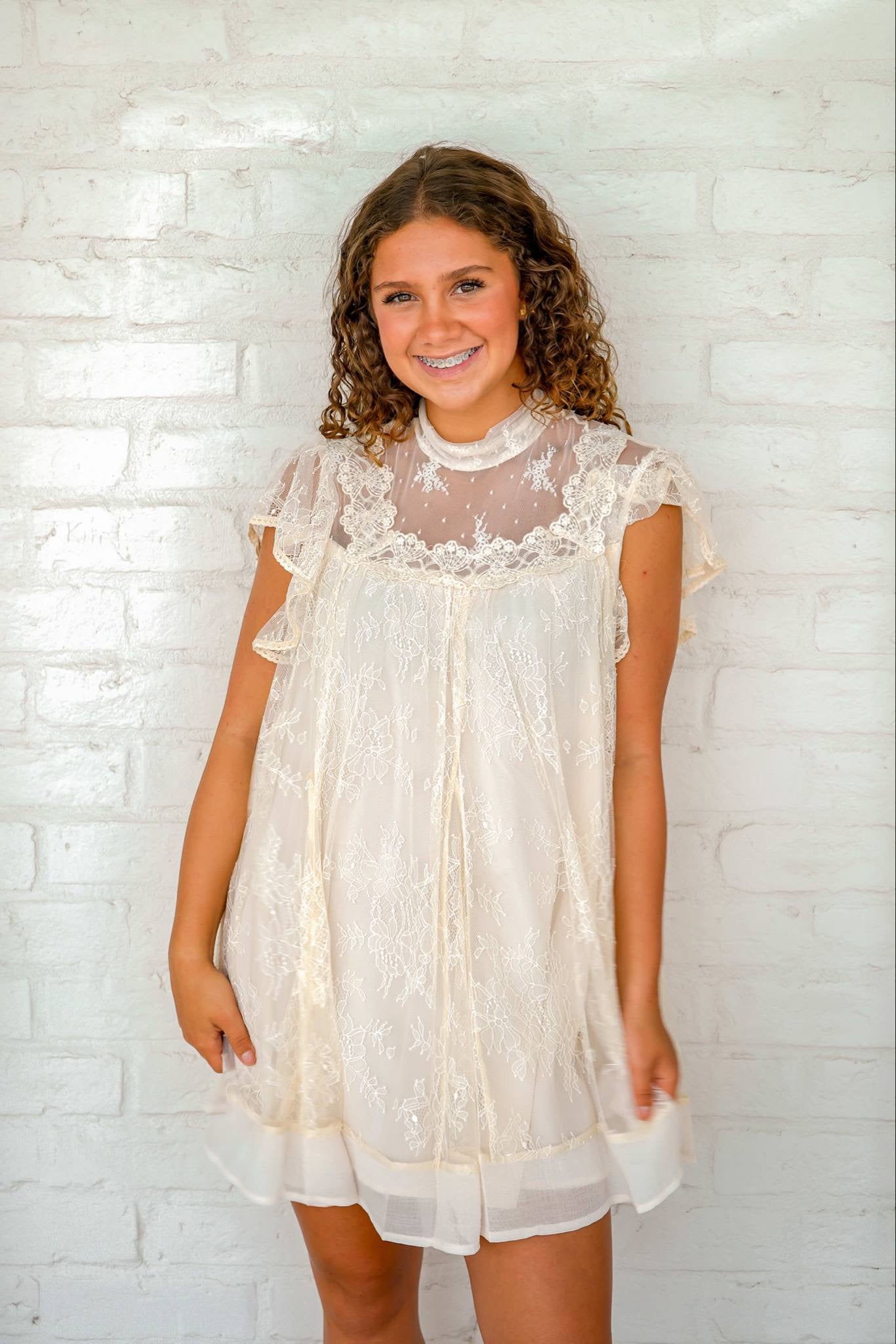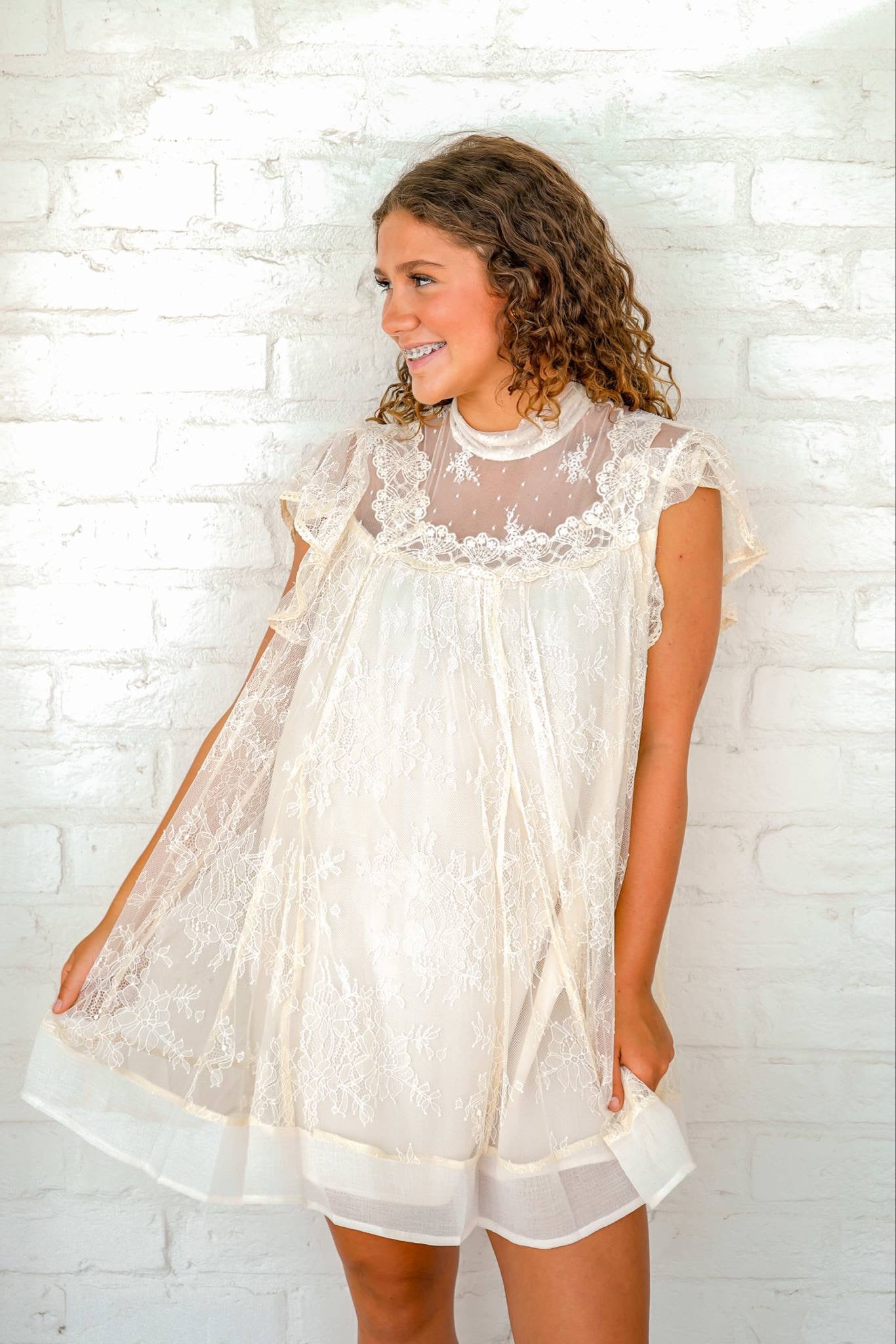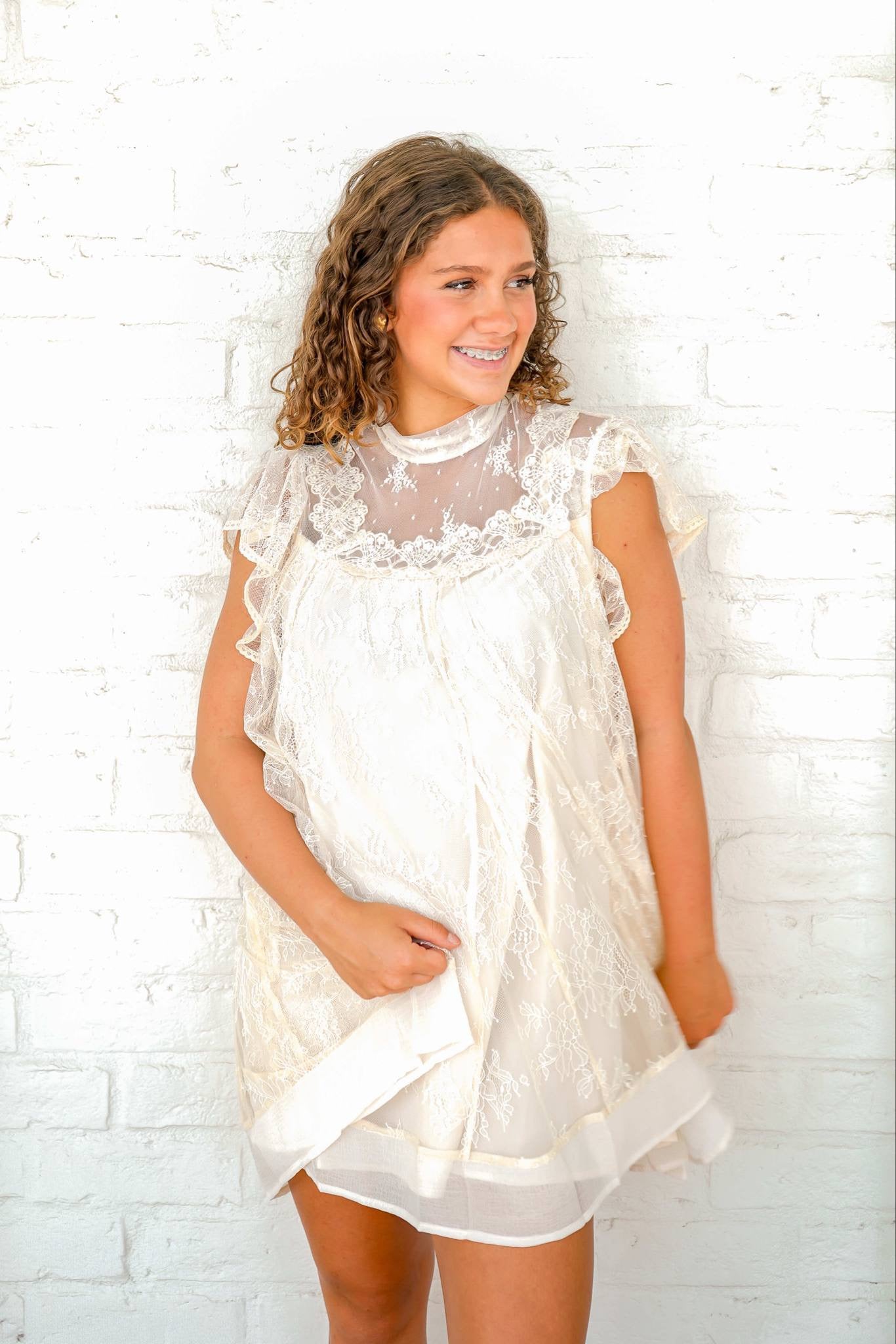 Experience elegance and grace with our Make A Deal Cream Lace Dress. Made from delicate lace fabric, this dress exudes sophistication and charm. Perfect for any special occasion, you'll feel confident and beautiful in this timeless piece. Bring your wardrobe to the next level with this must-have dress!