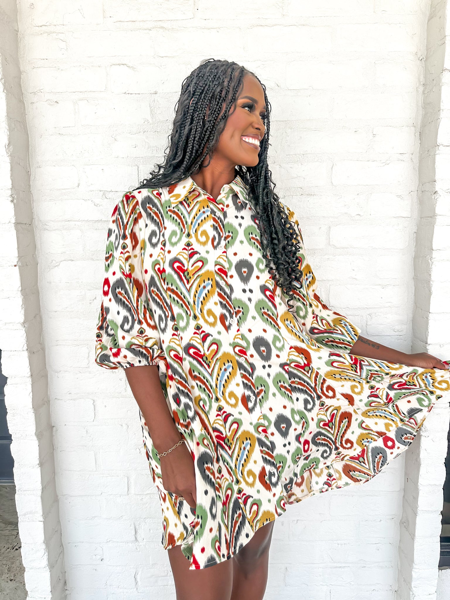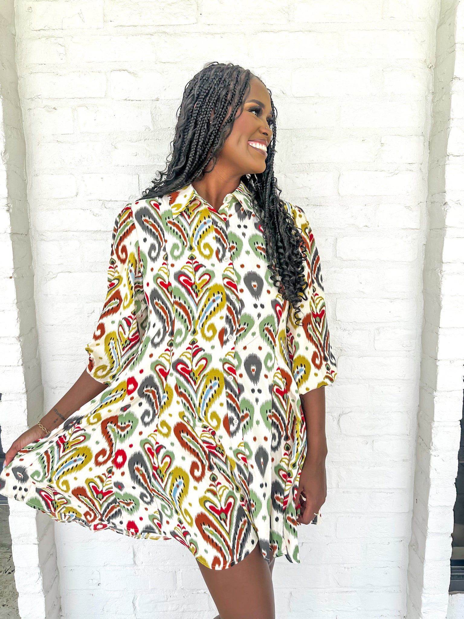 Elevate your wardrobe with the Reasons For It Cream Dress! This stunning dress features a beautiful print, a flattering button down design, and charming puff sleeves. Add a touch of elegance and sophistication to your everyday style with this must-have dress.
