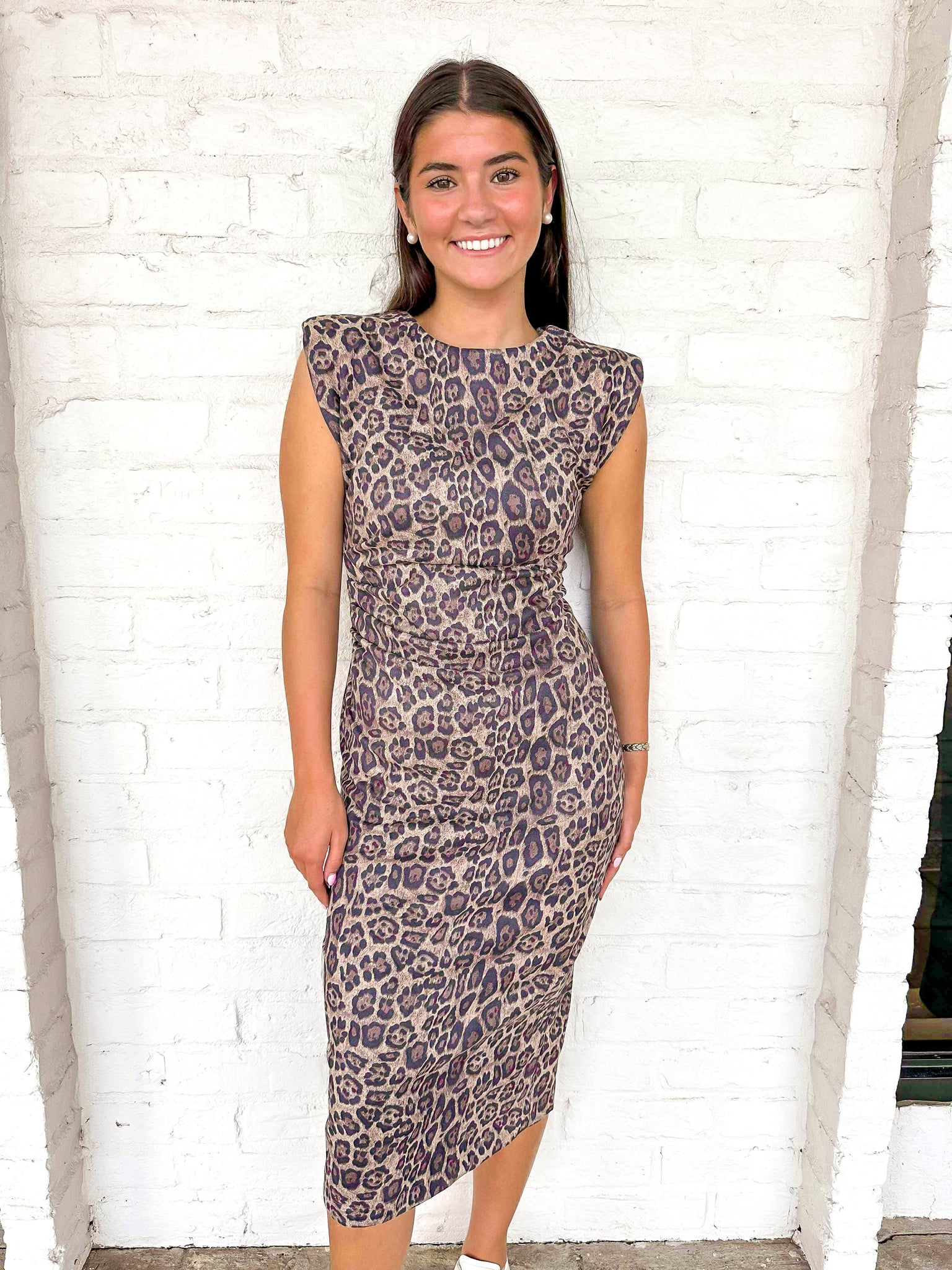 This taupe dress is made from a soft cheetah fabric, adding a touch of wild style to your wardrobe. Redeem yourself and stand out in this unique and comfortable dress, perfect for any occasion.