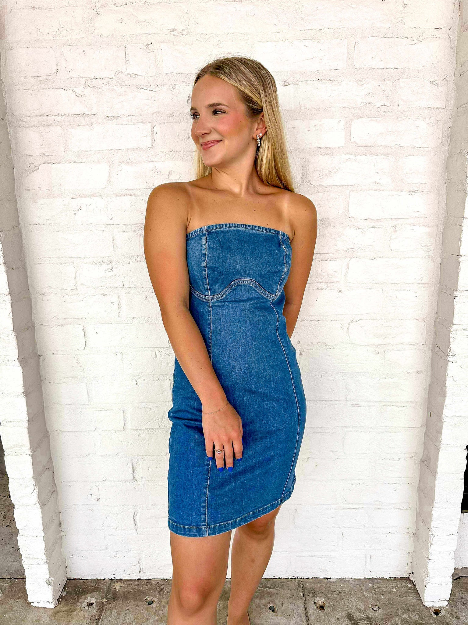 Indulge in the ultimate mix of style and comfort with our Regret Nothing Denim Dress! This strapless dress features a timeless denim design, perfect for any occasion. Don't hold back, embrace your inner fashionista and make a statement without sacrificing comfort.