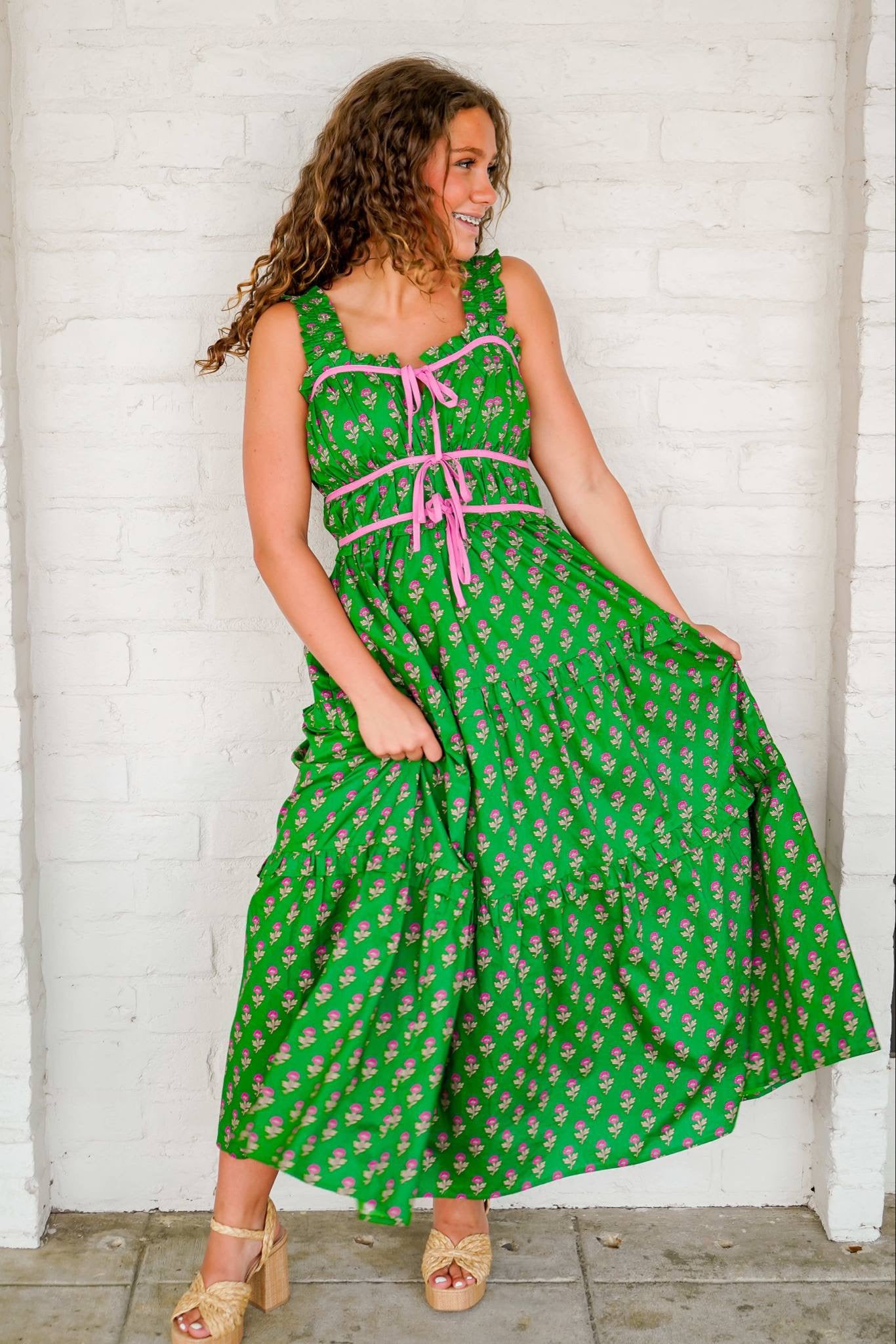 Transform into the epitome of beauty and grace with our Slow And Steady Green Dress. Adorned with a stunning floral pattern, this dress exudes elegance and femininity. Elevate your style game and make a lasting impression.