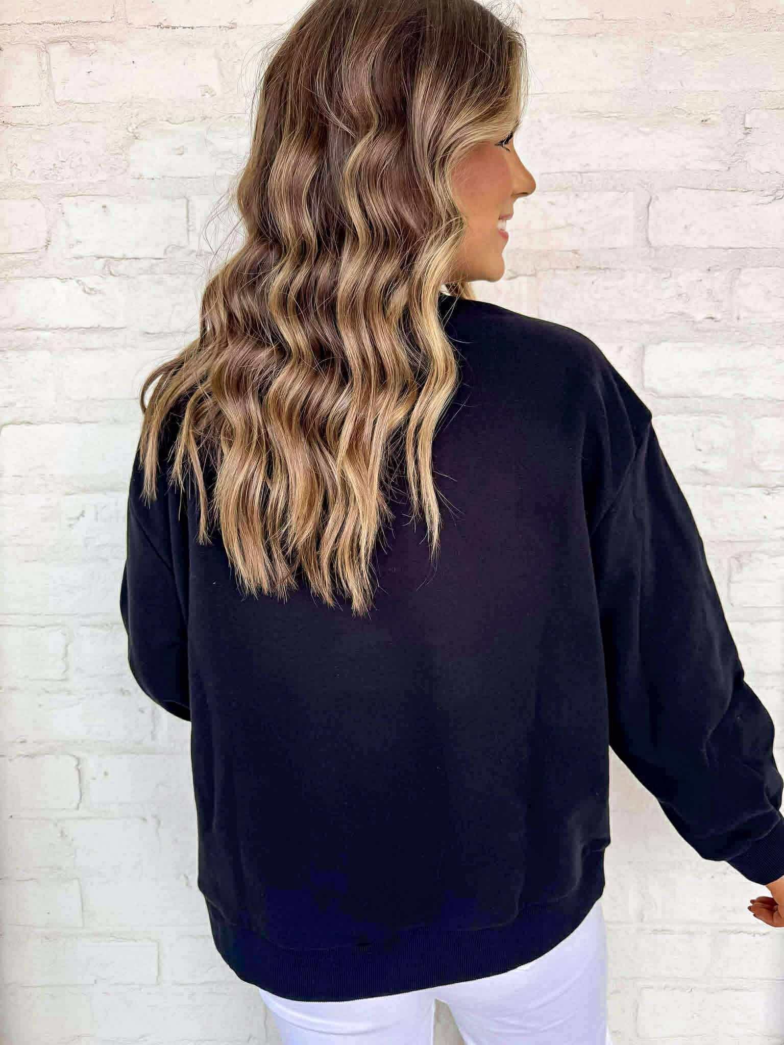 Get ready to shine this Halloween with our Queen of Sparkles Black and White Flower Sequin Ghost Sweatshirt! With its hauntingly beautiful ghost design, you'll be the talk of the town. Plus, the sequin details add an extra touch of sparkle to make you stand out. Don't miss out on this must-have Halloween look!