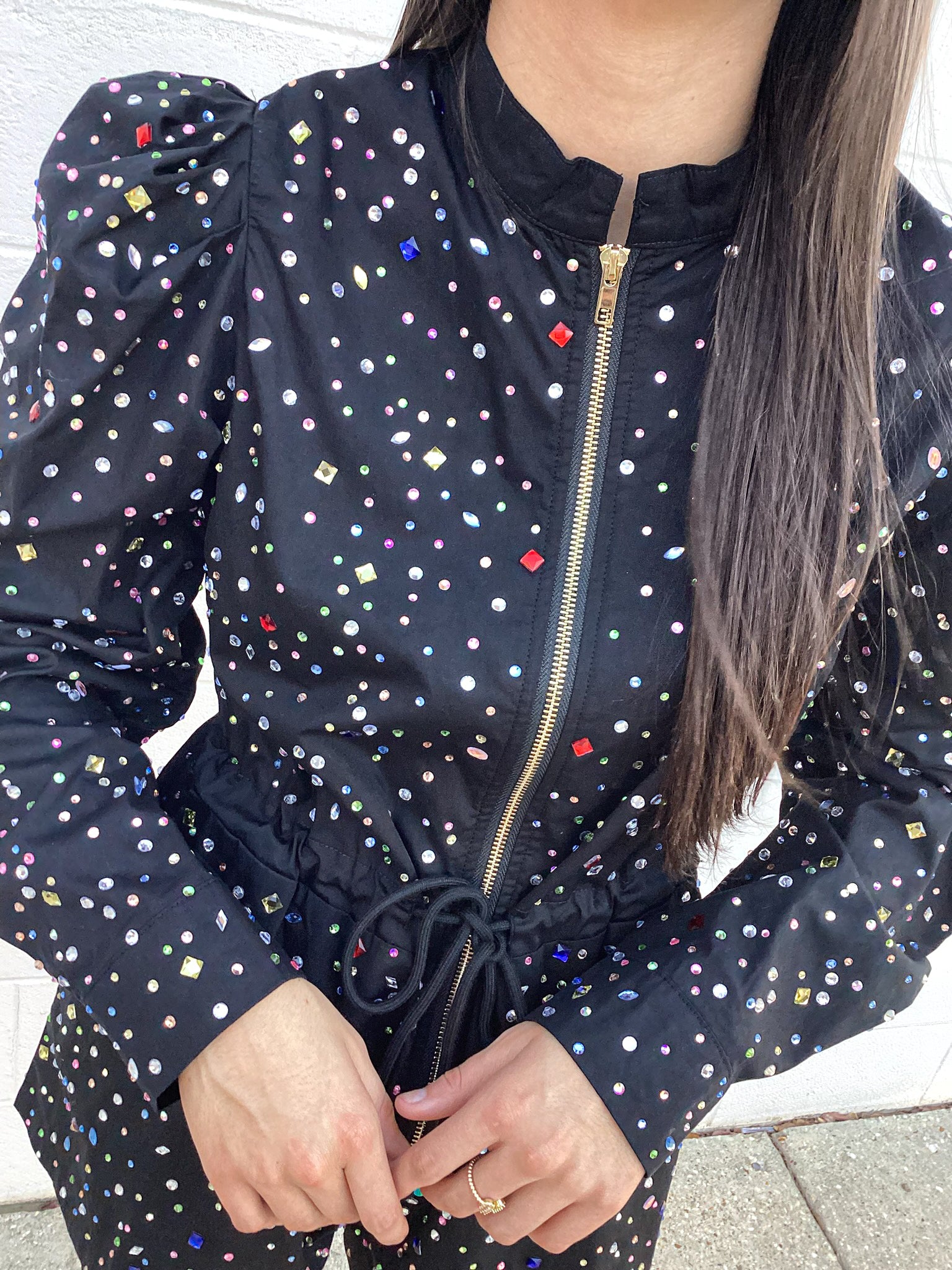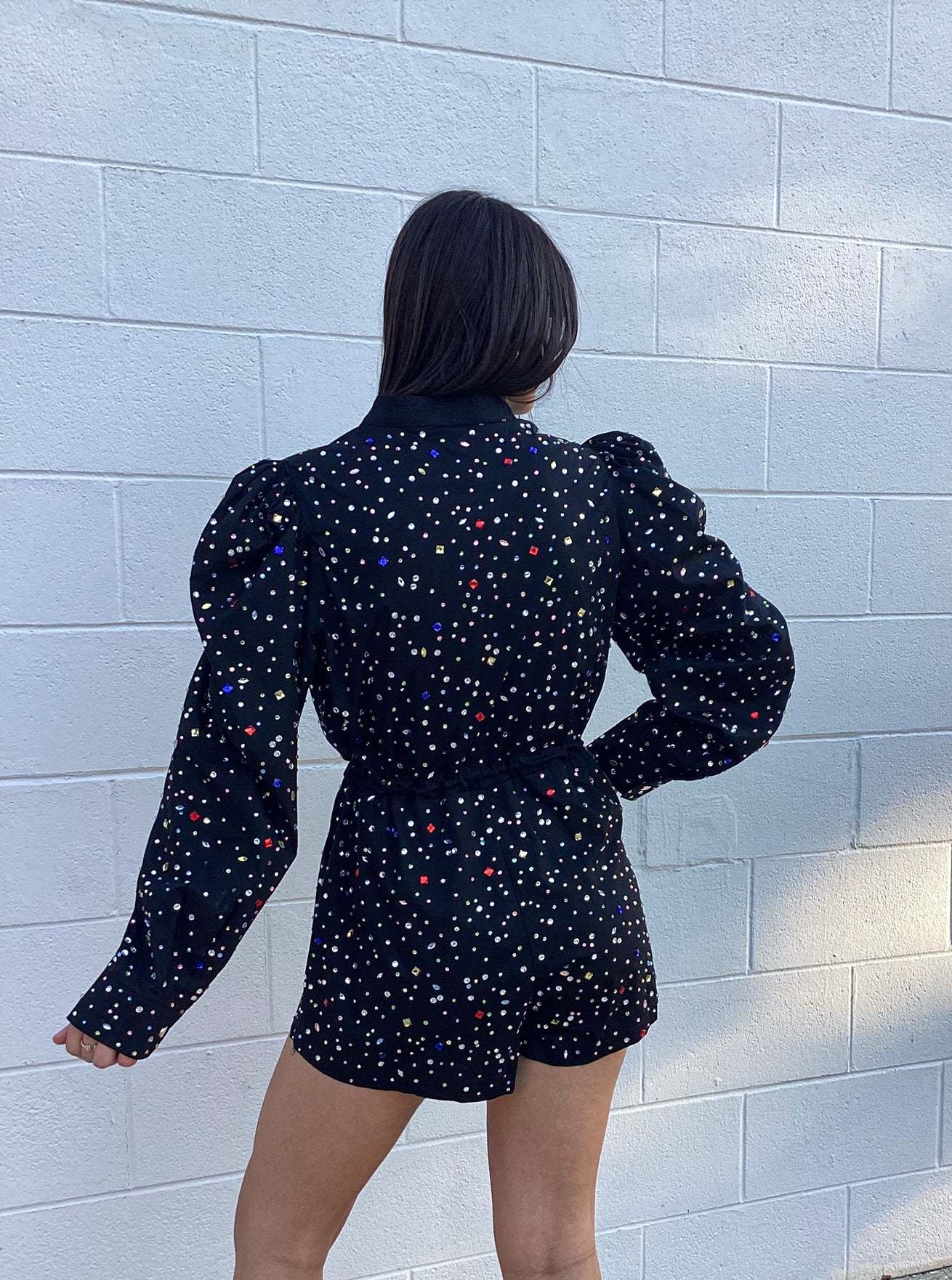 Queen Of Sparkles Black Multi Scattered Rhinestone Romper