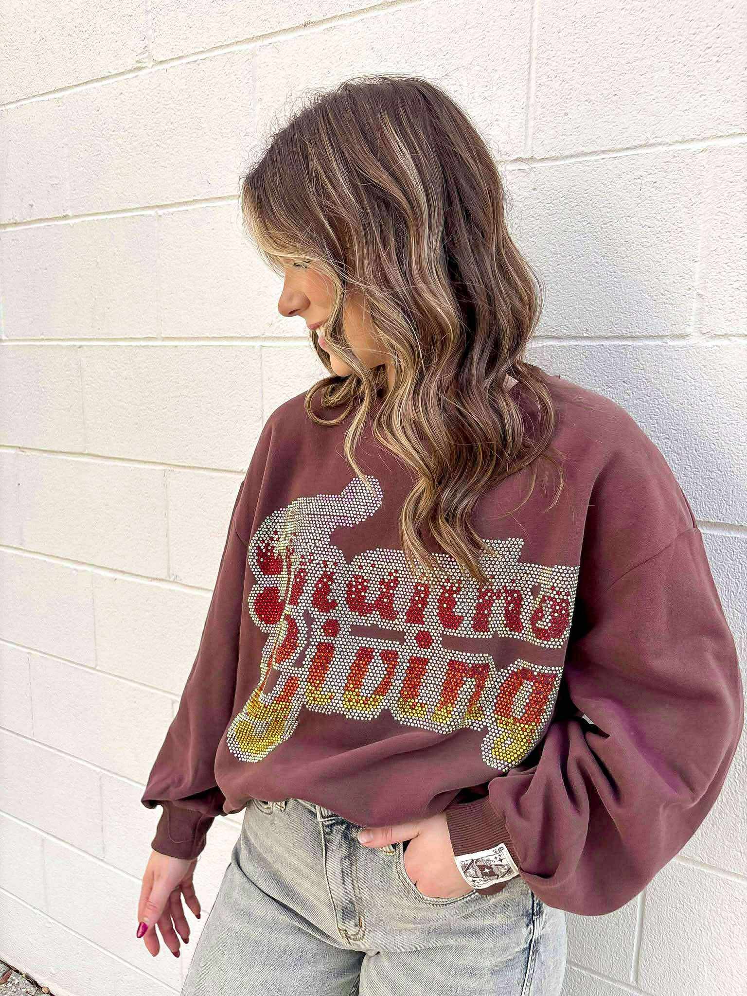 Celebrate the season in style with our Queen Of Sparkles Brown Rhinestone 'Thanksgiving' Sweatshirt! The perfect combination of fashion and comfort, this sweatshirt is the ultimate way to show your holiday spirit. Stand out with rhinestone embellishments and stay cozy with a soft, lightweight fabric. Elevate your wardrobe and spread the Thanksgiving cheer with our must-have sweatshirt.