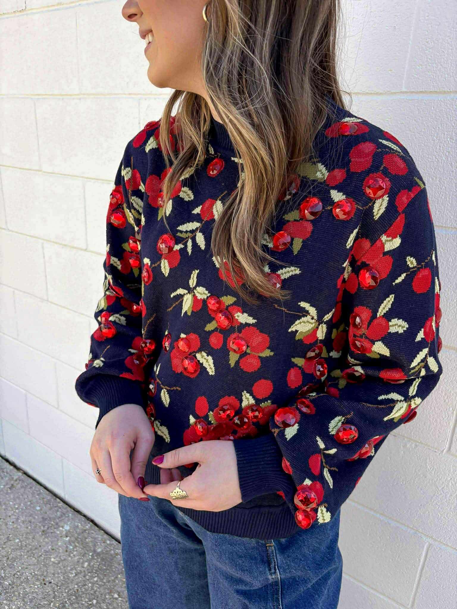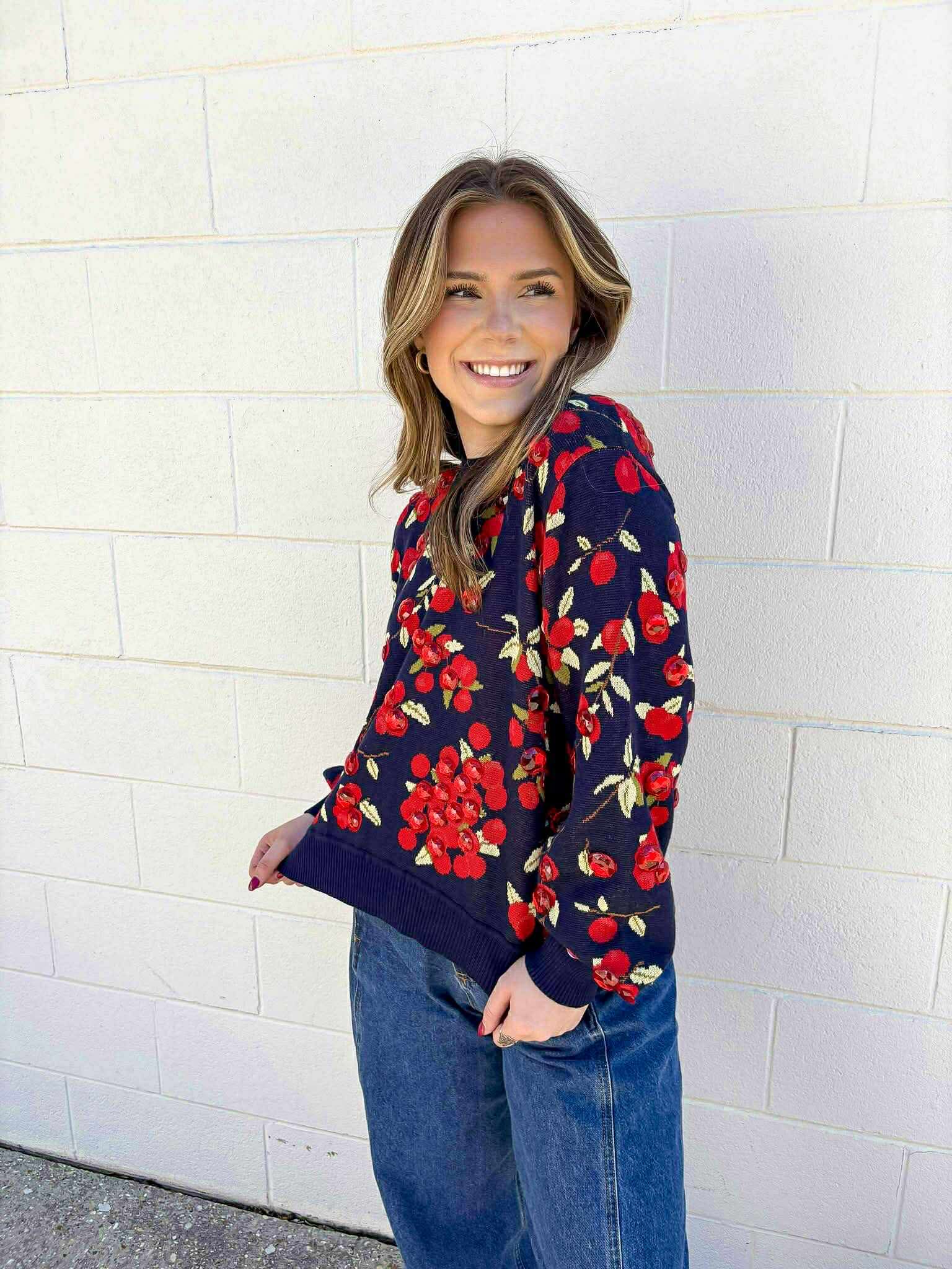 Elevate your style with our Queen of Sparkles Navy Cranberries Sweater! With a pop of cranberry color, this sweater brings a touch of boldness and sophistication to any outfit. Stay cozy and stand out from the crowd with this must-have piece.