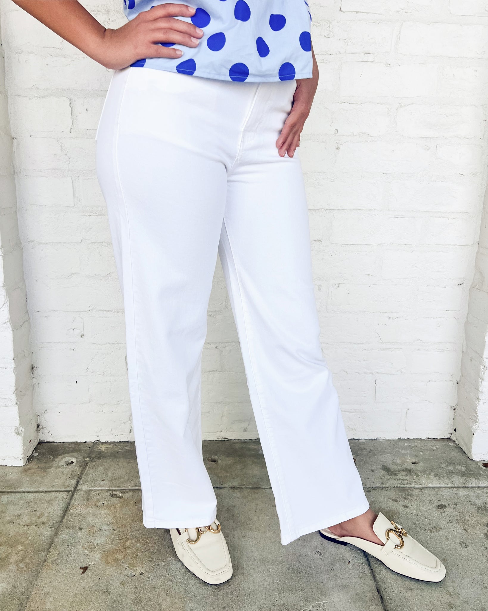 Unleash your unique style with our No Judgement White Denim Jean! The vintage straight design offers a flattering fit, while the white denim adds a timeless touch to any outfit. Feel confident and stylish in these must-have jeans!