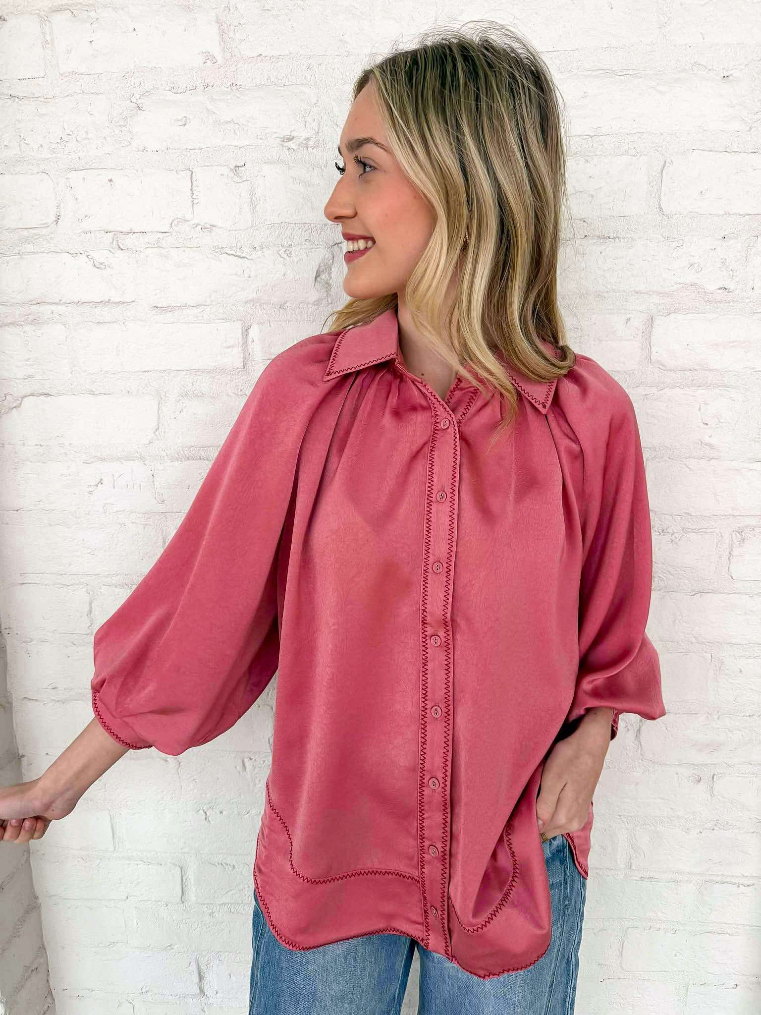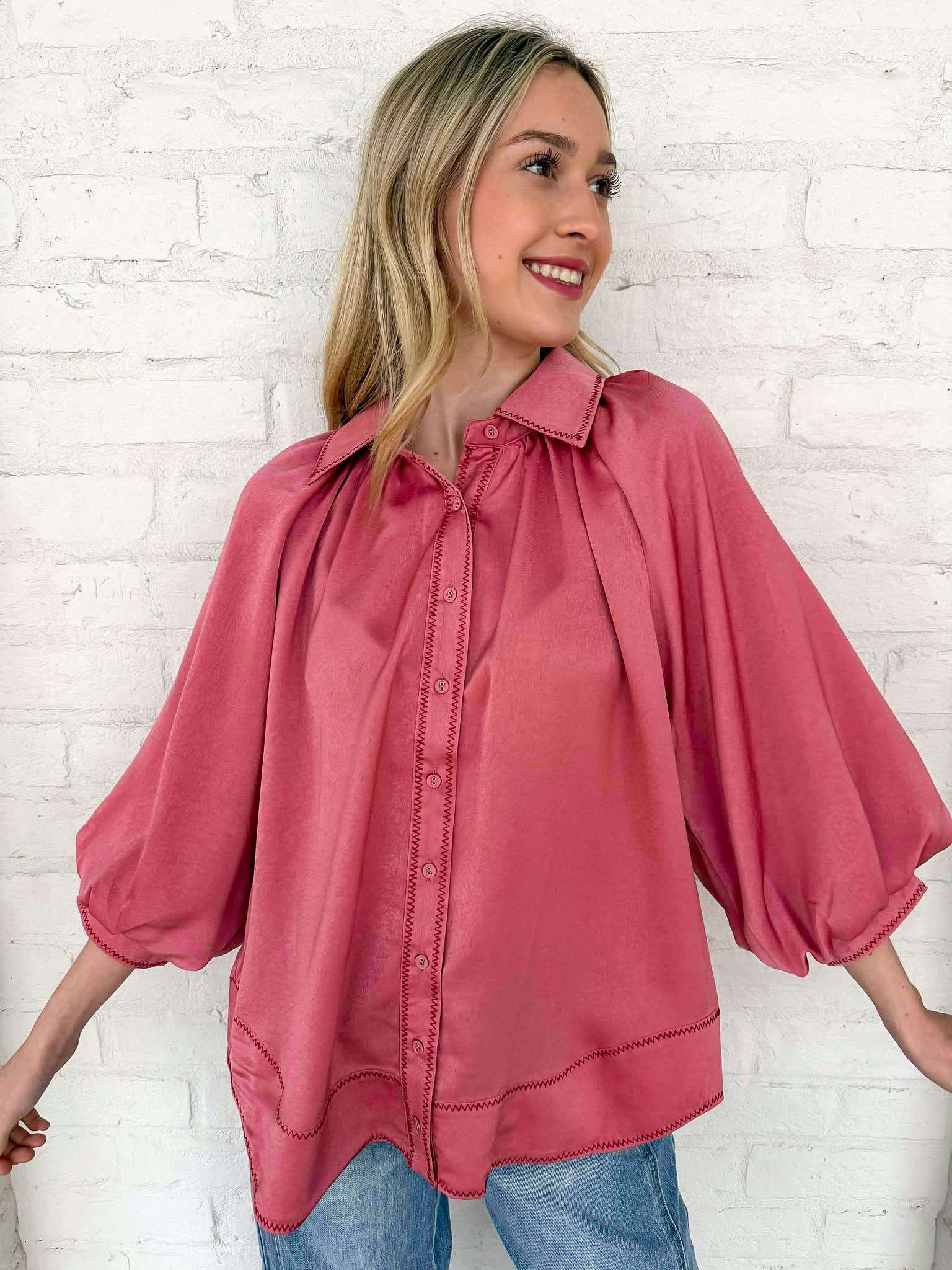 Elevate your wardrobe with the Enough Talking Top! This stunning button-down features elegant satin balloon sleeves that exude sophistication. Imagine the soft touch of the fabric against your skin as you step out in style—perfect for making a statement at any occasion. Embrace your unique flair and shine!