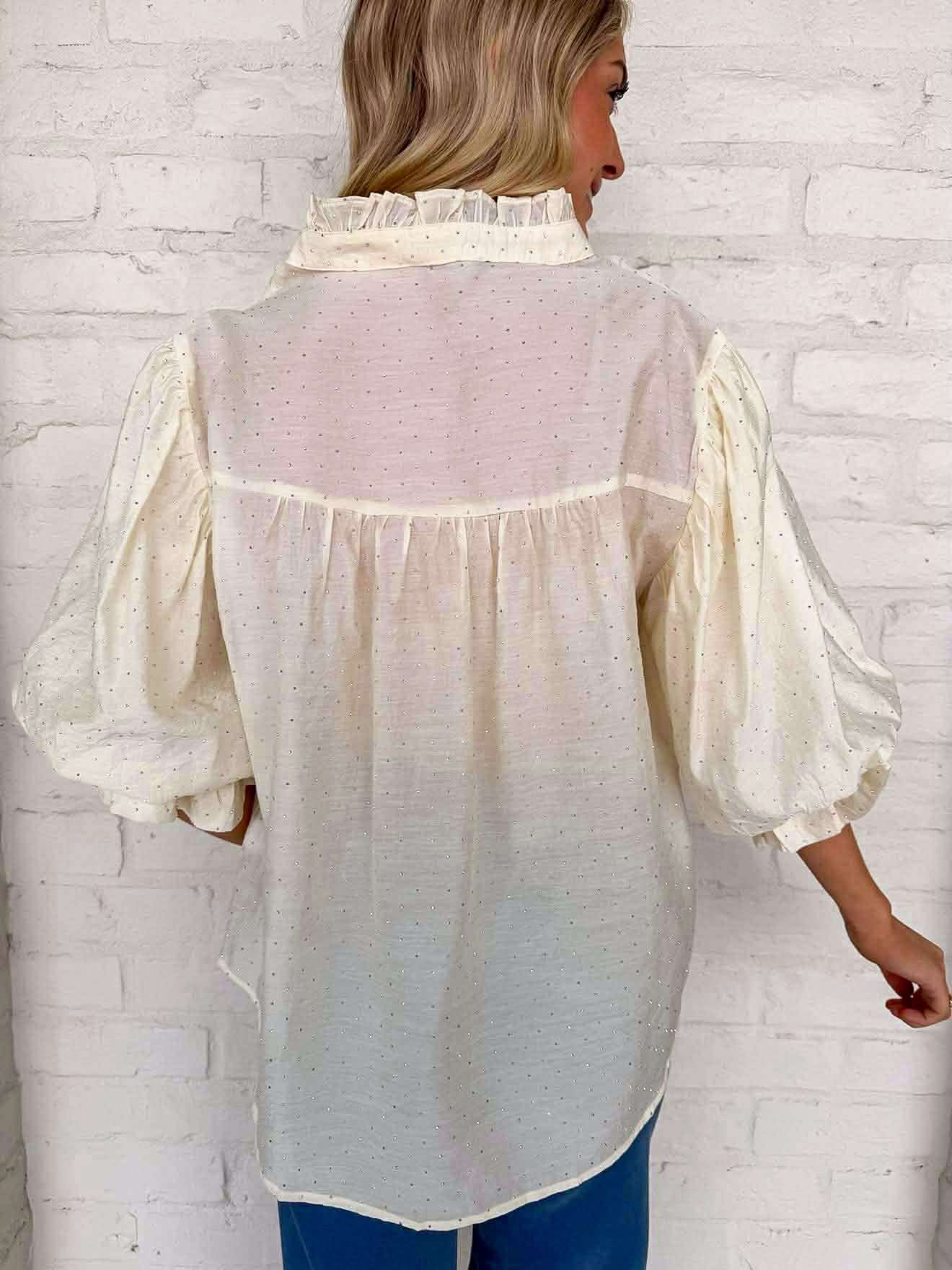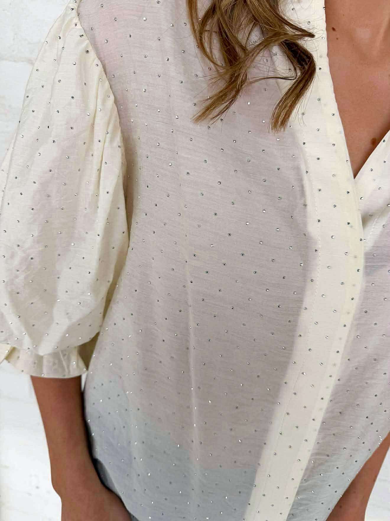 Ignite your spirit and dazzle with the Show You Care Cream Rhinestone Top! This eye-catching piece is adorned with glimmering rhinestones that elevate your style and make a bold statement. Step out and shine bright—your adventure awaits!