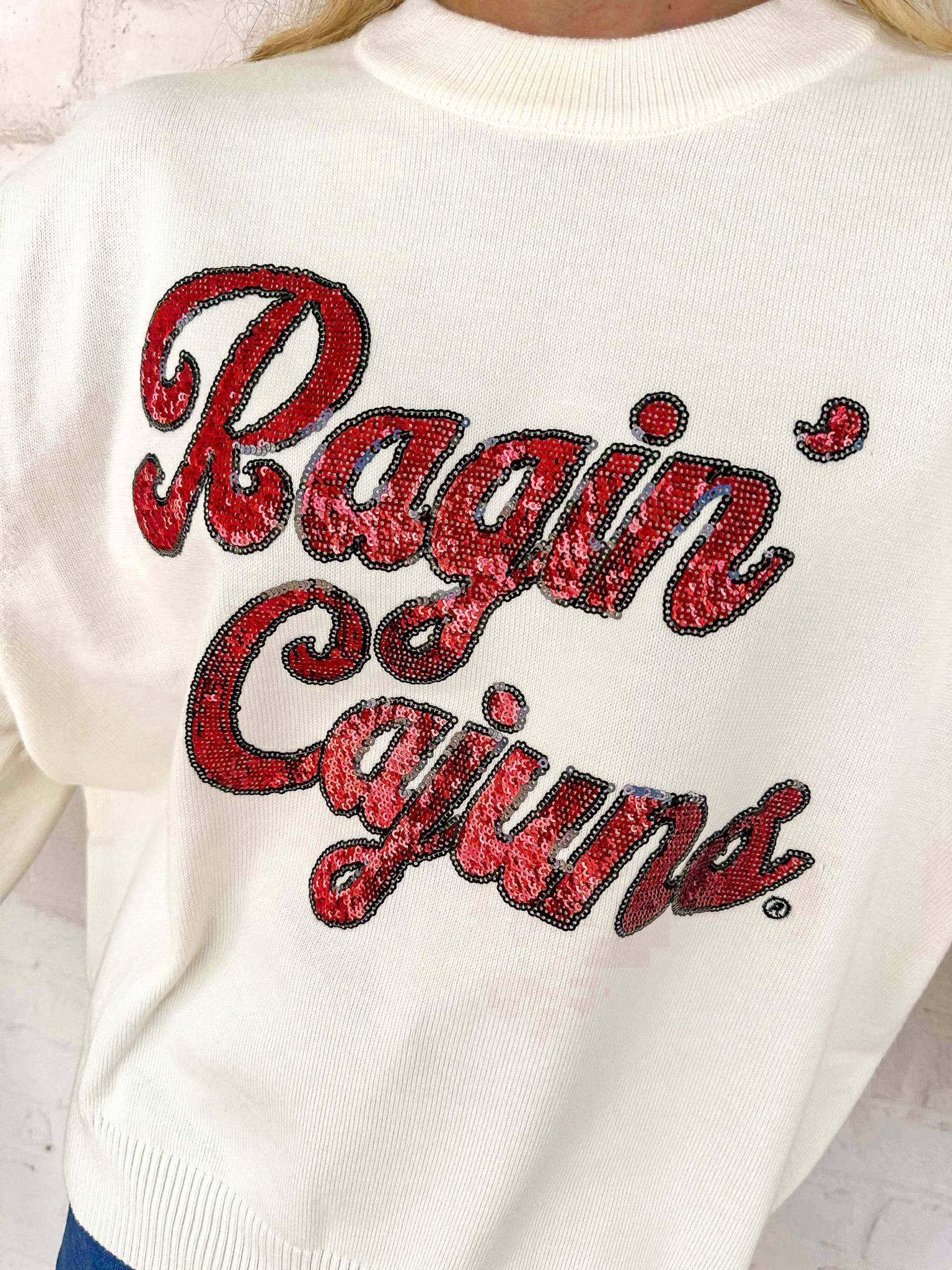 Step into the spotlight with our Queen Of Sparkles ULL Feathered Sleeve Sweater! Designed with Ragin Cajuns, this sweater will make you stand out in any crowd. The perfect addition to your wardrobe for a confident and stylish look. Elevate your fashion game and show off your team spirit!