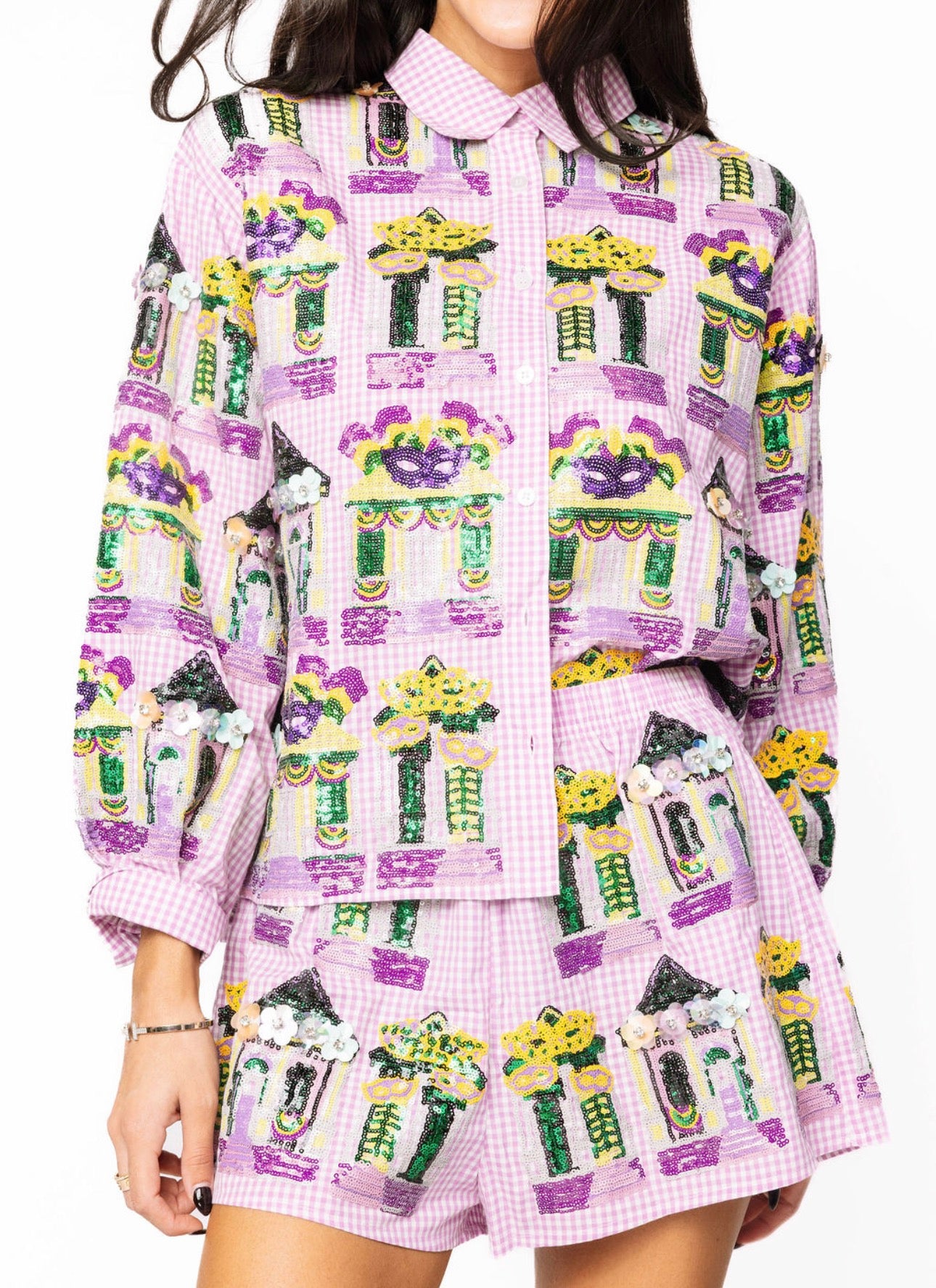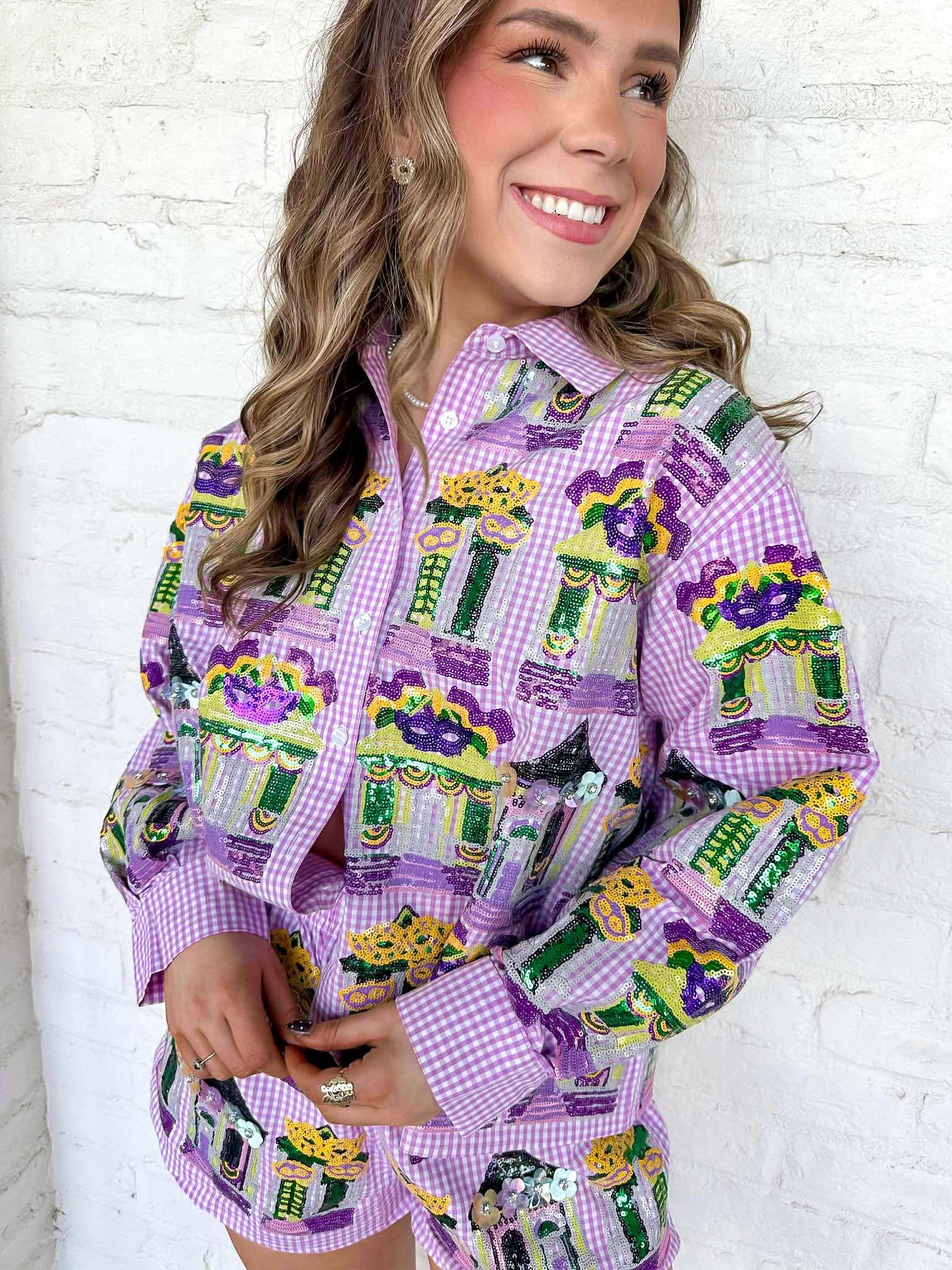 Queen Of Sparkles Diamond Mardi Gras Porches Button Up