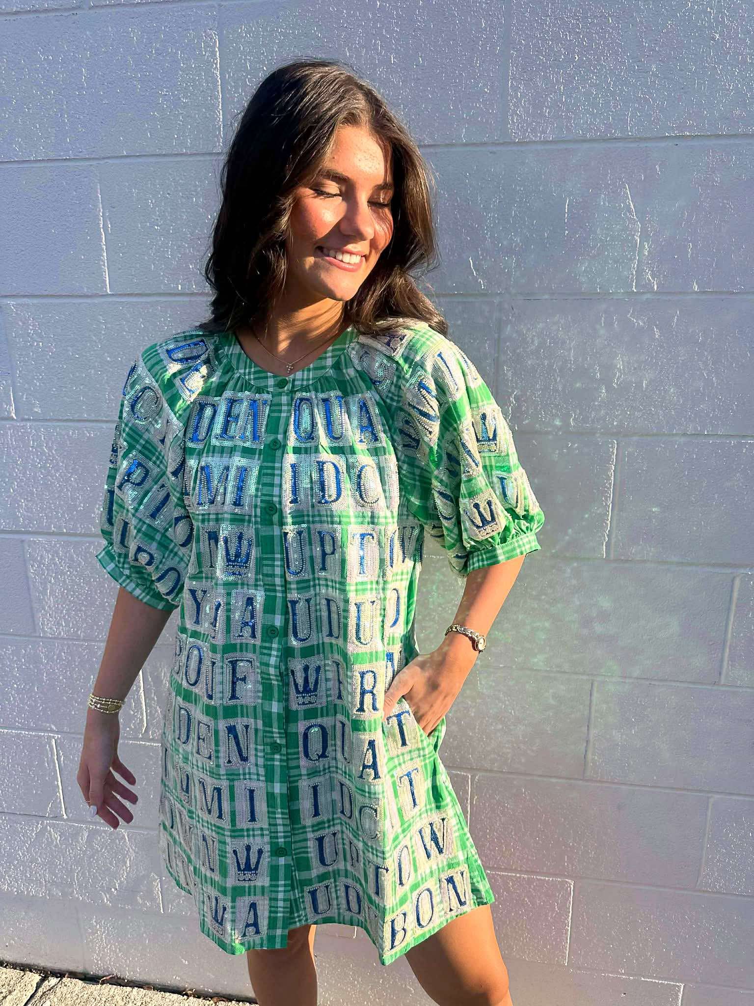 Queen Of Sparkles Green NOLA Street Tile Button Up Dress