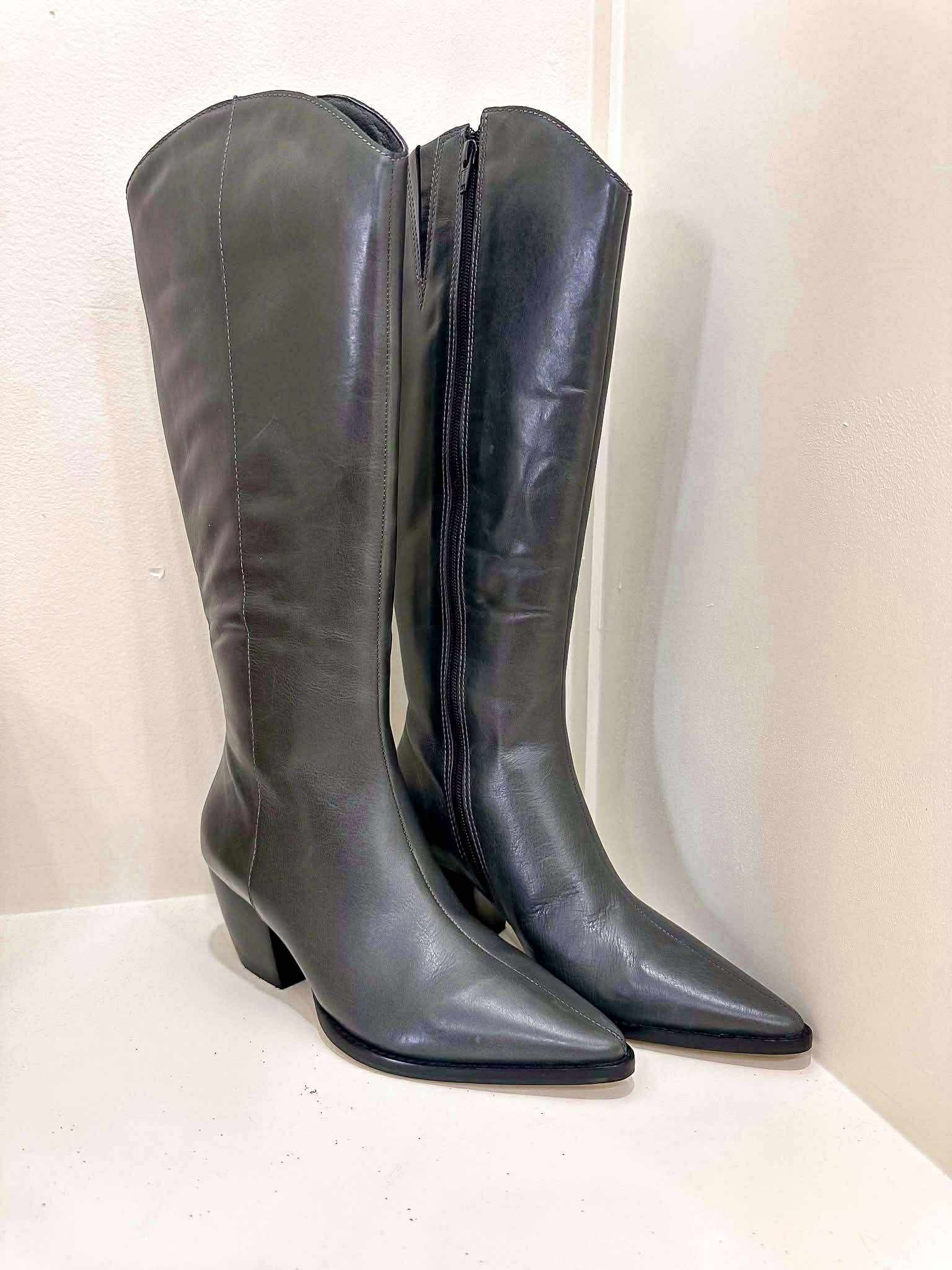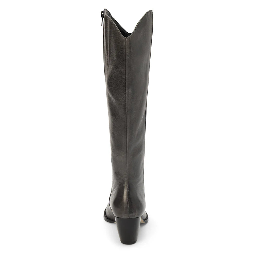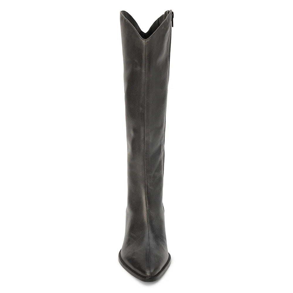 Introducing the Bellamy Leather Boot - a sleek, tall western boot with a pointed toe and angled block heel. Elevate any outfit with these stylish boots that are sure to turn heads. Perfect for a night out or a casual day look. Step into style and conquer the world!