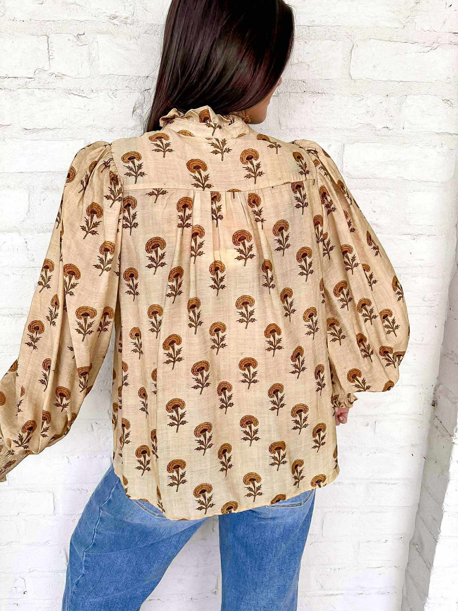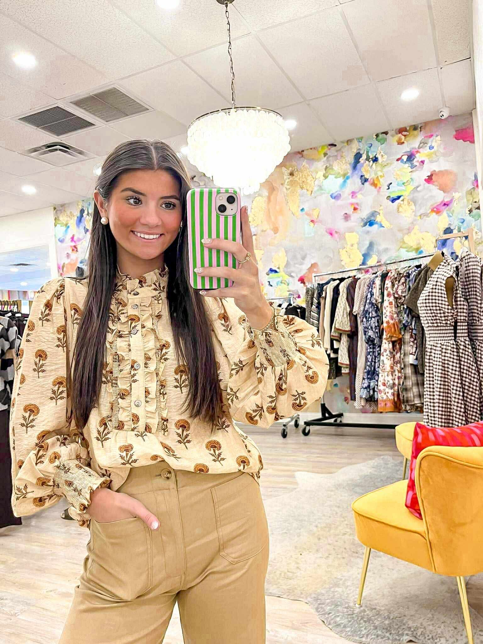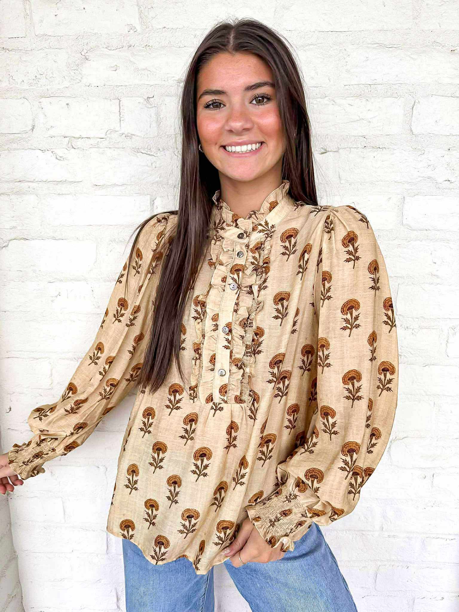 Get ready to elevate your wardrobe with our Brace Yourself Tan Top! This stunning floral print blouse will add a touch of elegance and sophistication to any outfit. Stand out and make a statement with our top, perfect for any occasion. Order now and brace yourself for compliments.