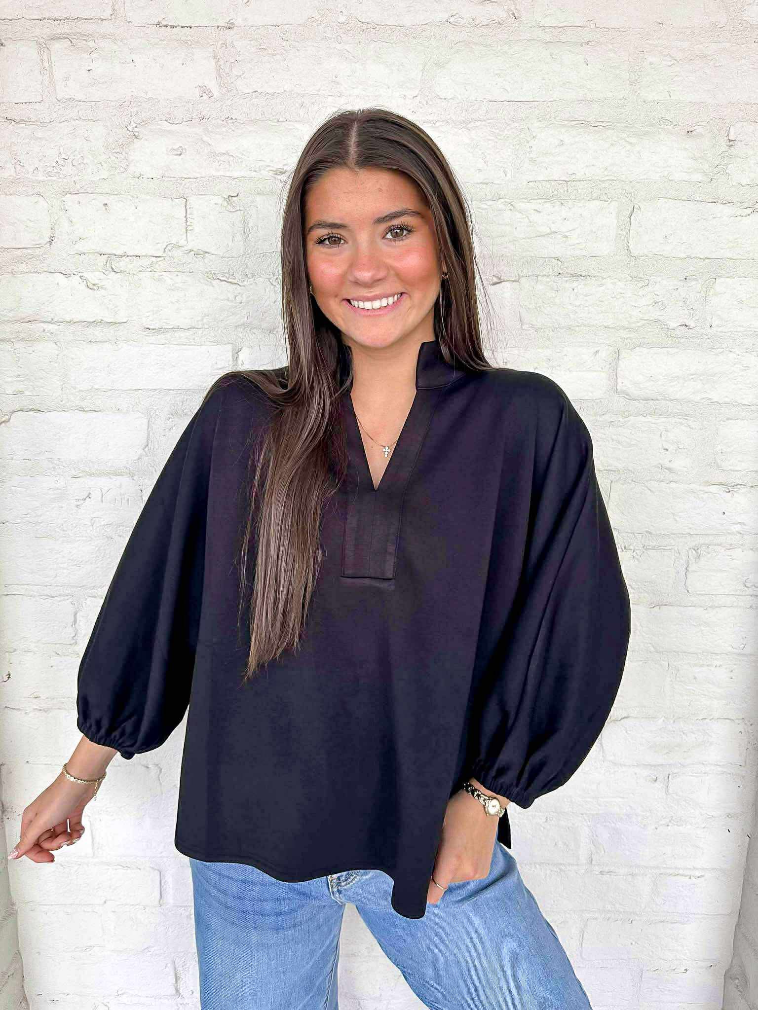 Elevate your wardrobe with our versatile Choose A Side Black Top. This basic top is a must-have for any fashion lover, with its timeless design that can easily be dressed up or down. Experience effortless style and endless possibilities with this essential piece!