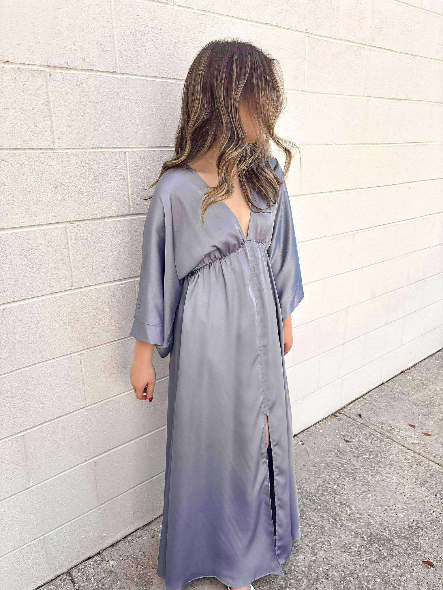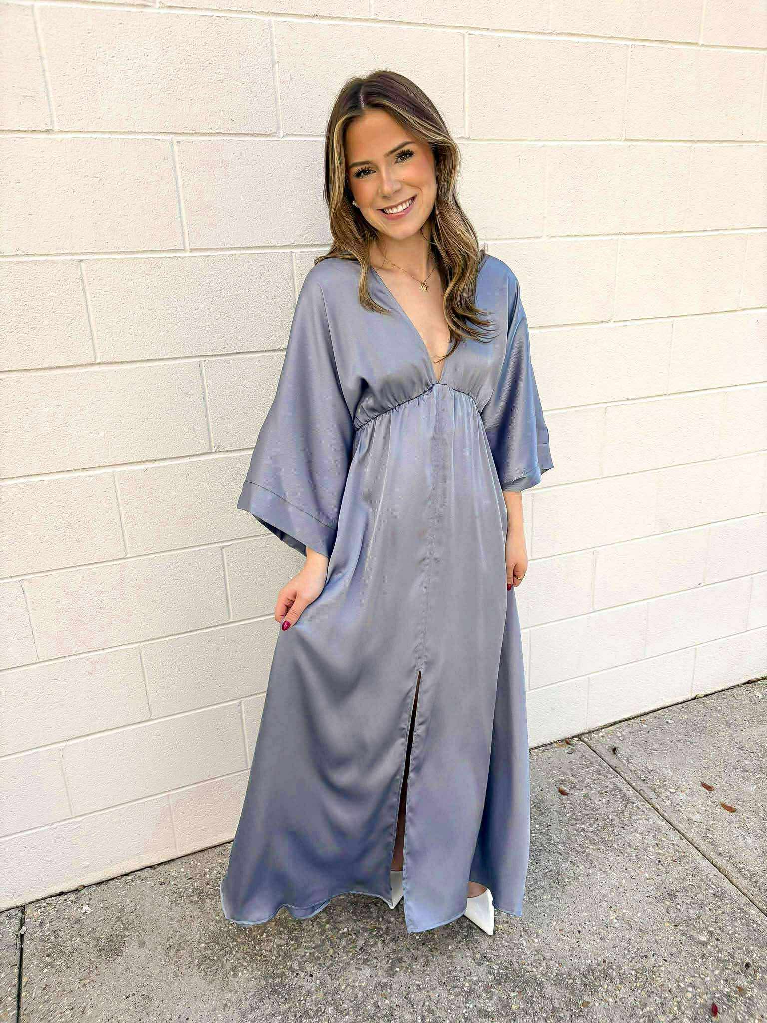 Indulge in a night of luxury with our Date Night Kimono Maxi Dress. This gorgeous piece features a shiny hammered satin fabric that will make you feel and look glamorous. Elevate your date night outfit and turn heads with this stunning kimono maxi dress!