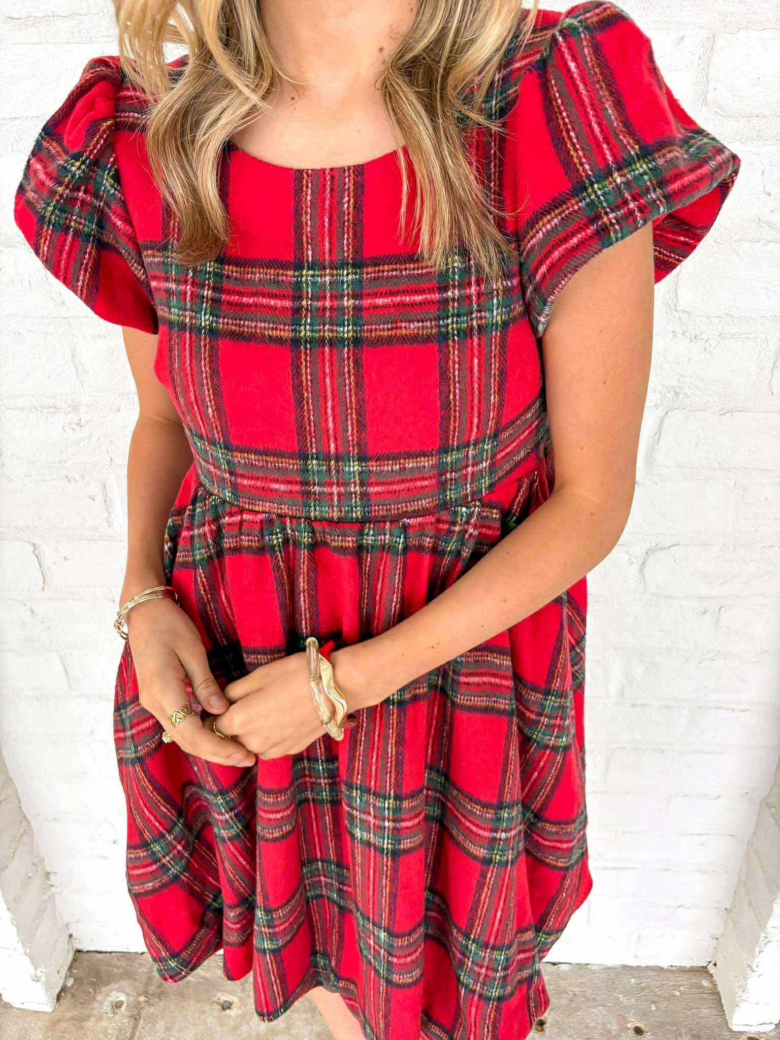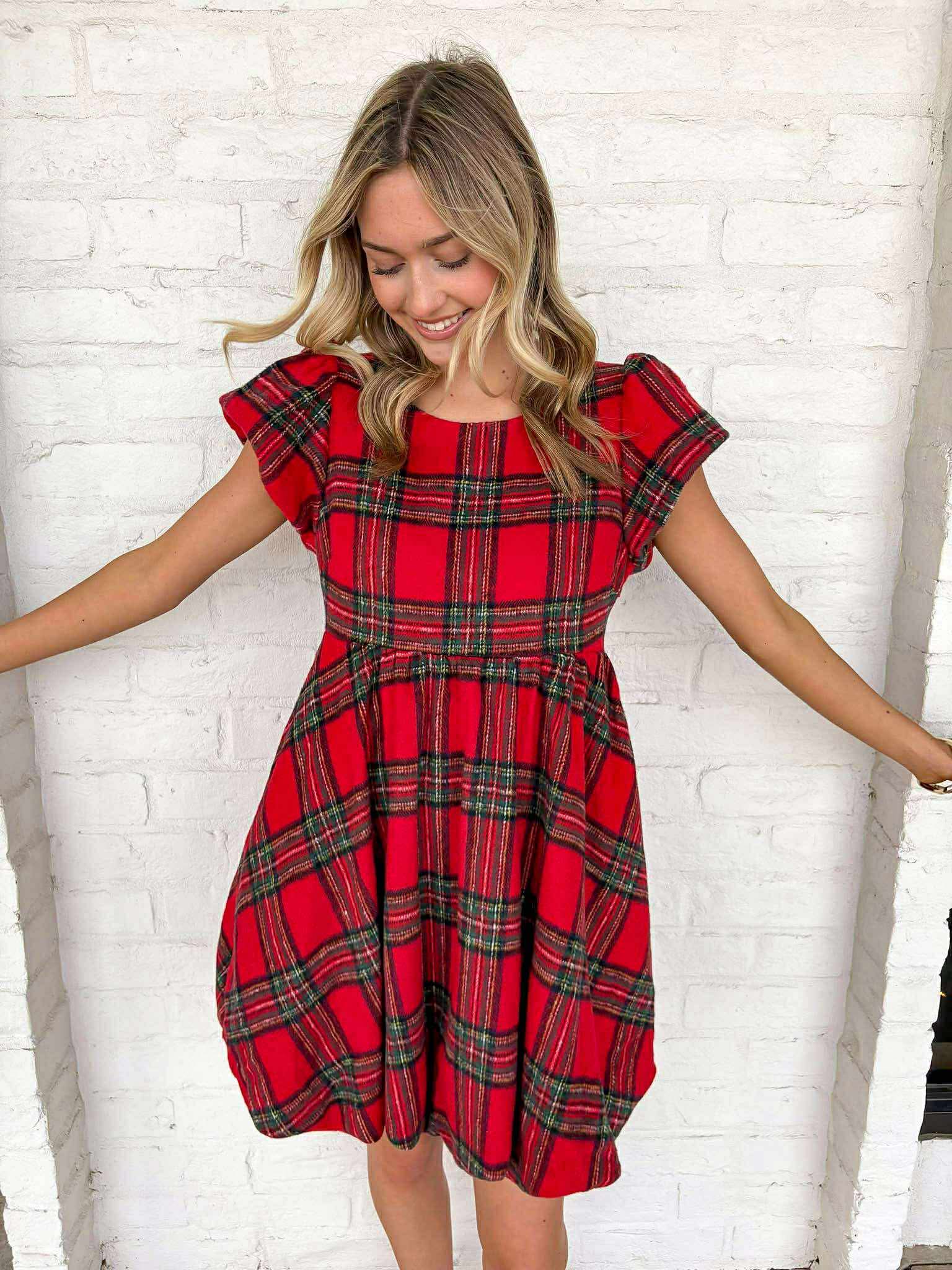 Get into the holiday spirit with our Good Times Red Plaid Dress! This dress features a classic Christmas plaid print, perfect for festive gatherings and events. Embrace the season with style and make a statement with this timeless piece. Spread joy and cheer with every wear!