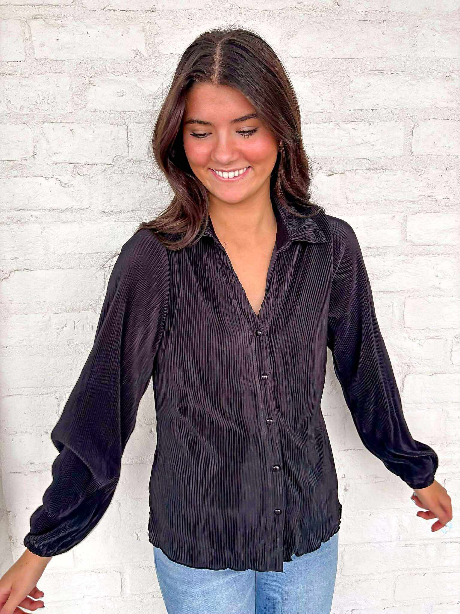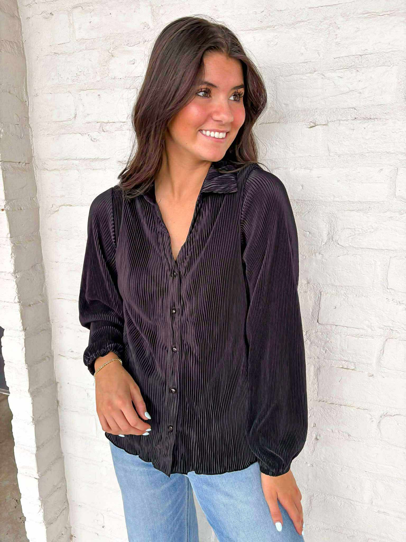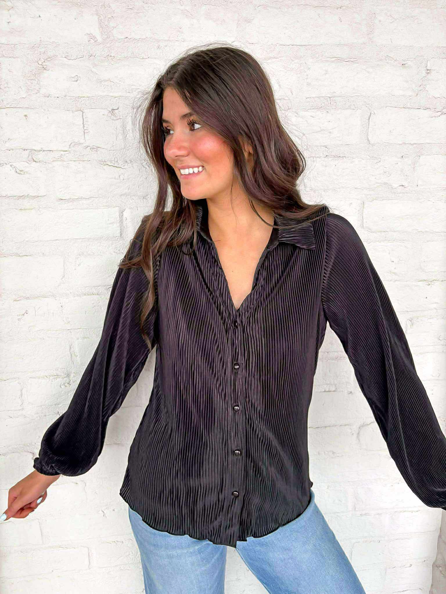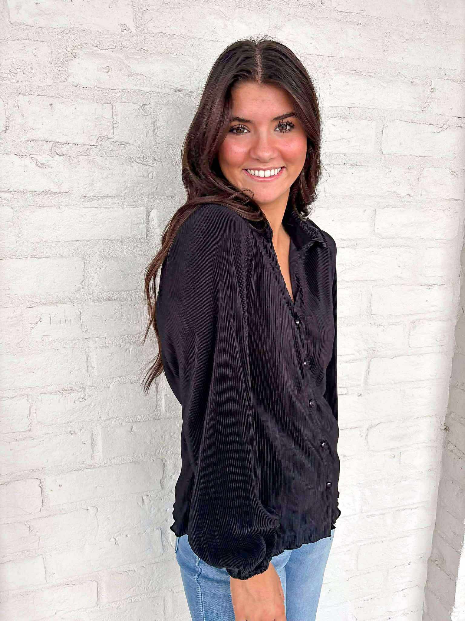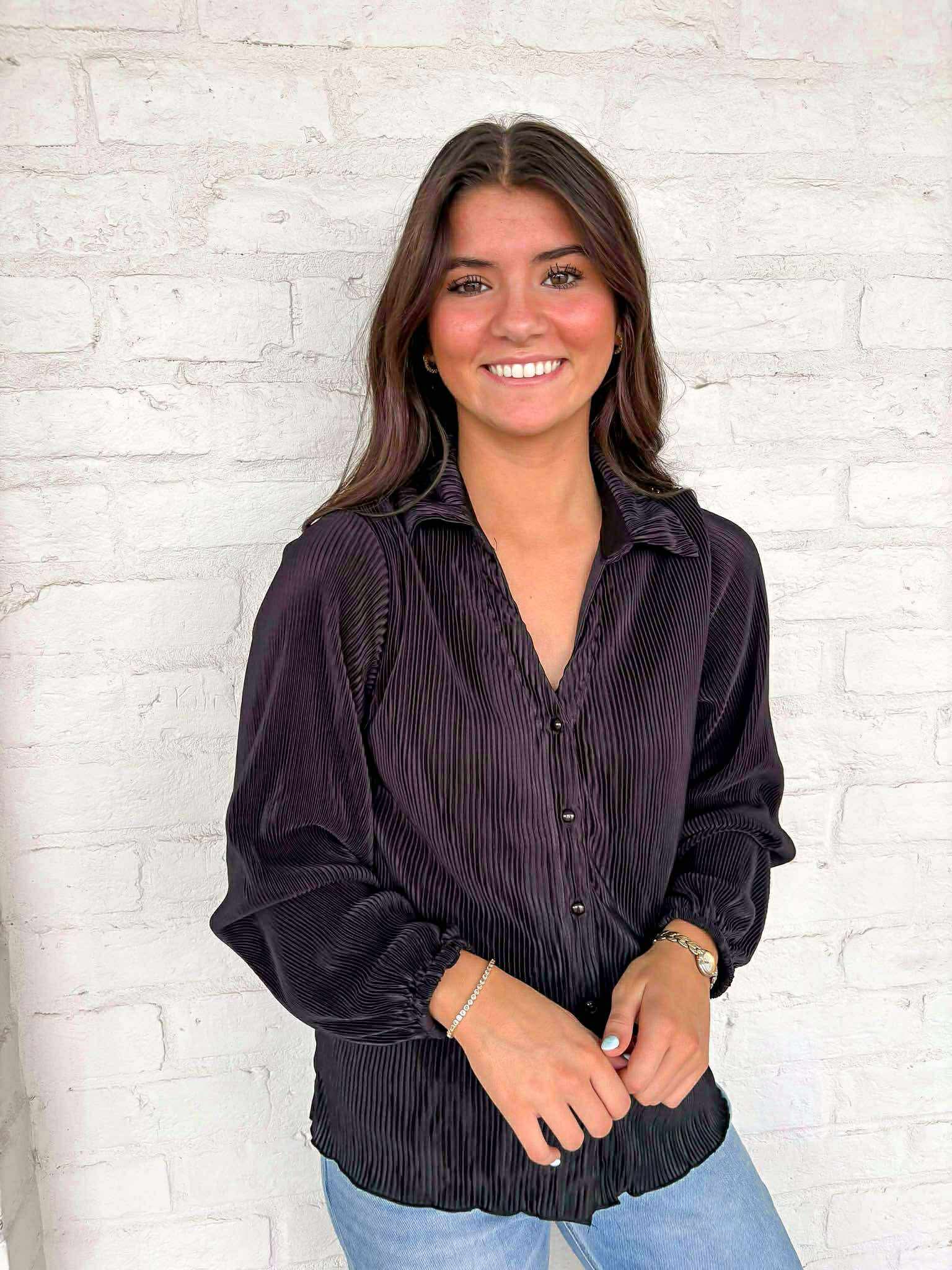 Upgrade your wardrobe with our Hello There Black Top! Made with luxurious silk, this top will elevate any outfit. Feel confident and stylish with the smooth, elegant fabric that's gentle on the skin. Perfect for any occasion, this top is a must-have for fashion lovers.