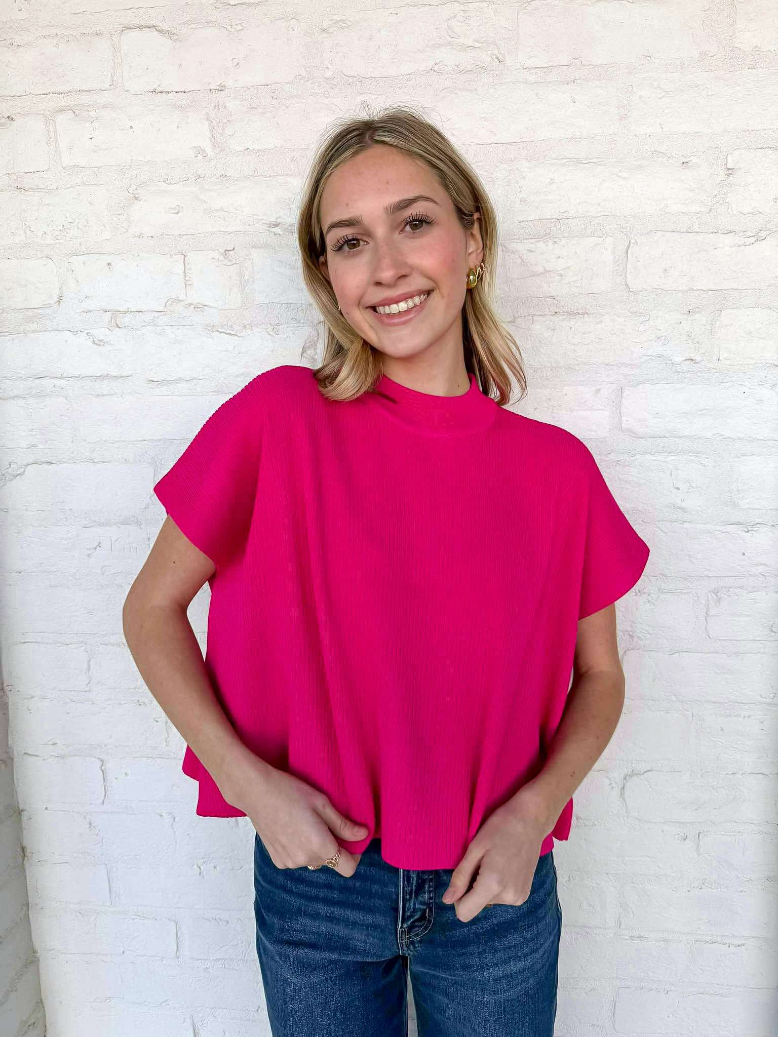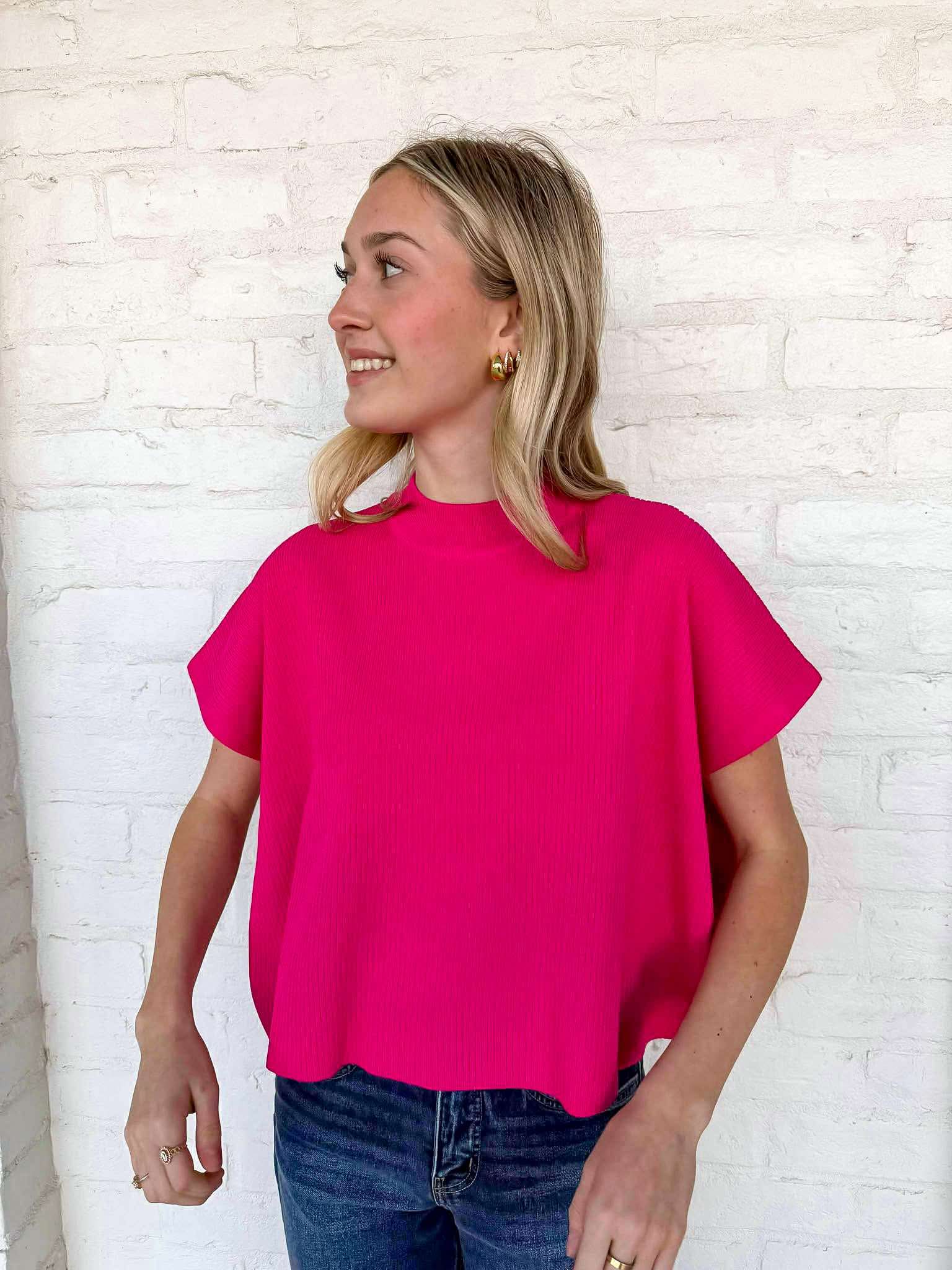 Elevate your wardrobe with the Here When Needed Top! This stylish short-sleeve boxy sweater features a trendy cropped design and a chic mark neck, perfect for effortless layering or a statement look. Embrace comfort and flair that keeps you ready for any occasion!