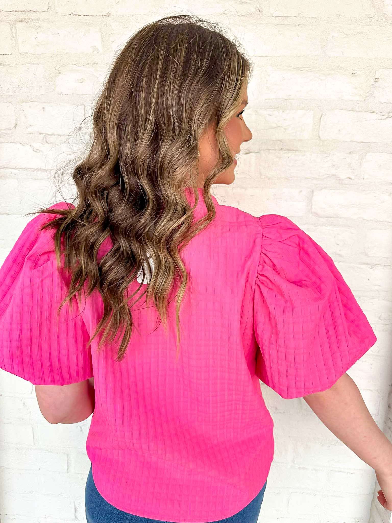 Elevate your wardrobe with the In The Air Pink Top! This stunning puff sleeve blouse exudes elegance and charm, perfect for any occasion. Feel the soft fabric drape beautifully as you move, and let the playful sleeves add a touch of drama to your look. Embrace your confident style today!