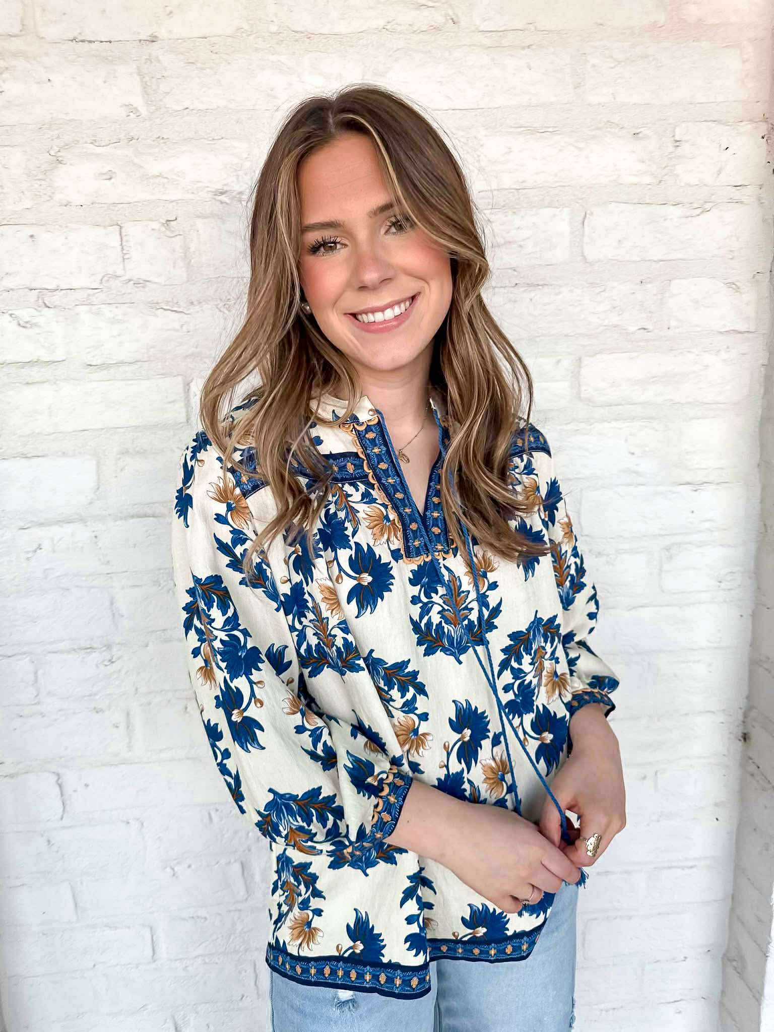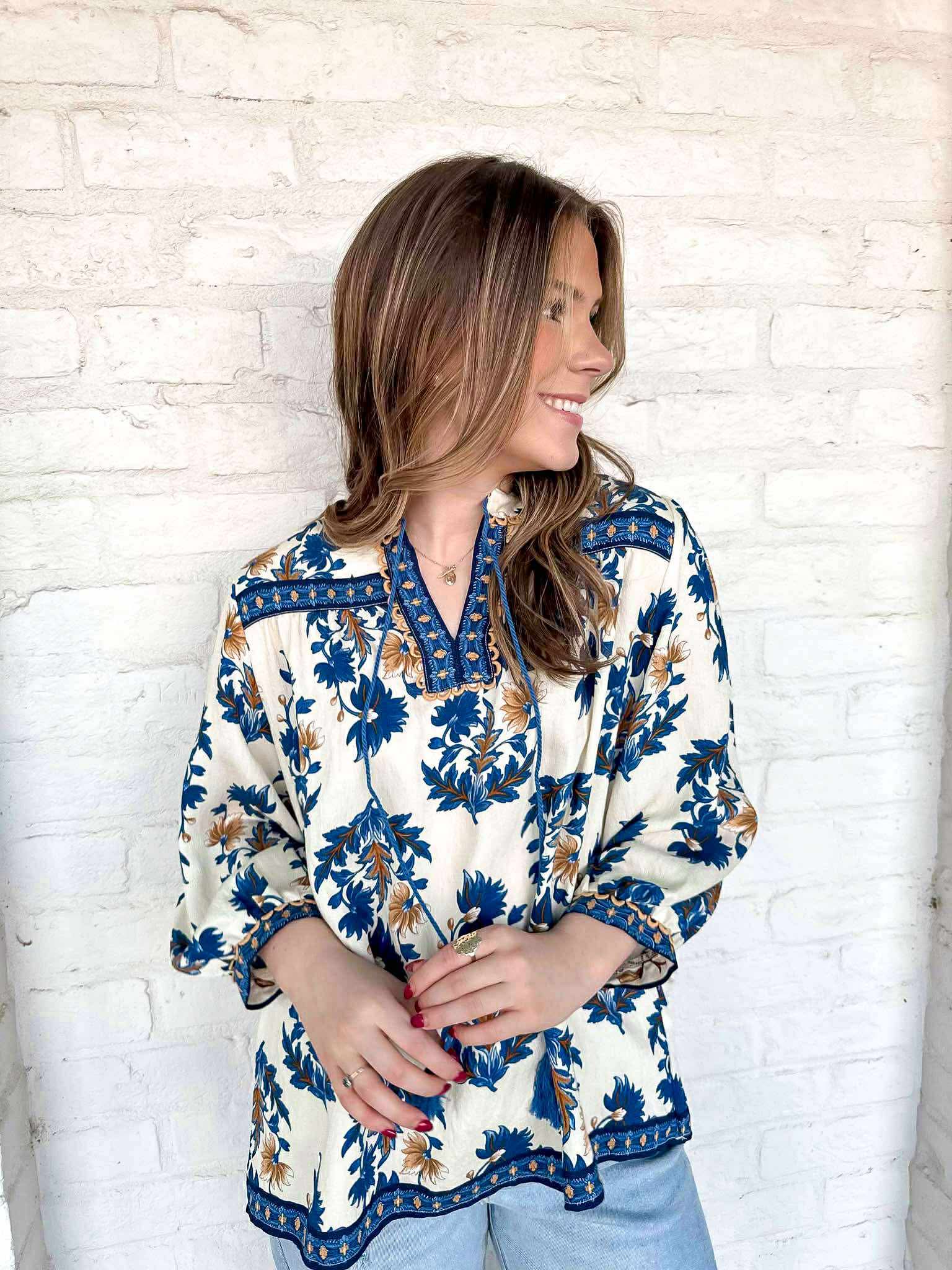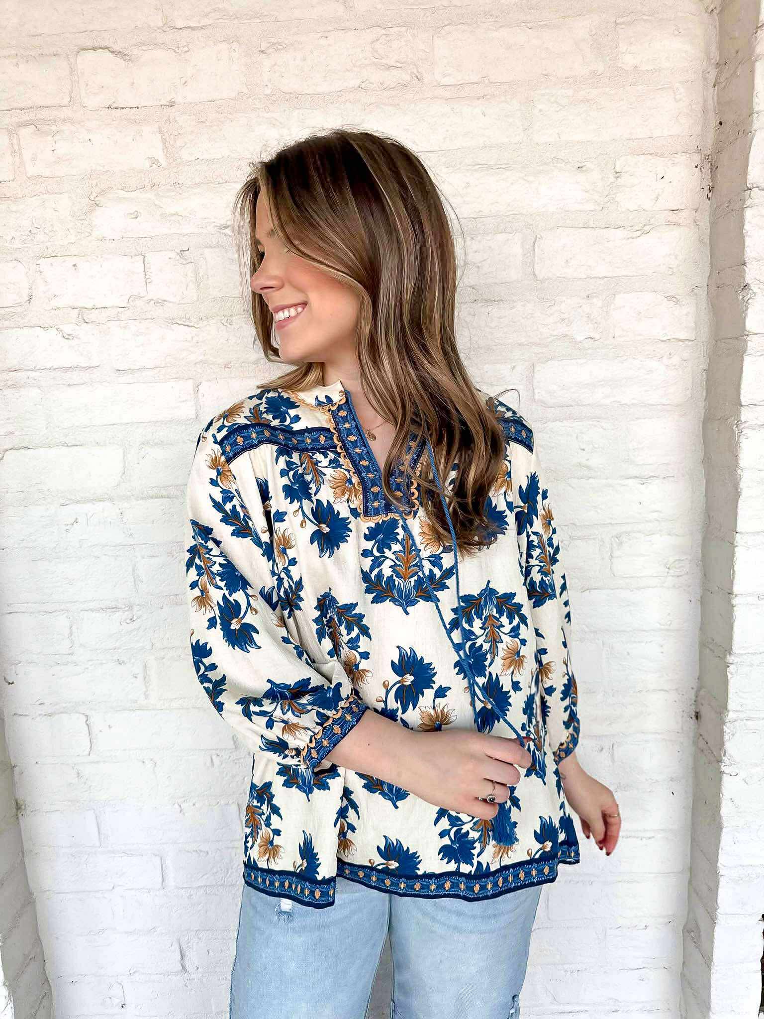 Introducing the Know It All Blue Top - the perfect addition to your wardrobe! This floral top features a delicate print that is both elegant and eye-catching. Take your style to the next level with this versatile top that is sure to turn heads and make you stand out from the crowd!