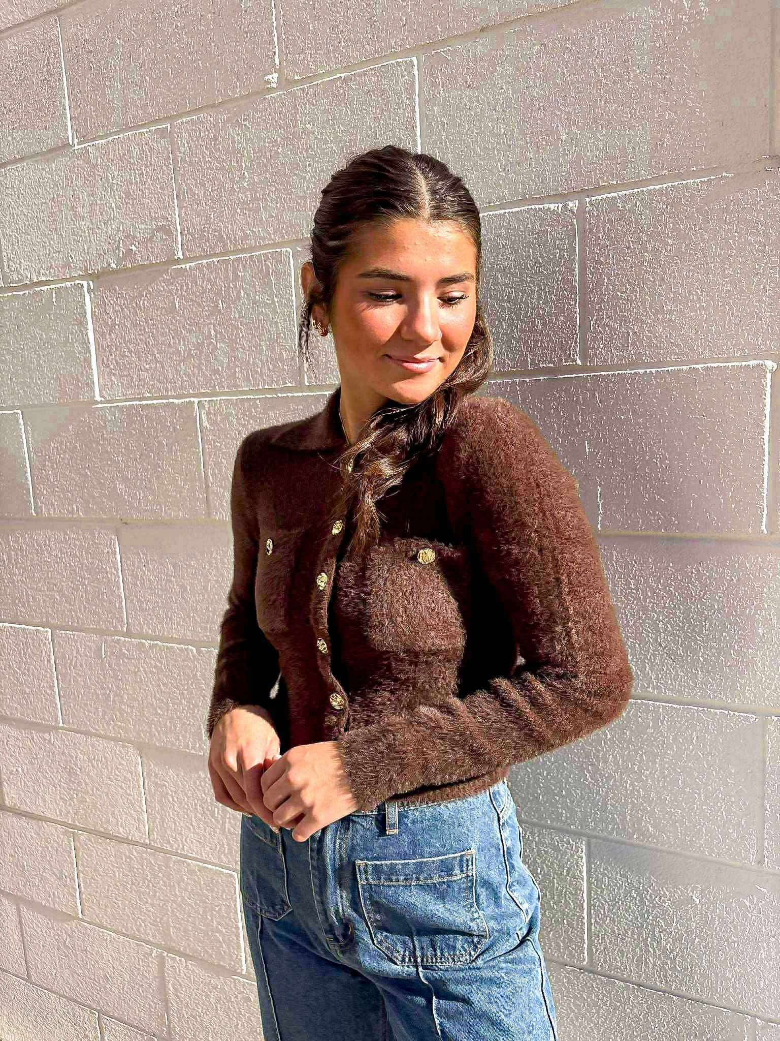 Introducing the Limit Yourself Brown Top - a versatile and stylish addition to your wardrobe! Made from high-quality materials, this sweater top is perfect for any occasion. Stay warm and chic while expressing your unique style with this must-have piece.