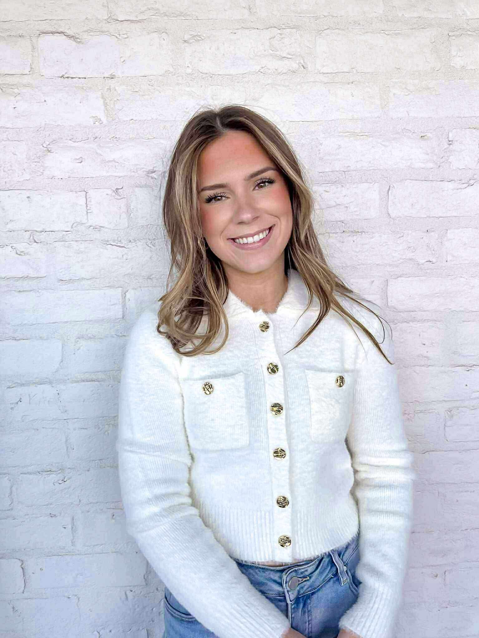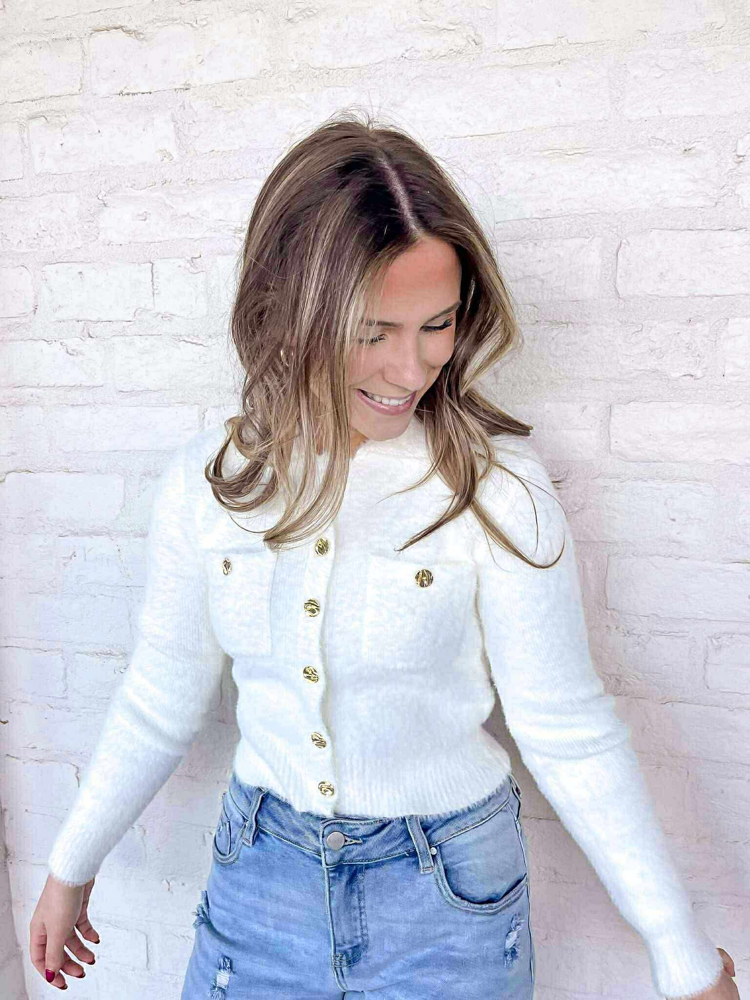 Elevate your wardrobe with our Limit Yourself Cream Top! This luxurious sweater features gold buttons that add a touch of elegance to any outfit. Stay cozy and chic while making a statement with our cream top. Perfect for any occasion, limited quantities available!