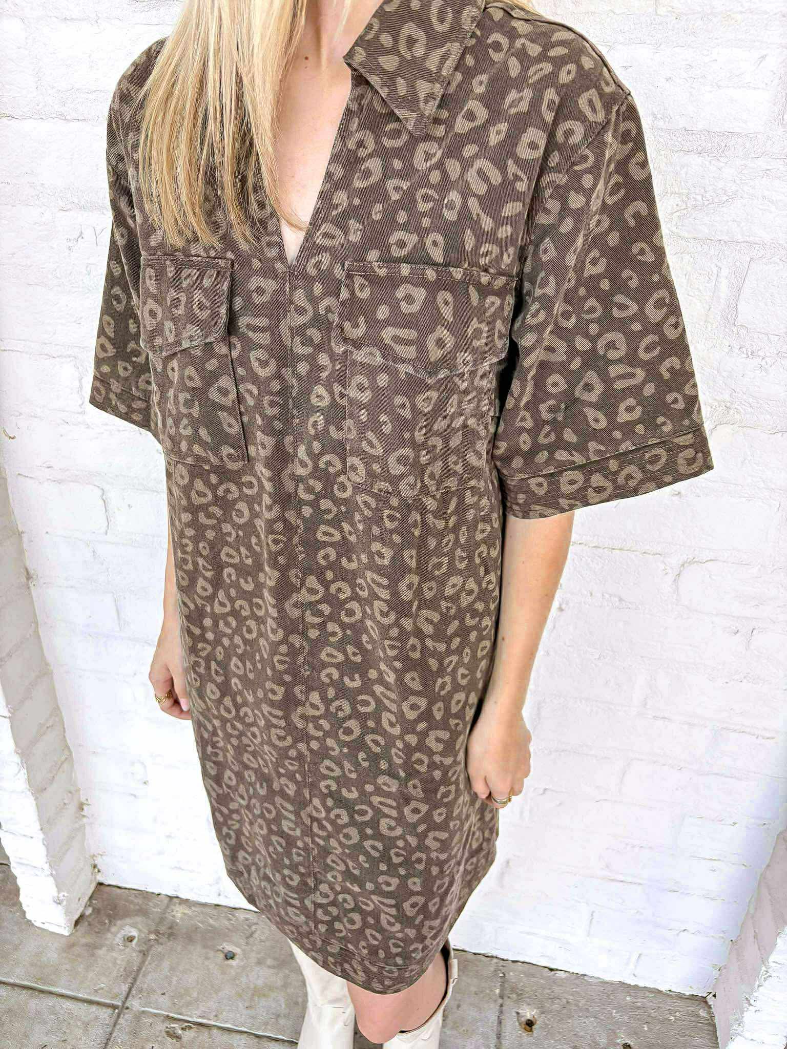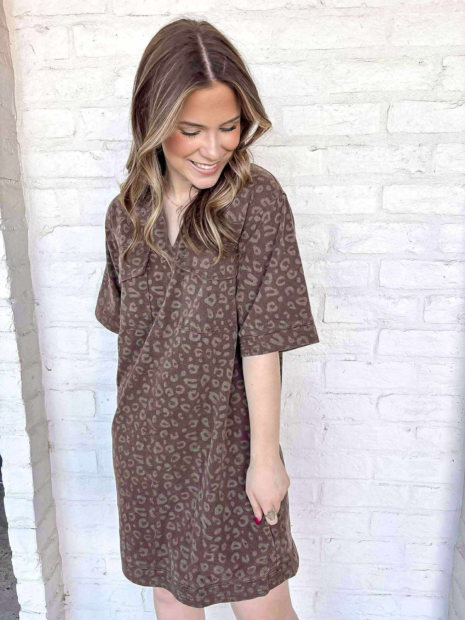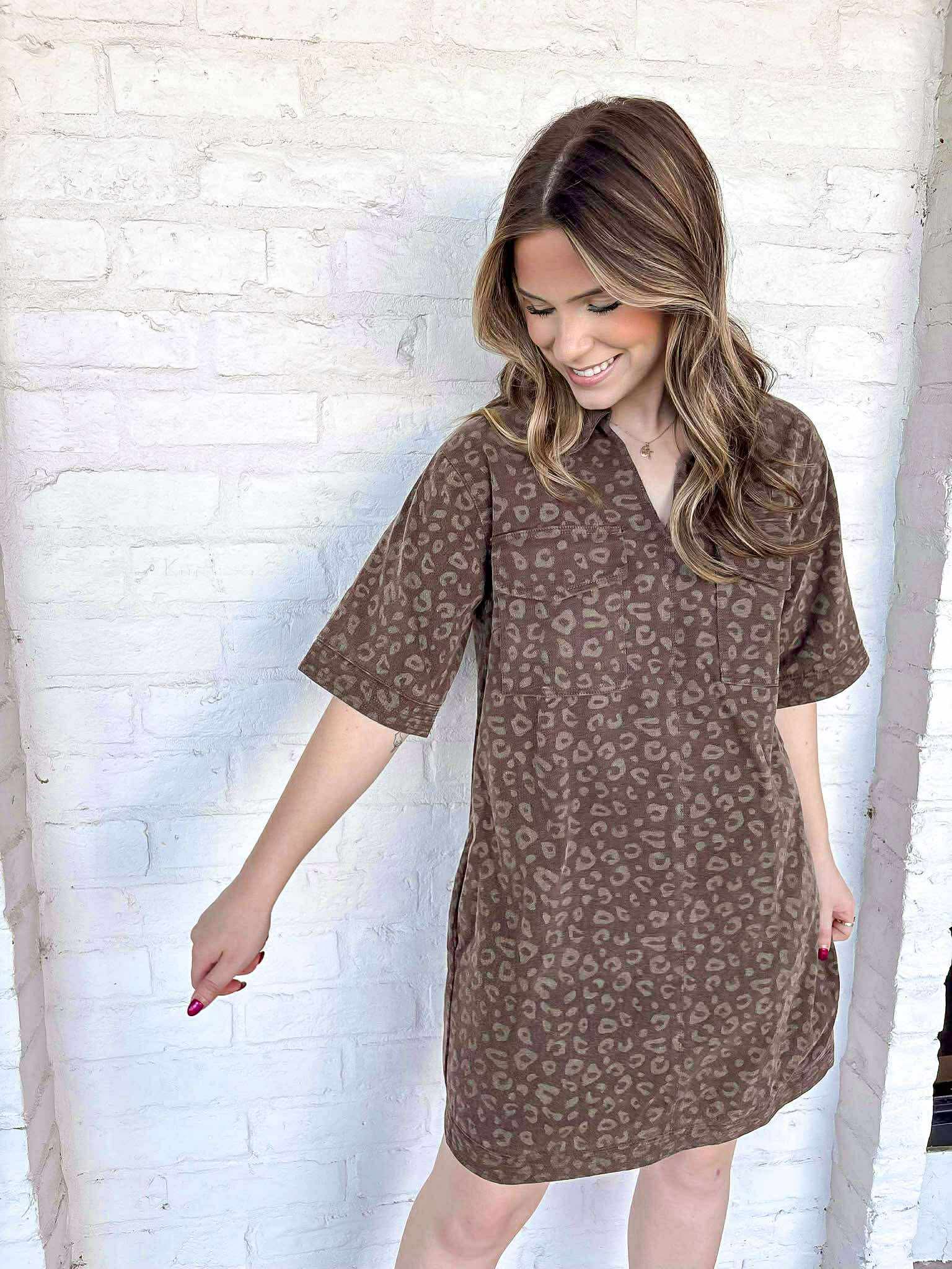 Embrace your wild side with our On The Map Brown Leopard Dress. Made with a bold, eye-catching leopard print, this dress is perfect for making a statement and standing out in the crowd. Its stylish design and flattering fit will have you feeling confident and fierce. Roar with style in this must-have dress!