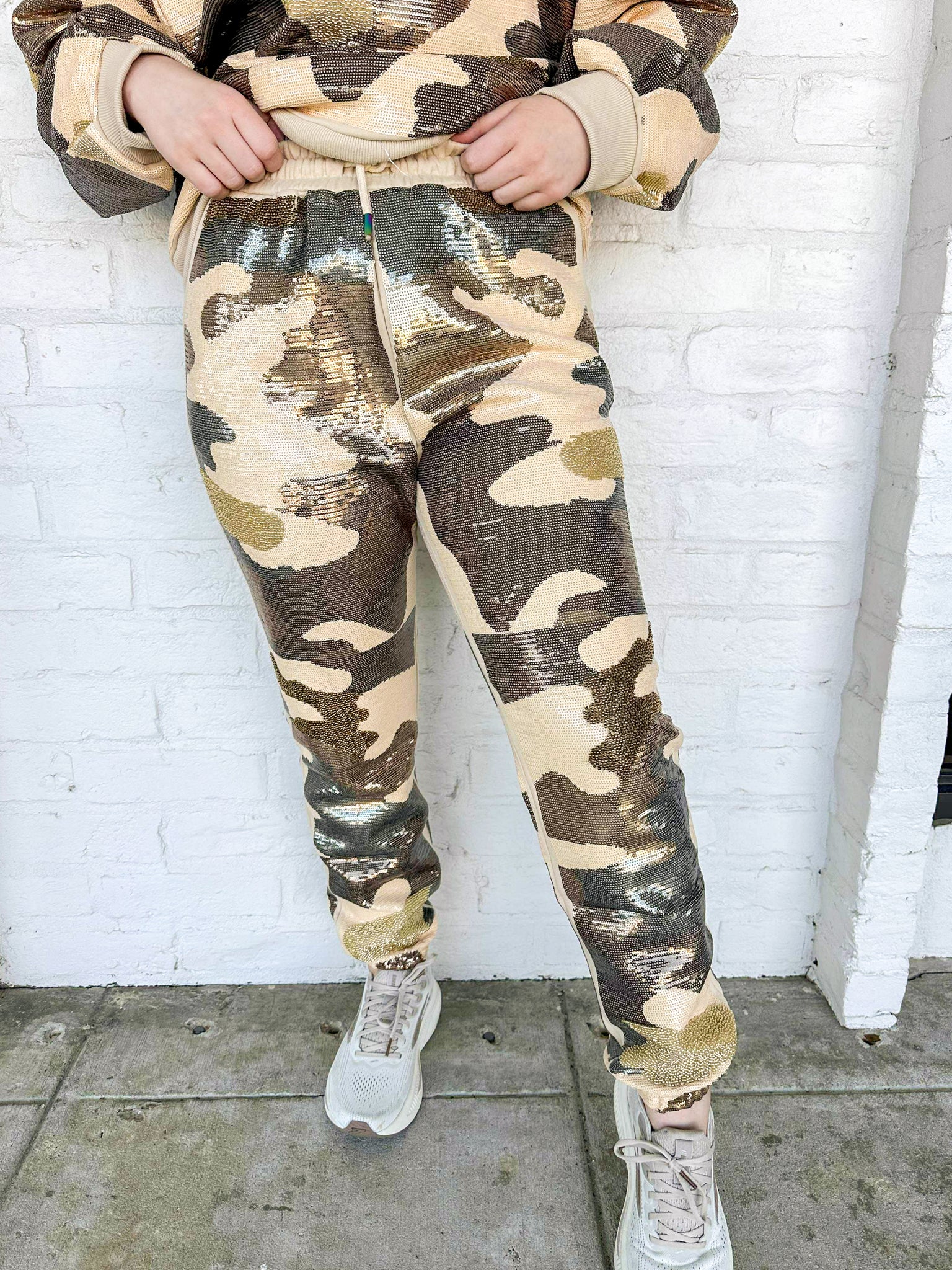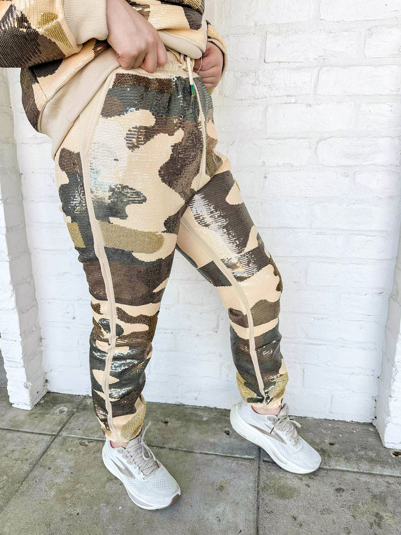 Unleash your inner glam queen with the Queen of Sparkles Camo Full Sequin Green Joggers. These stylish joggers feature full sequins for a dazzling and eye-catching look. Stand out from the crowd and make a statement with these unique and luxurious joggers. Perfect for parties, events, or a night out on the town.