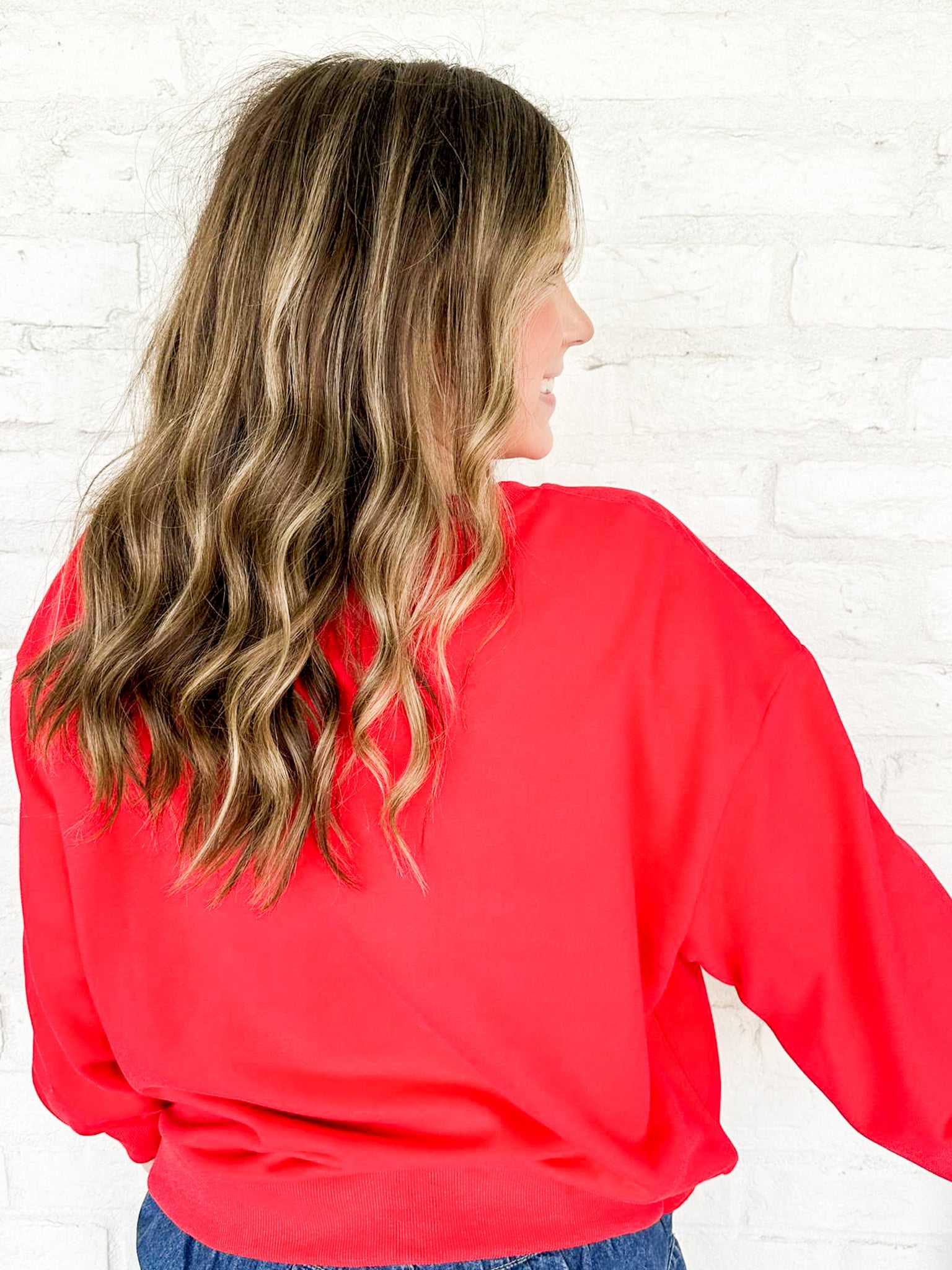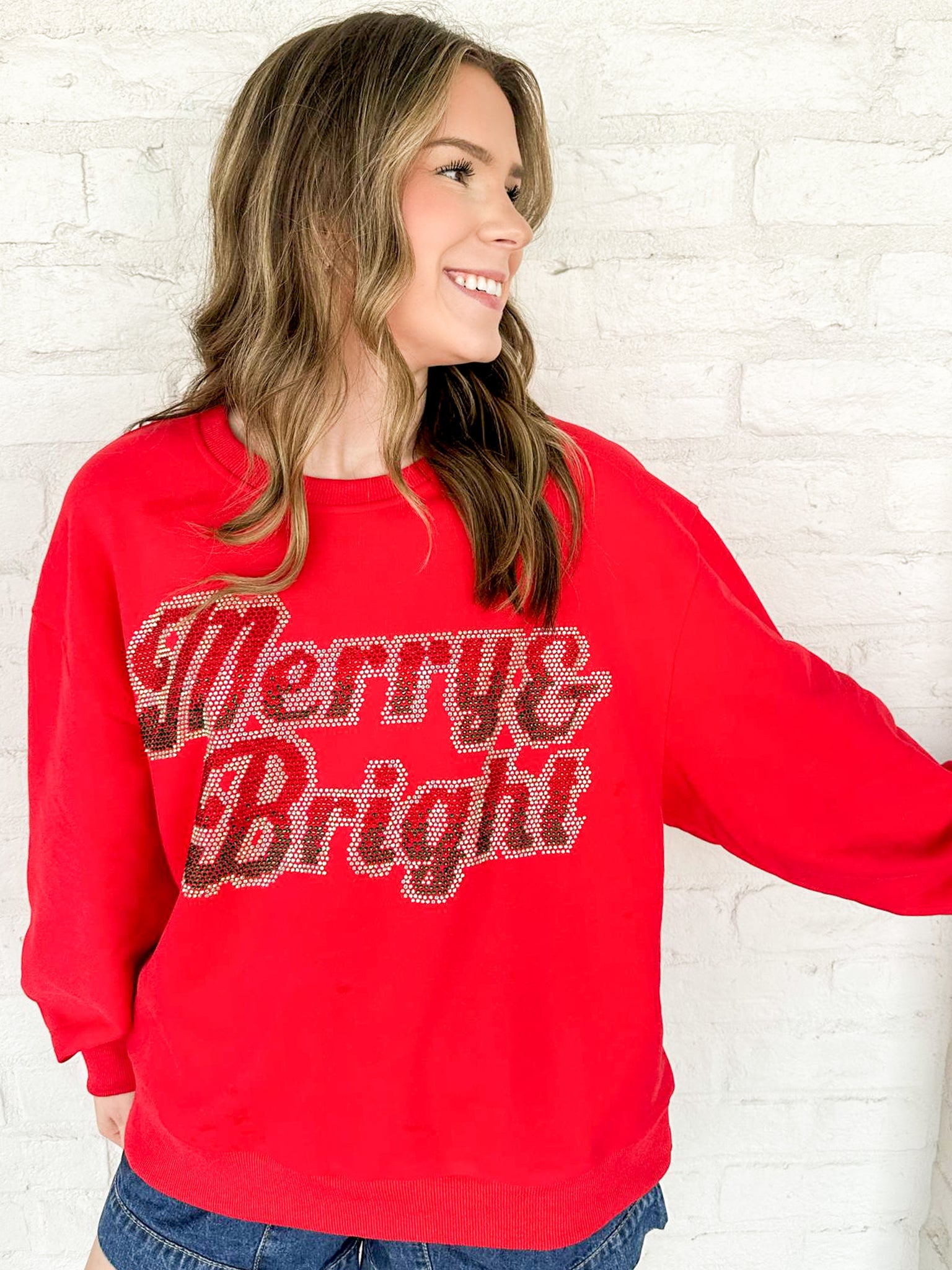 Wrap yourself in warmth and style with our Queen Of Sparkles 'Merry & Bright' sweatshirt! Made with soft and cozy fabric, this sweatshirt is perfect for snuggling up during the chilly holiday season. The red rhinestone design adds a touch of glamour and sparkle to any outfit. Stay warm and shine bright with this must-have sweatshirt!