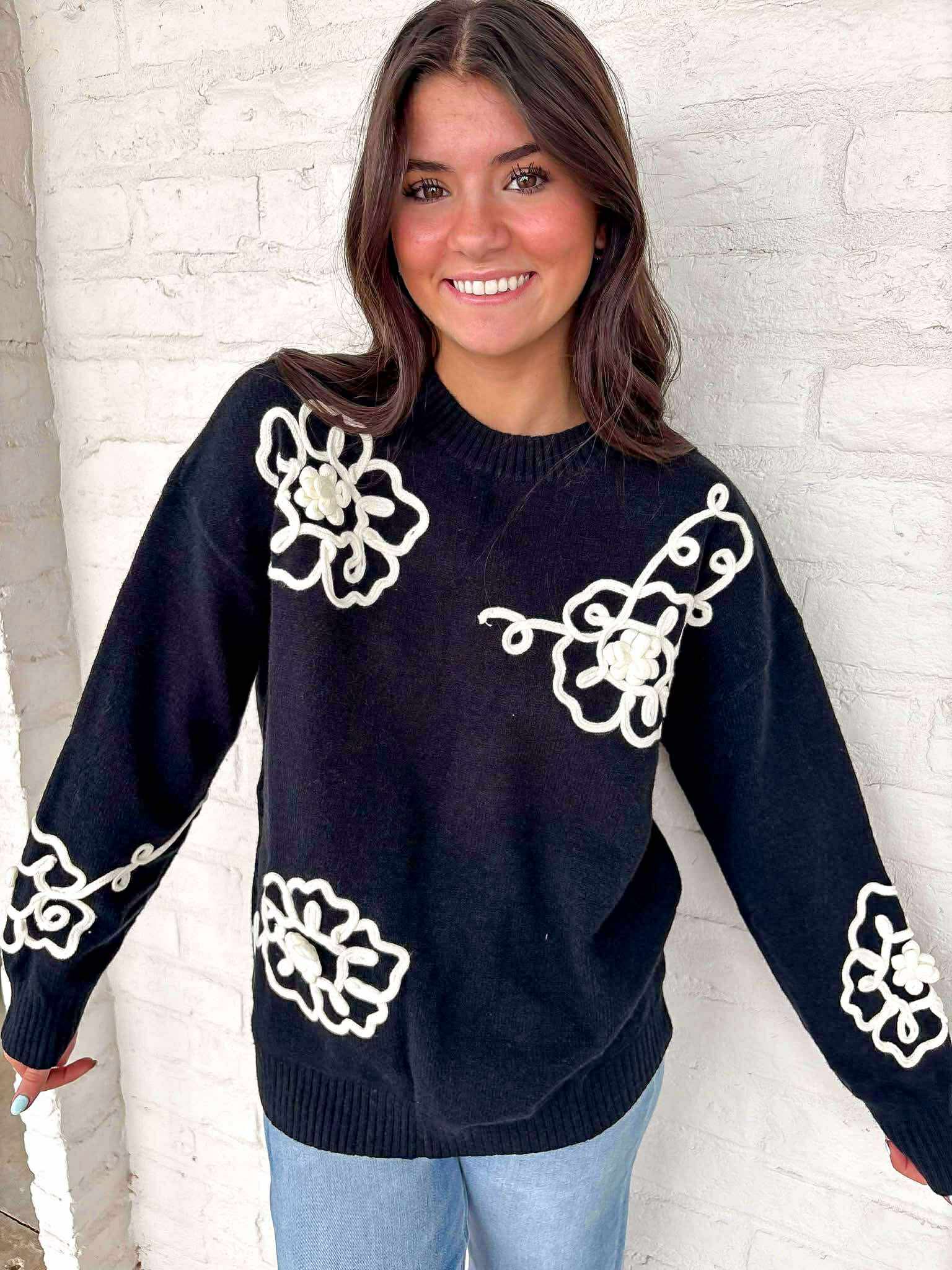 Experience the power of running the show in our Run The Show Black Top! Designed with a stunning black floral print and long sleeves, this top will elevate your style and empower you to take on the day with confidence. Make a statement and run the show in style.
