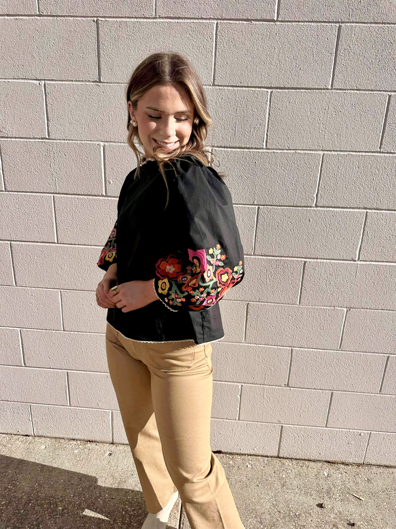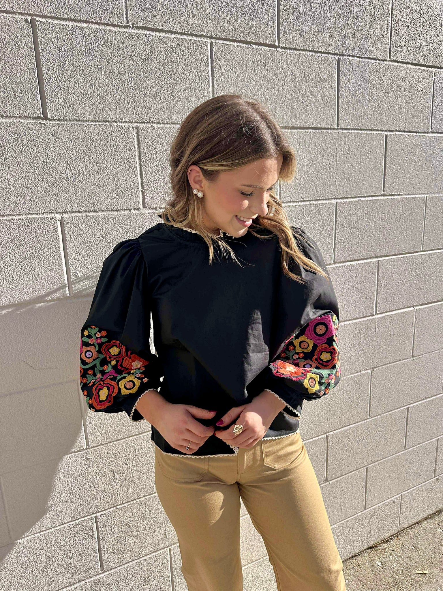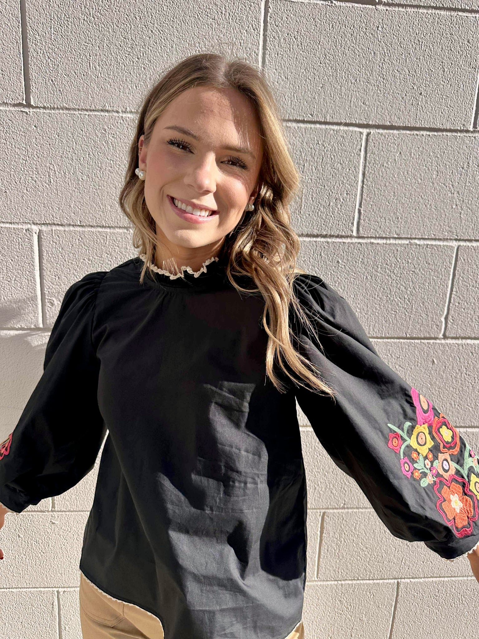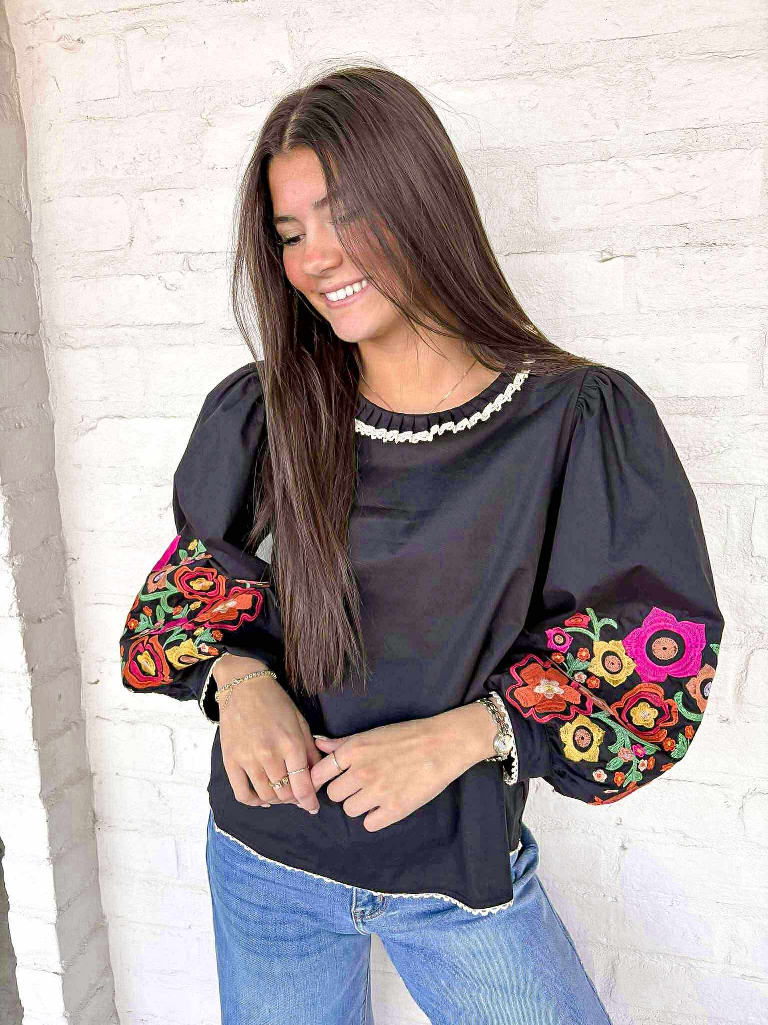 Indulge in the luxurious and romantic vibe of our Sweetest Direction Black Puff Sleeve Top. With its beautiful black floral sleeve design, this top adds a touch of elegance to any outfit. Feel confident and stylish as you effortlessly turn heads. Elevate your wardrobe with this must-have piece!