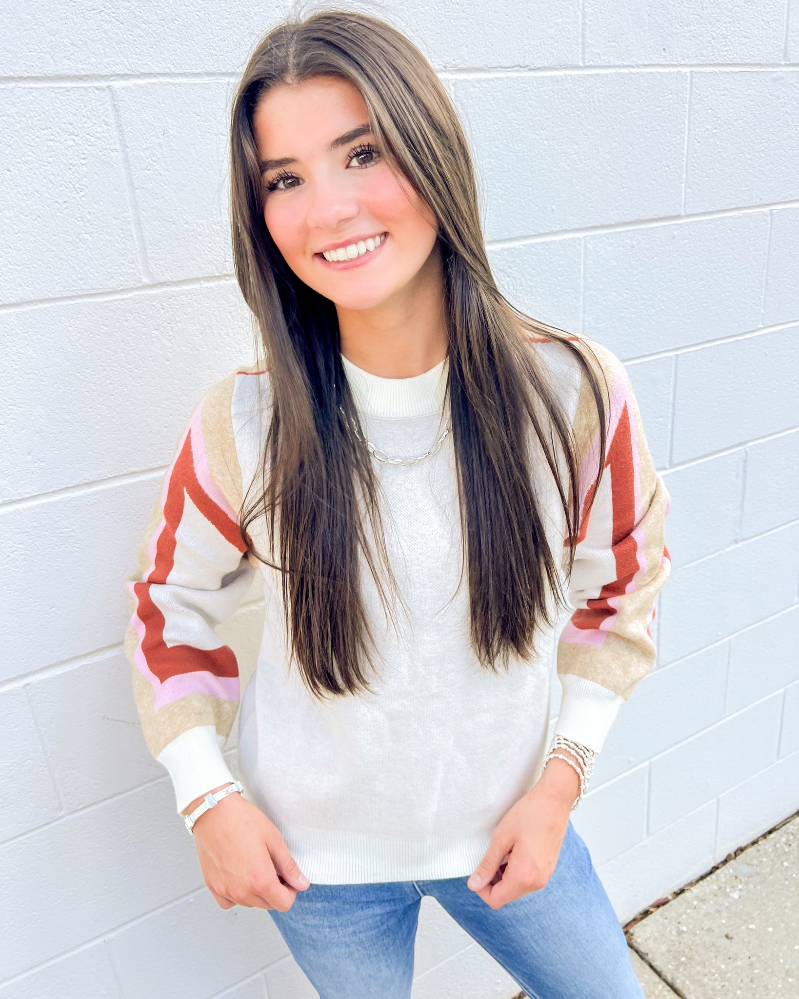 Unleash your inner fashionista with THML's Genuinely The Best Cream Colorblock Sweater. This long sleeve sweater is the perfect combination of comfort and style, keeping you warm and on-trend all season long. Its colorblock design adds a touch of uniqueness to any outfit, making it a must-have for any wardrobe.