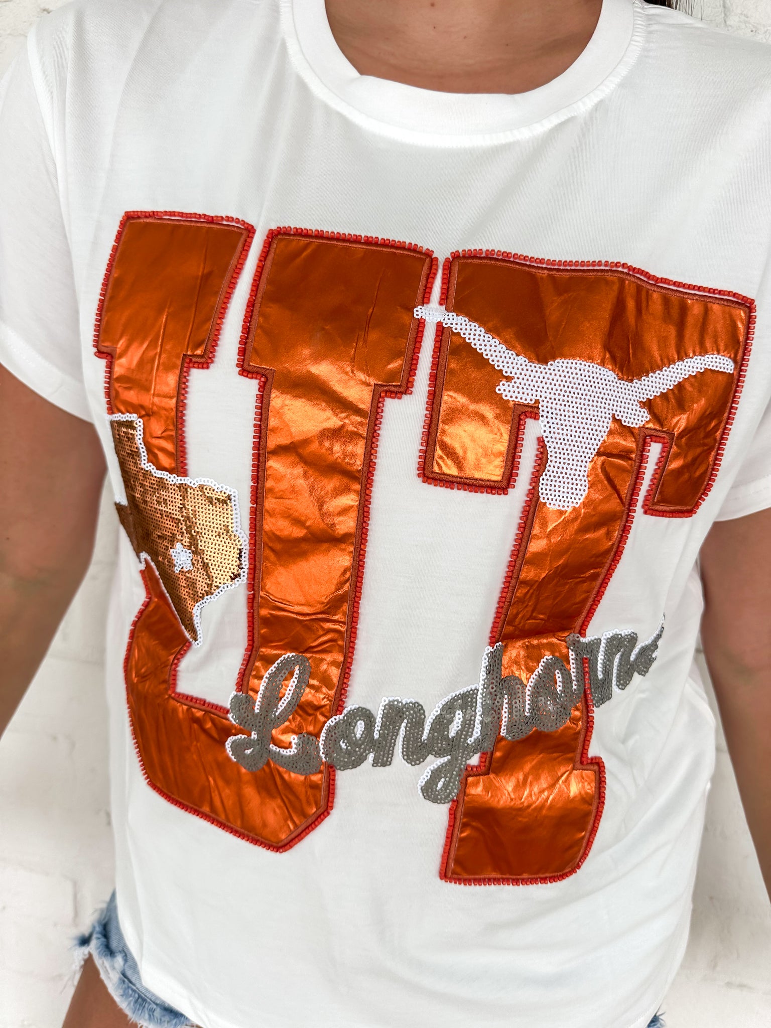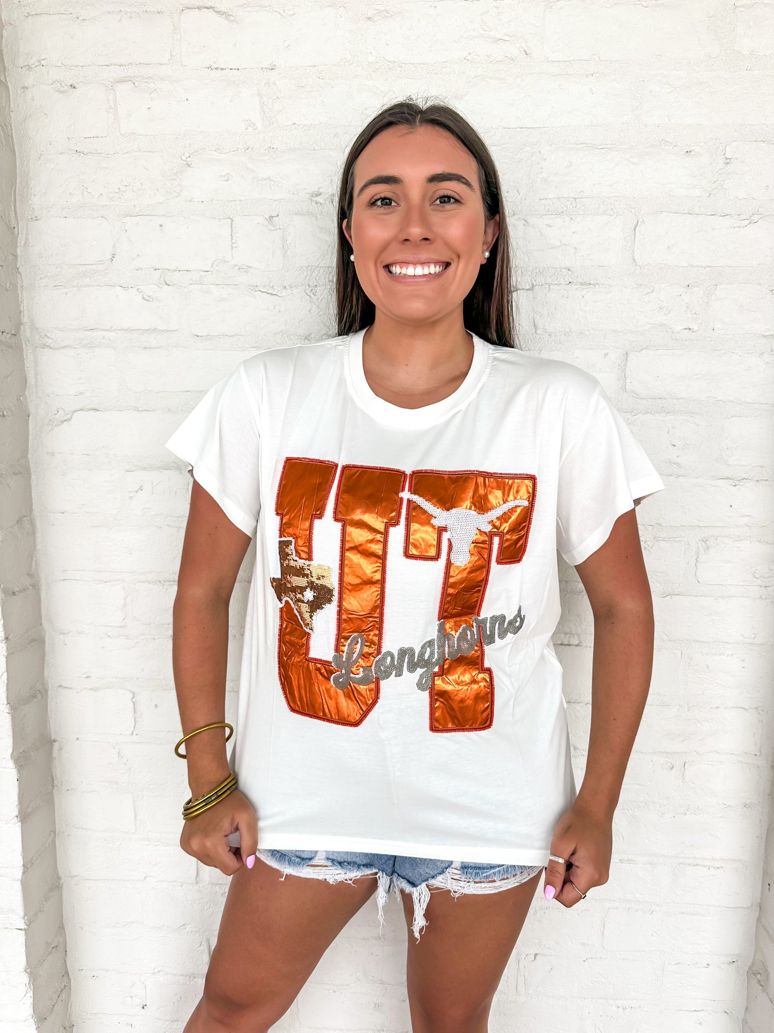 Queen Of Sparkles University of Texas Metallic Icon Tee