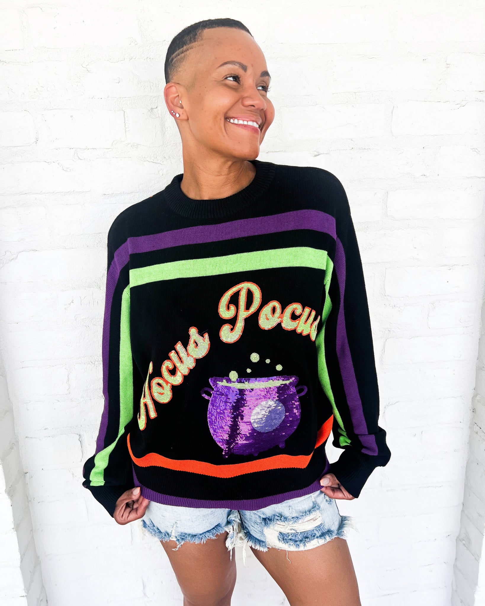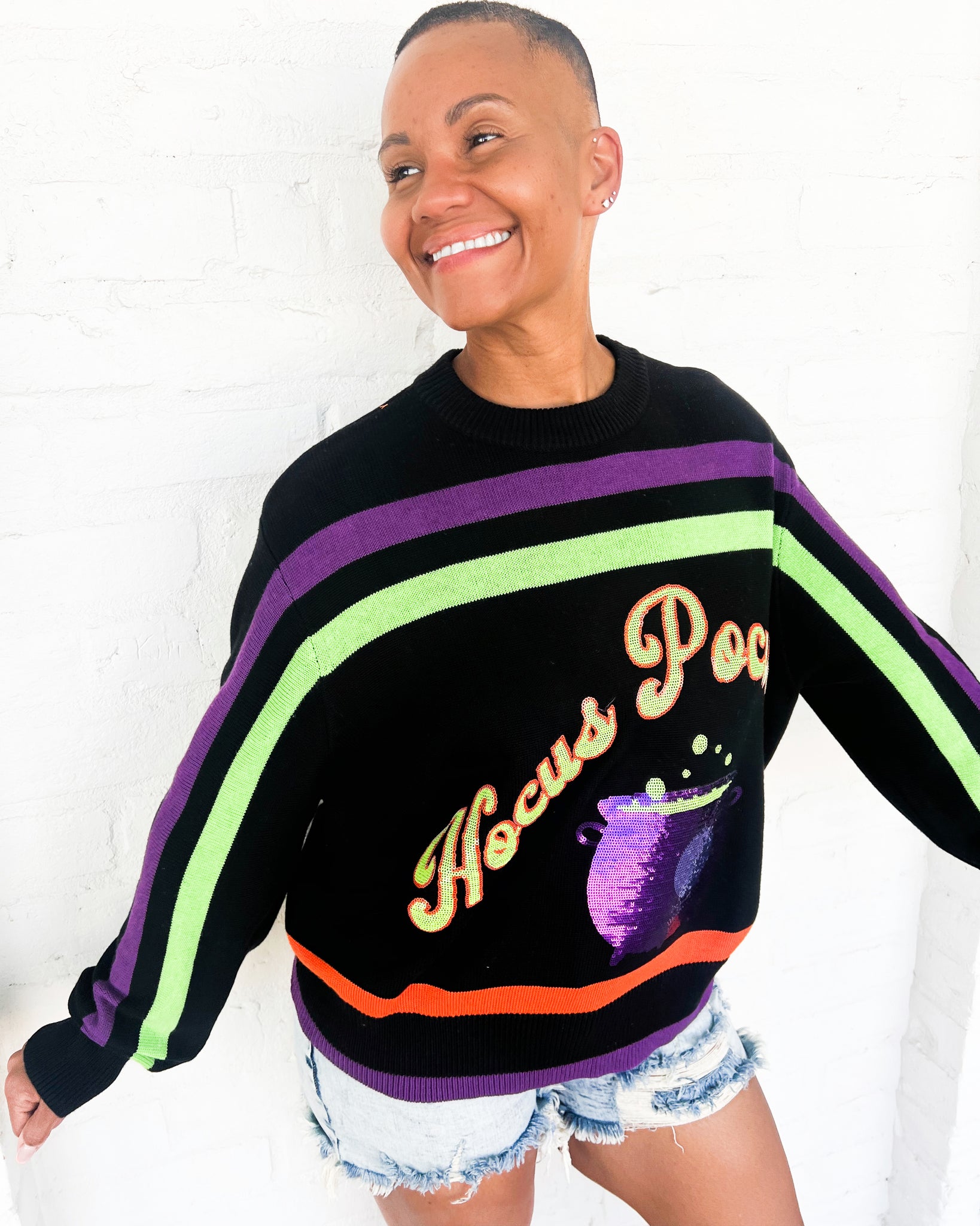 Indulge in the magic of the Queen Of Sparkles Hocus Pocus Black Long Sleeve Sweater! This enchanting piece features long sleeves for cozy warmth, making it perfect for any chilly night. With its elegant design and soft fabric, you'll look and feel like royalty. Rule the fashion world with this mesmerizing sweater!