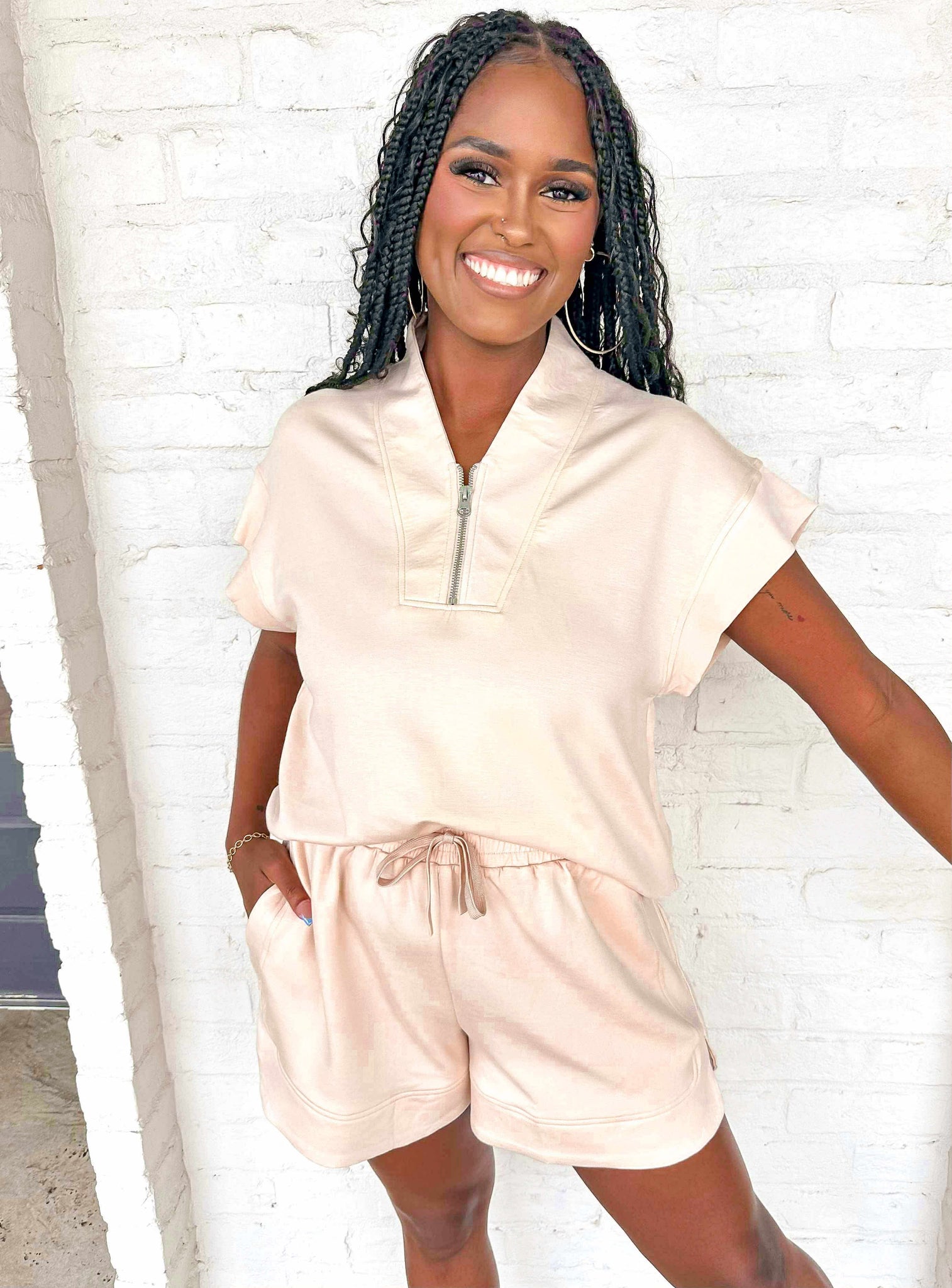 Experience effortless comfort and style with the Come Pick Me Up Cream Set. Perfect for running errands or relaxing at home, this lounge set offers a cozy fit that moves with you throughout your day. Its soft fabric keeps you comfortable while maintaining a polished look, making it your go-to choice for casual outings. Elevate your everyday wardrobe with this versatile and inviting set designed to keep you feeling fresh and confident wherever you go.