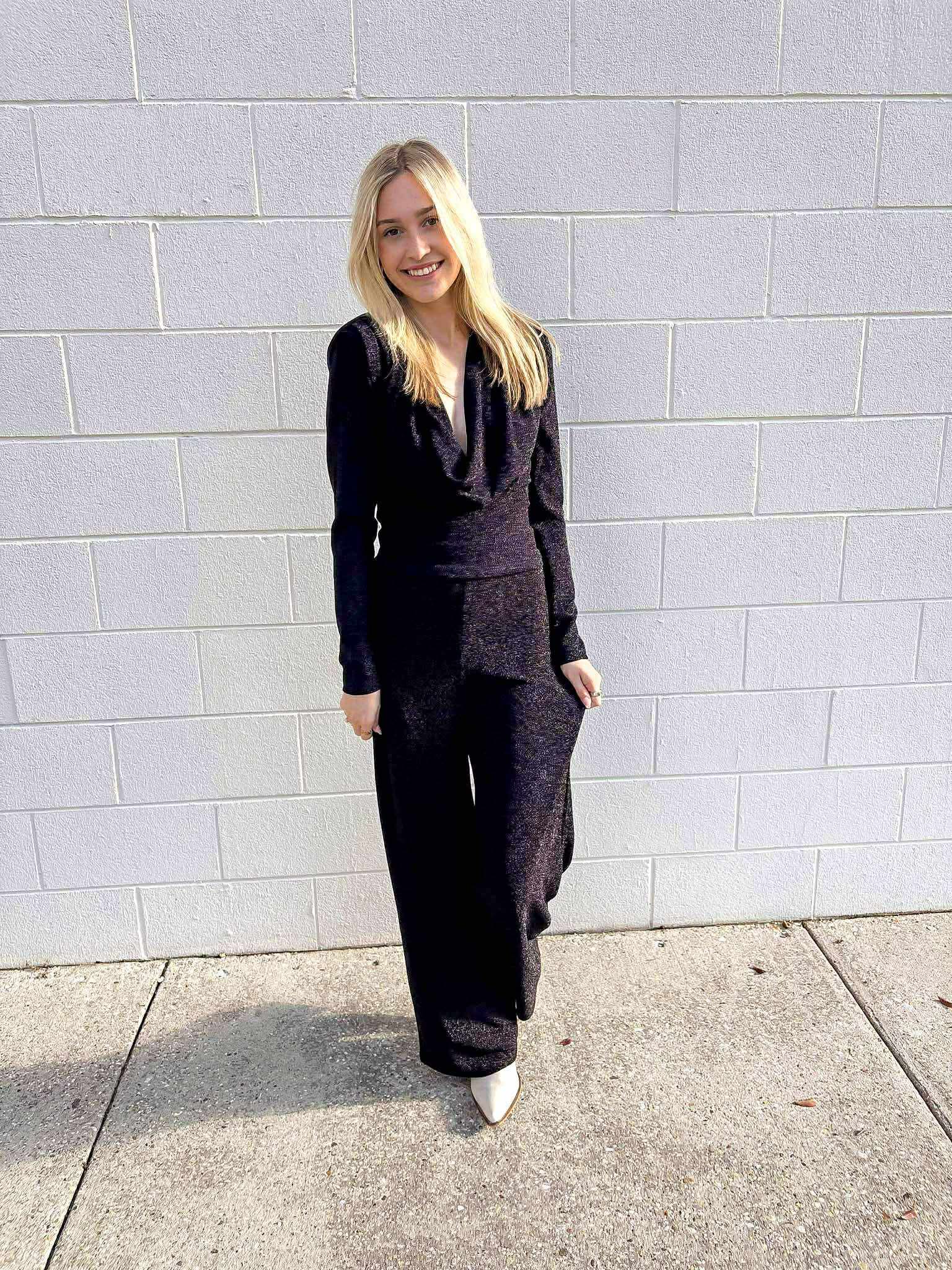 Get ready to shine with the Shimmer All The Way Set! This set features a beautiful shimmer cow neck design, perfect for standing out at any New Year's Eve or Christmas party. Elevate your style and be the center of attention with this stunning outfit.