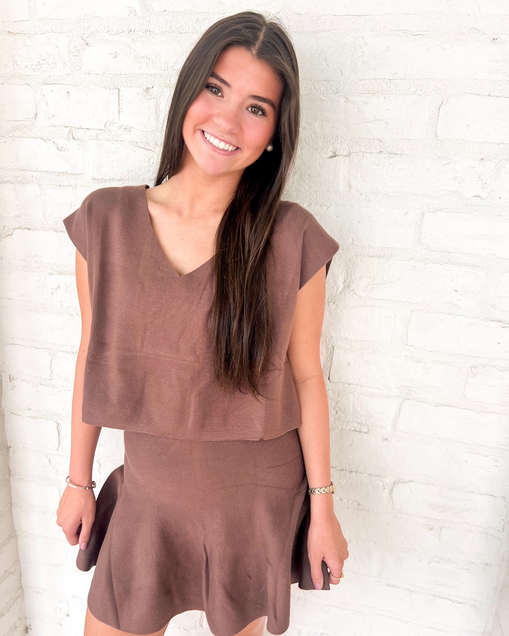 Unleash your inner confidence with our Take What You Want Set. This alluring set features a sleeveless V-neck sweater top and flared mini skirt, perfect for a night out. Show off your curves while feeling comfortable and stylish. It's time to treat yourself and take what you deserve.