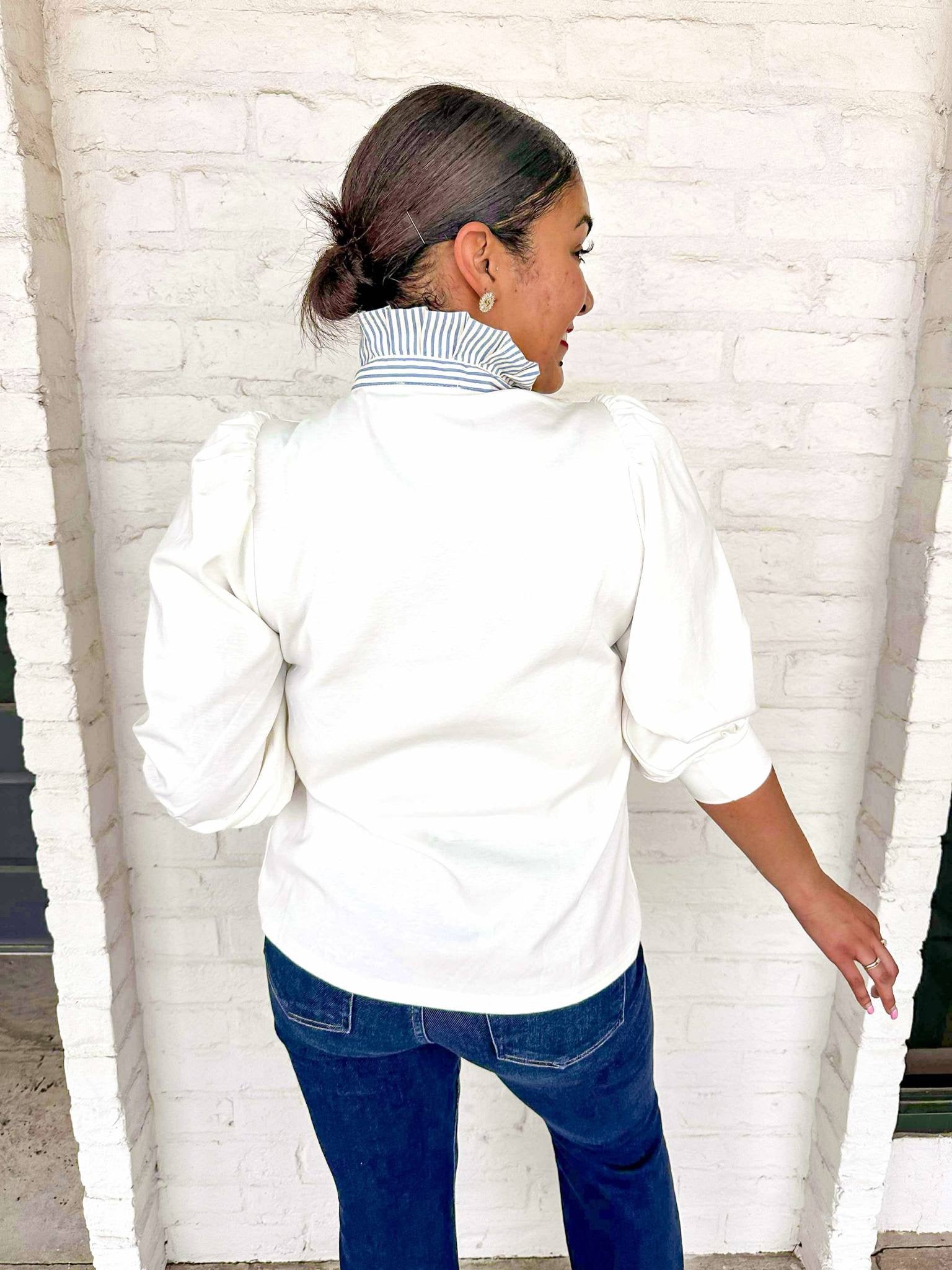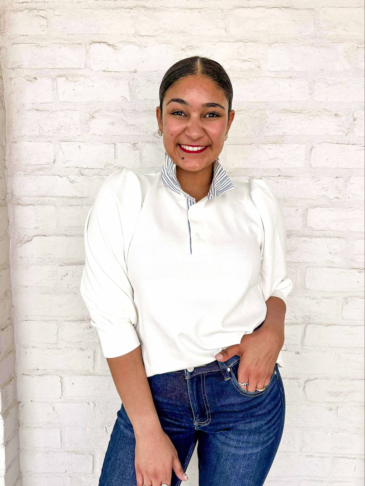 Welcome spring with this lovely white top designed for the modern business woman. Look and feel confident and fresh as you conquer your workday in style. Elevate your wardrobe with this essential spring piece and make a statement wherever you go!