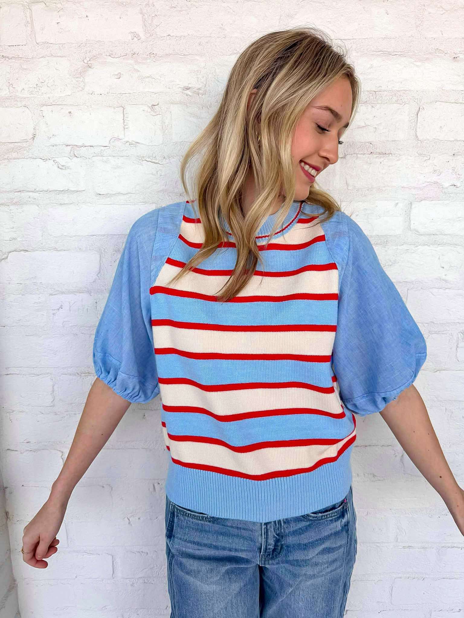 Elevate your wardrobe with the THML Starting Fresh Blue Top! Its charming puff sleeves and vibrant striped knit design create an effortlessly stylish look. Feel confident and fresh as you embrace the spring vibes this top brings. It's the perfect blend of comfort and statement-making flair!