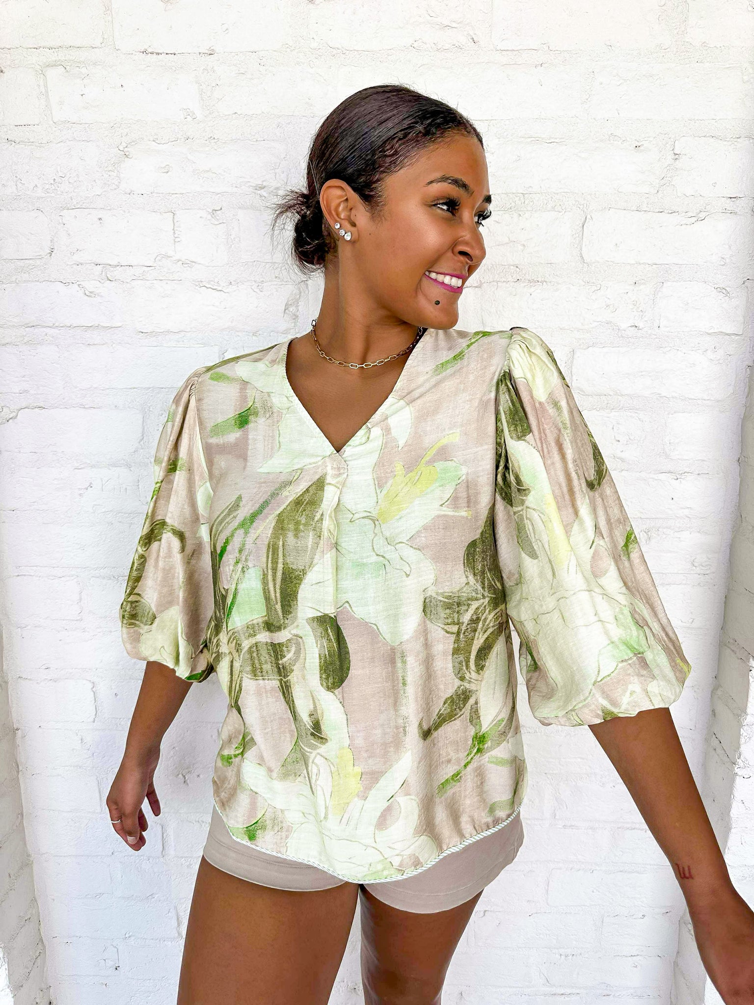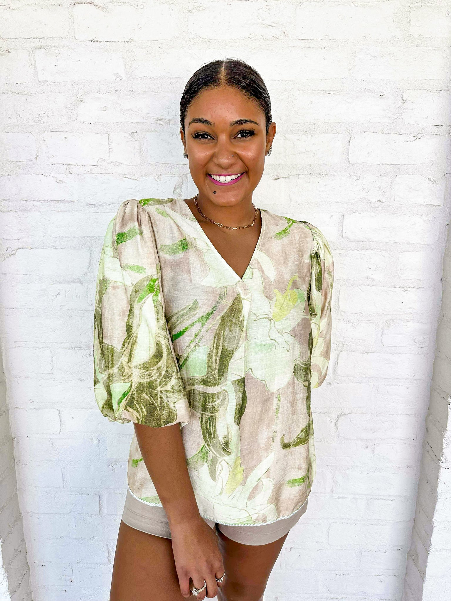 Introducing our Find A Place Green Top, a must-have for your wardrobe! This beautiful blouse features a stunning green floral pattern that will make you stand out. Its soft and lightweight material will keep you comfortable all day long. Elevate any outfit with this stylish and versatile top.